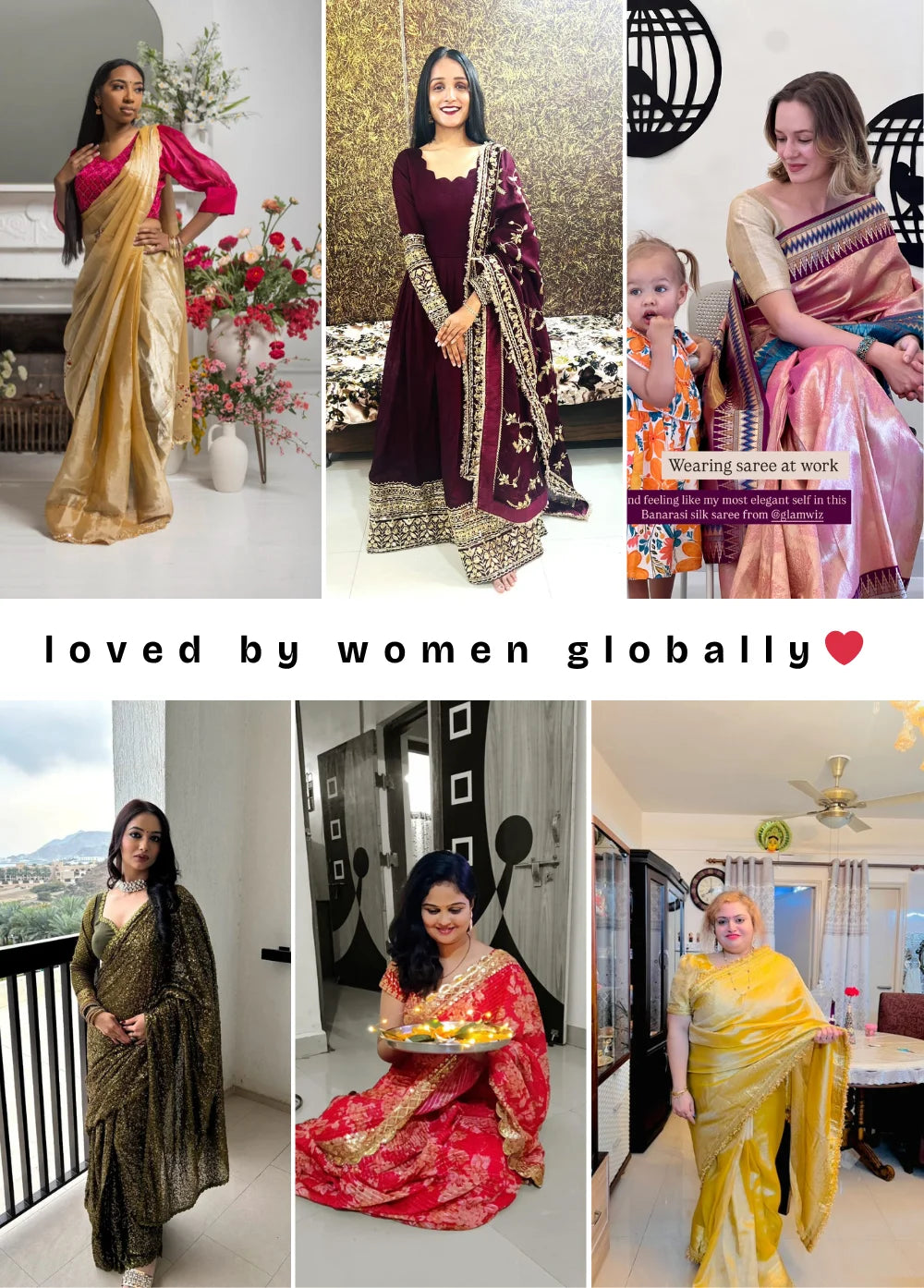 I'm so impressed with the quality of Glamwiz sarees. The fabric is so soft and the designs are so intricate. I always feel like a queen when I wear them