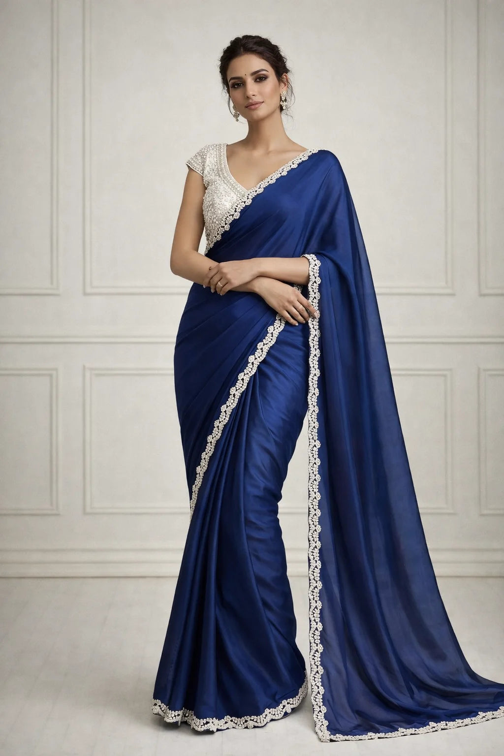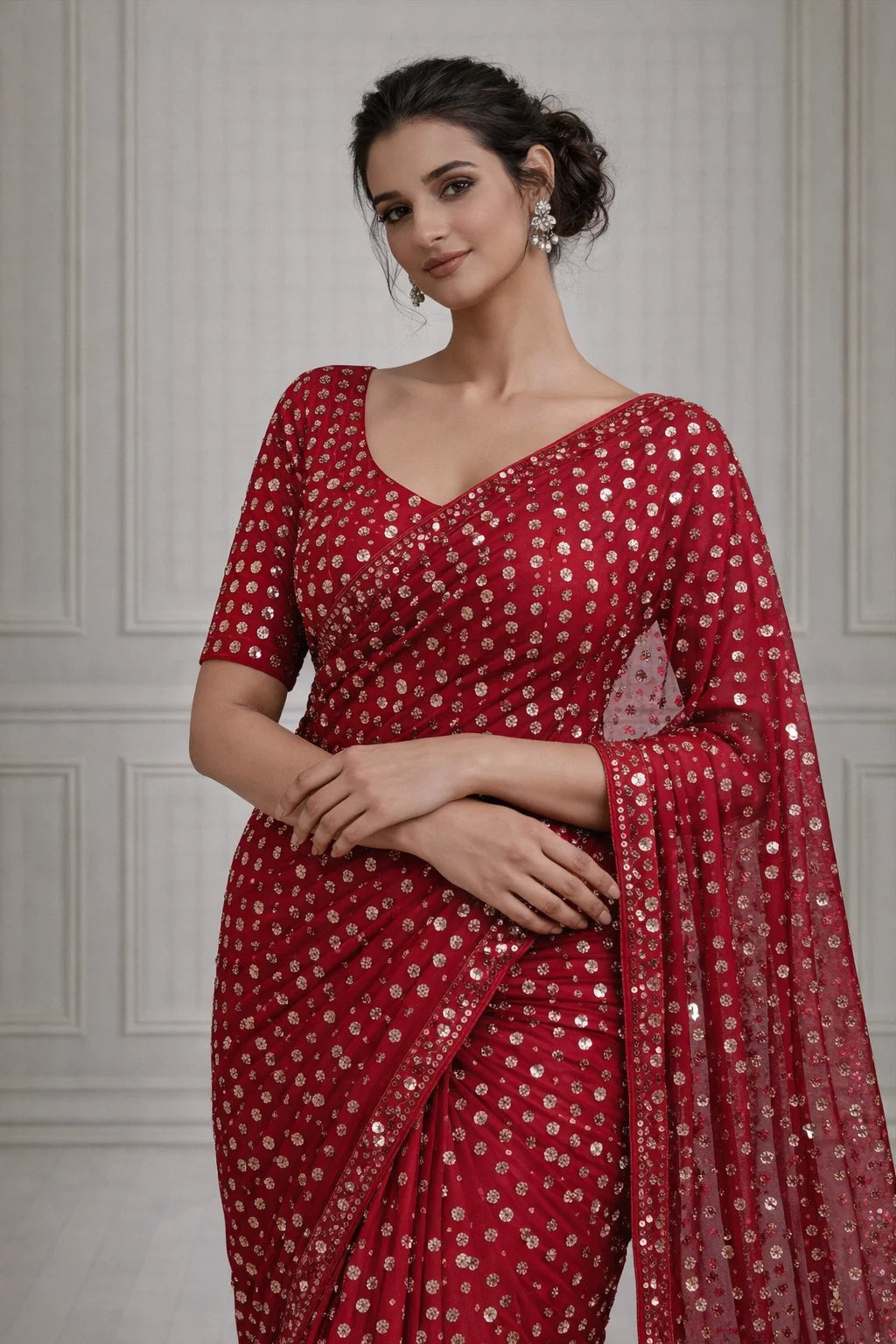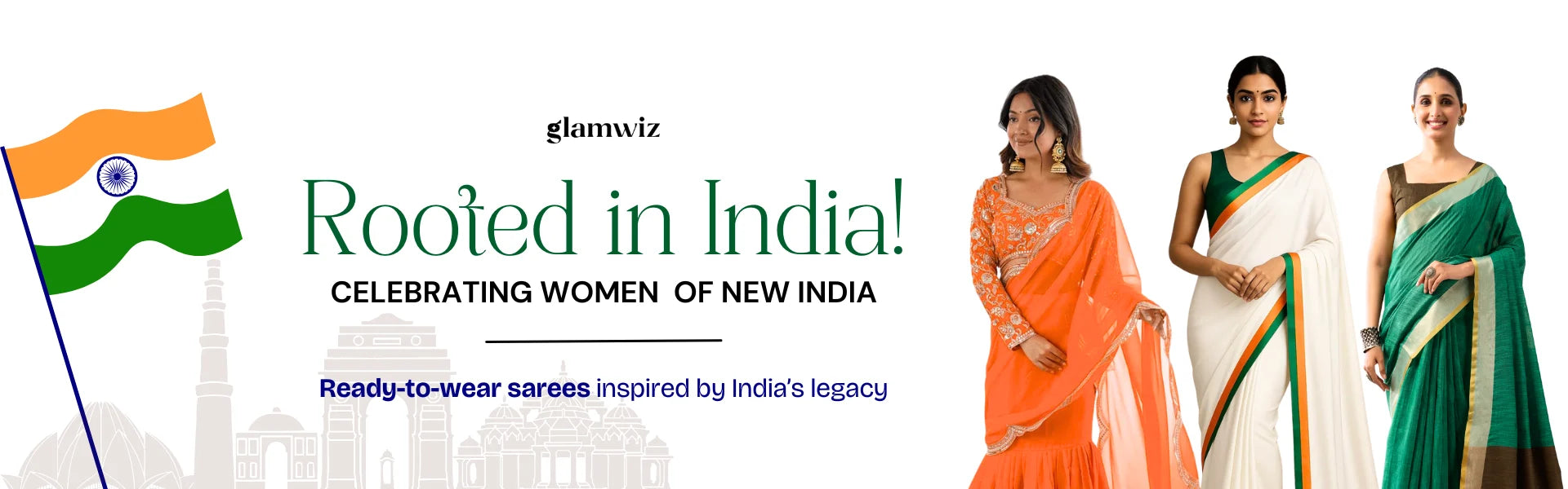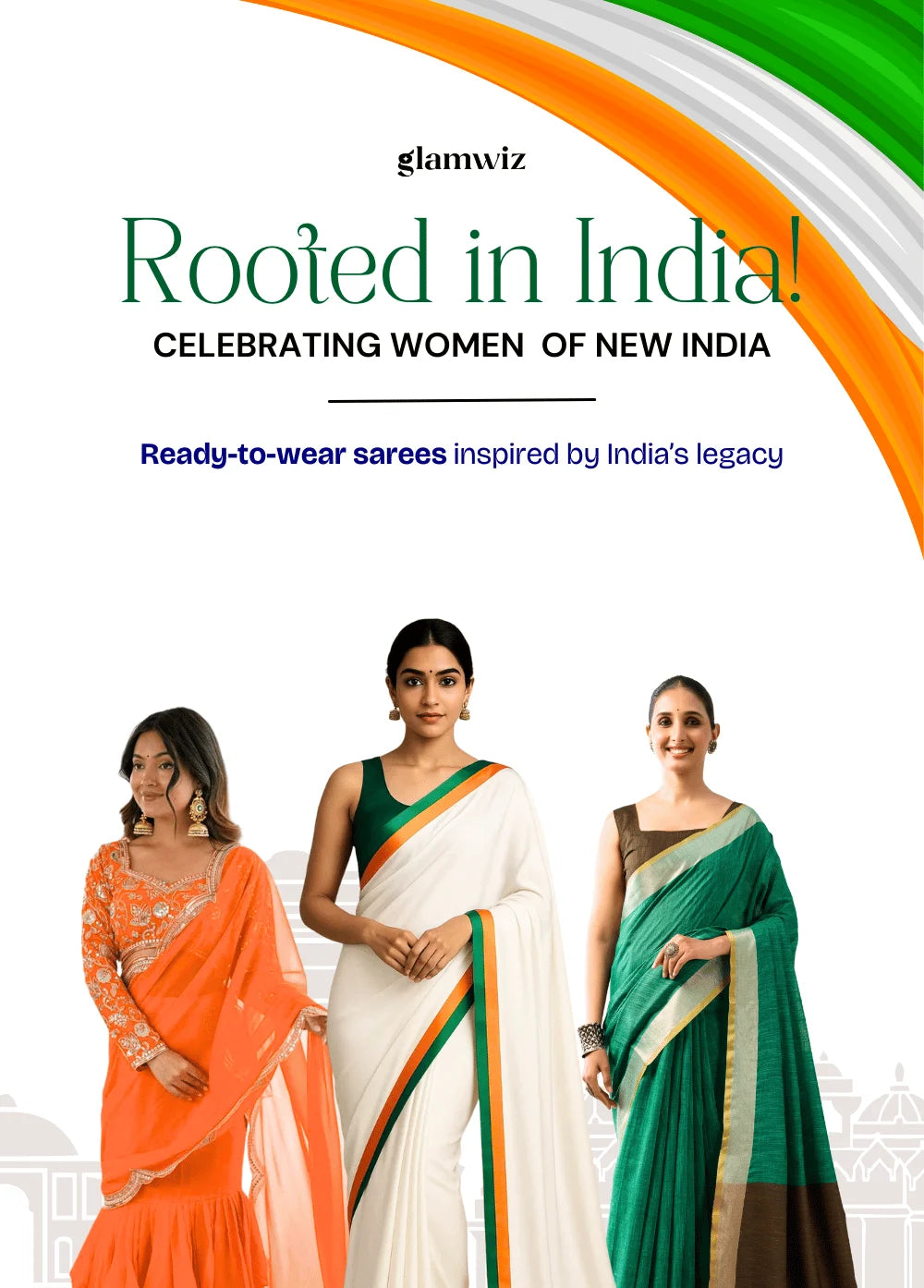At Glamwiz, we specialize in engineered draping. Our ready-to-wear sarees with stitched blouses are designed to solve the two biggest problems in ethnic fashion: time and fit. Unlike traditional drapes, our pre-stitched 1-minute sarees feature a concealed waist-adjustment system, giving you a slim, structured silhouette every time. Whether you are looking for a heavy bridal tissue saree or a lightweight georgette pre-draped saree for a destination wedding, our collection blends traditional craftsmanship with futuristic convenience.