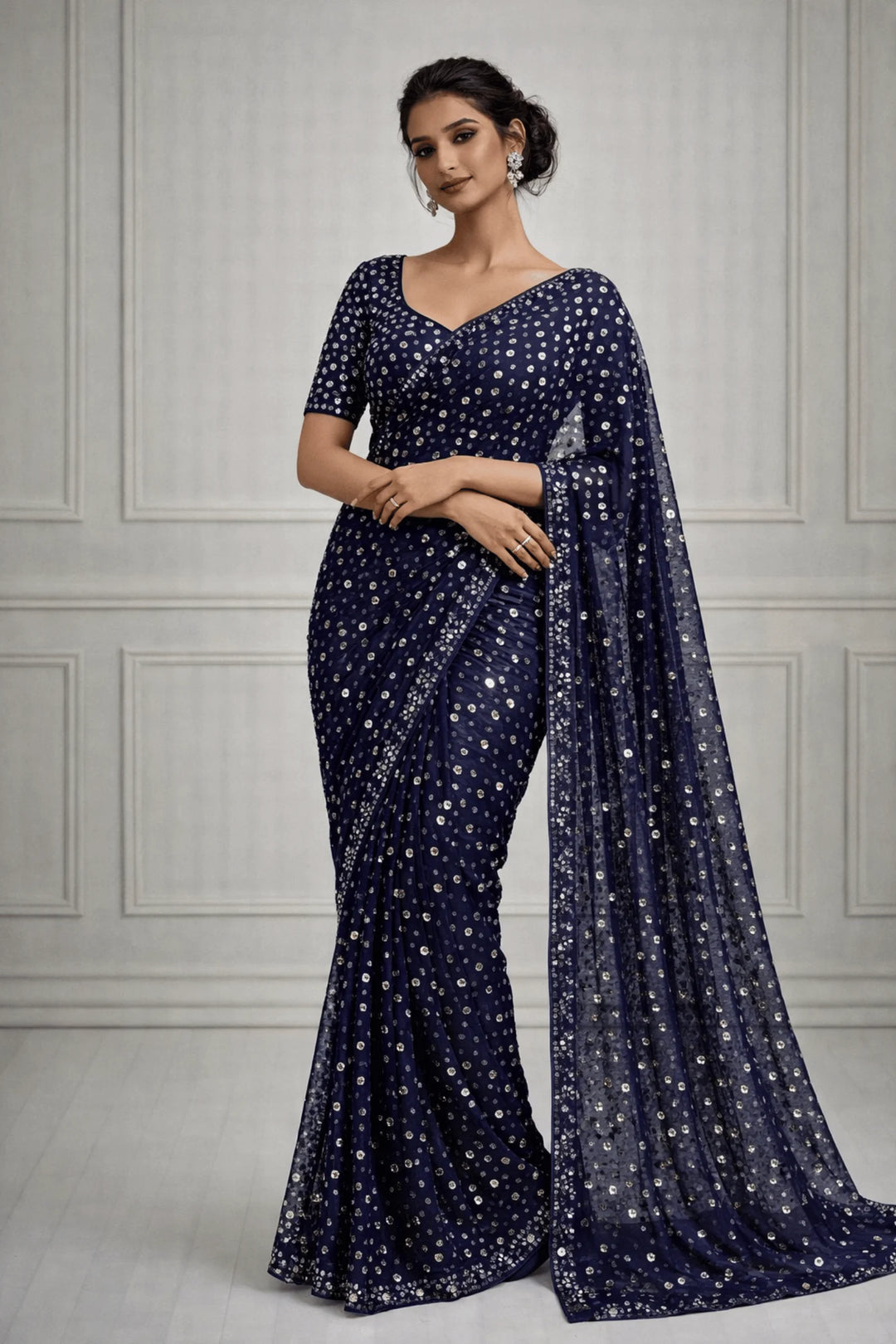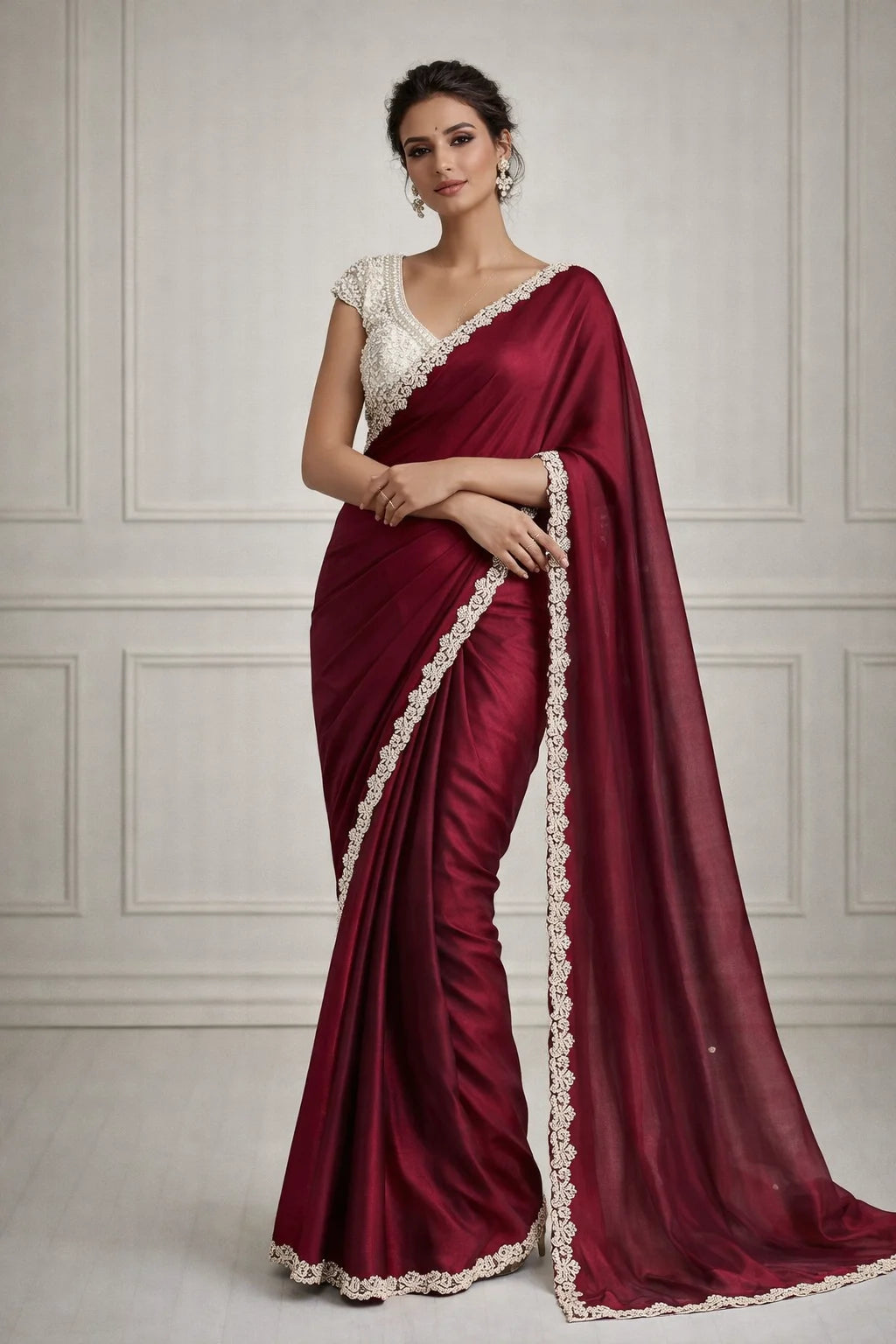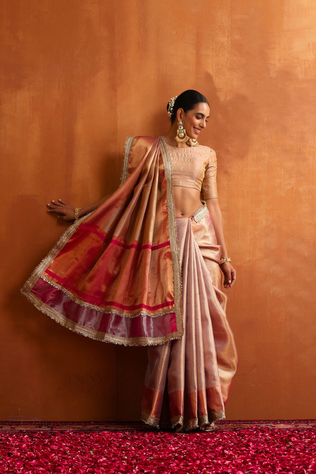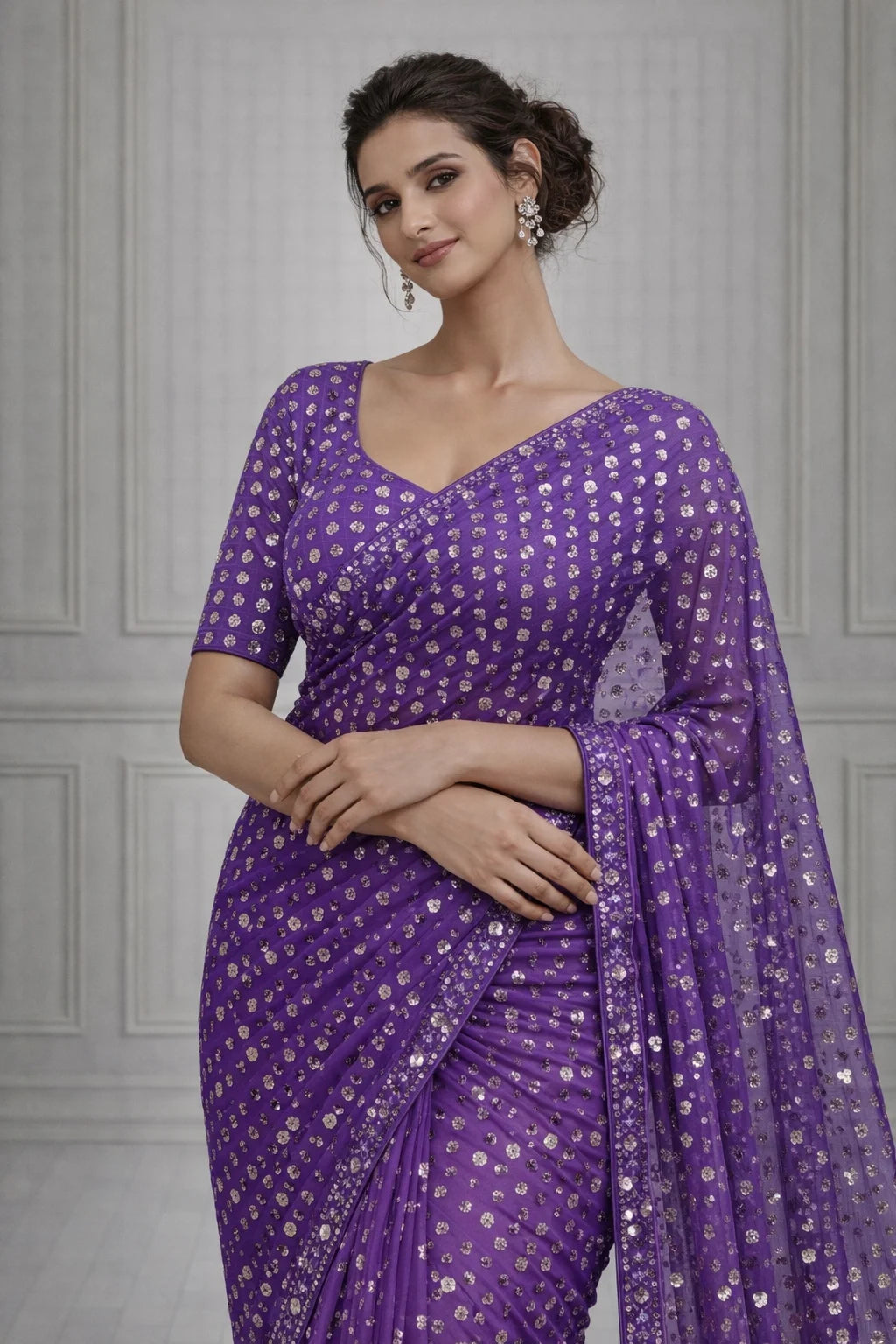 At Glamwiz, we specialize in engineered draping. Our ready-to-wear sarees with stitched blouses are designed to solve the two biggest problems in ethnic fashion: time and fit. Unlike traditional drapes, our pre-stitched 1-minute sarees feature a concealed waist-adjustment system, giving you a slim, structured silhouette every time. Whether you are looking for a heavy bridal tissue saree or a lightweight georgette pre-draped saree for a destination wedding, our collection blends traditional craftsmanship with futuristic convenience.