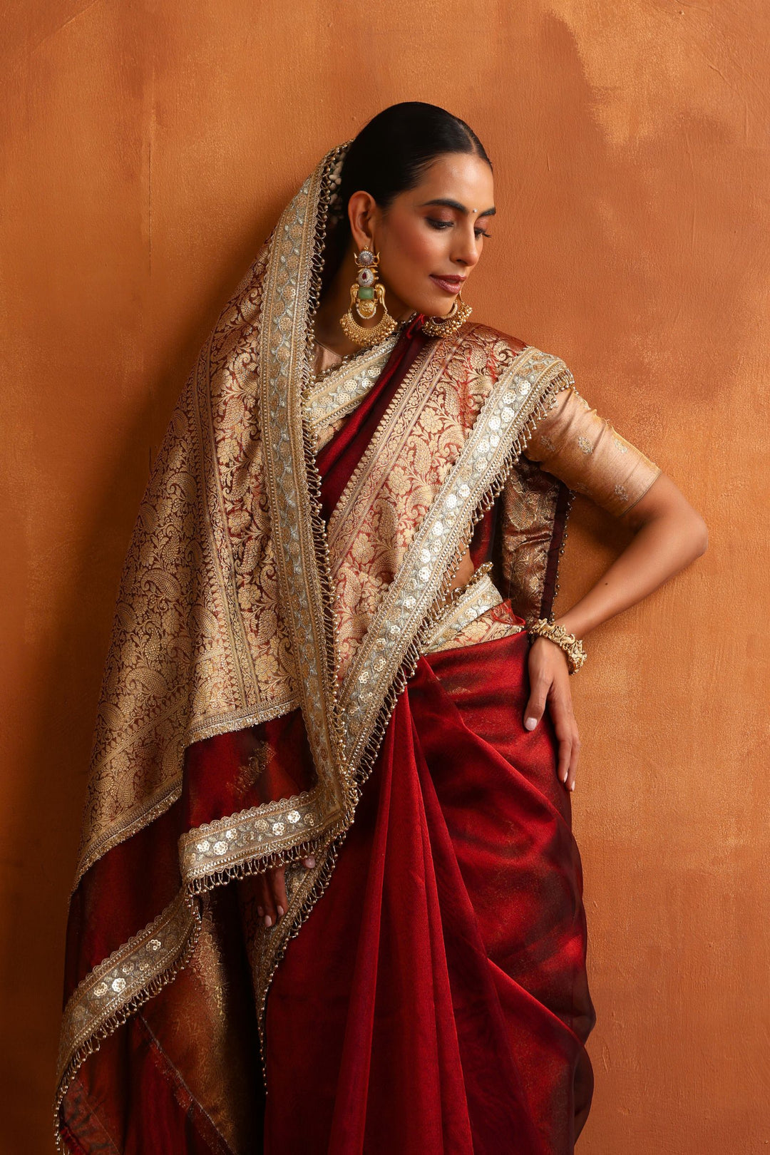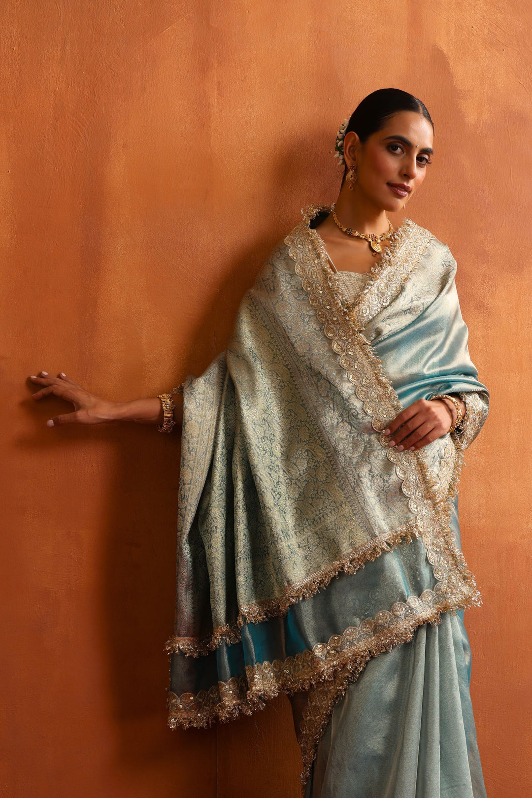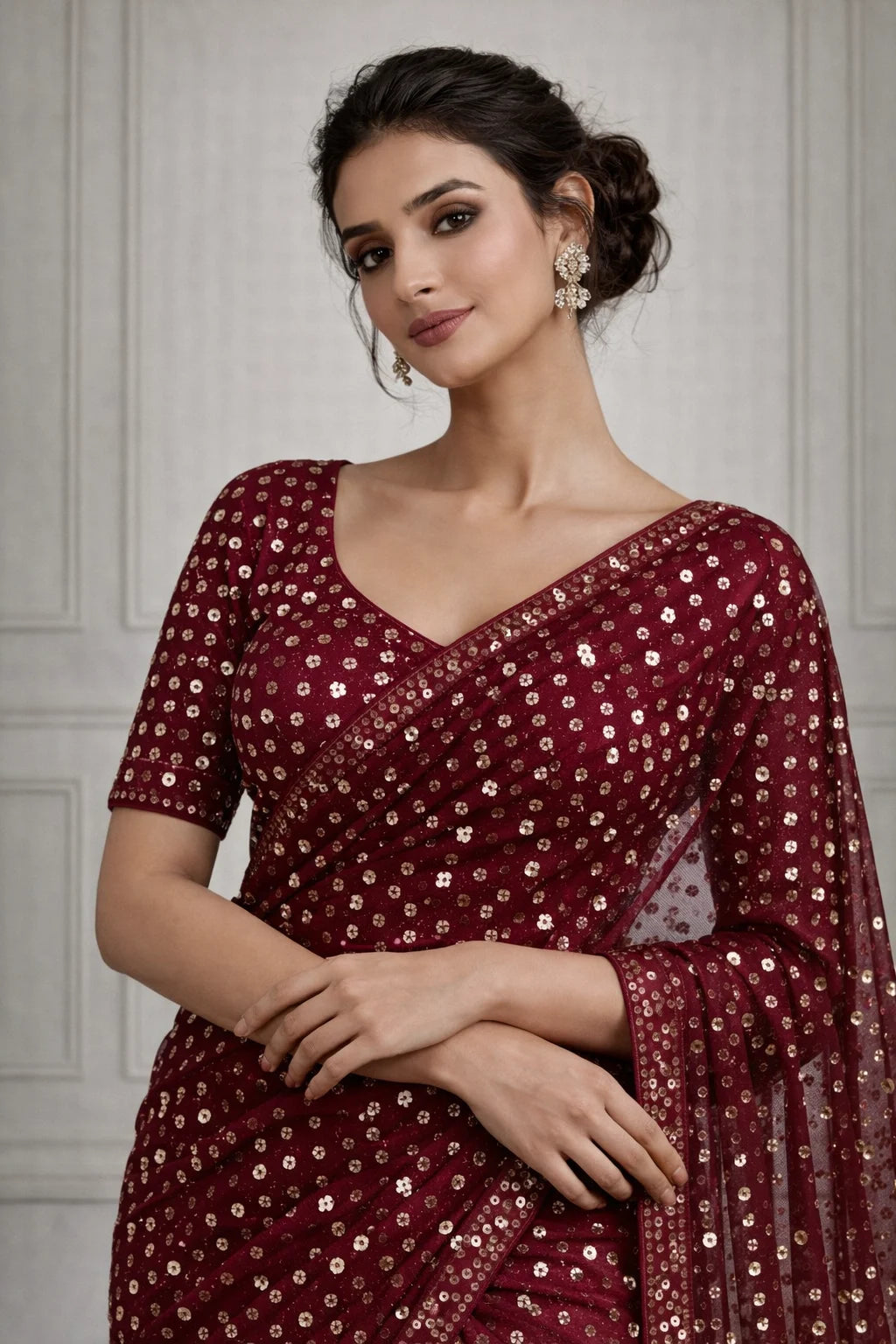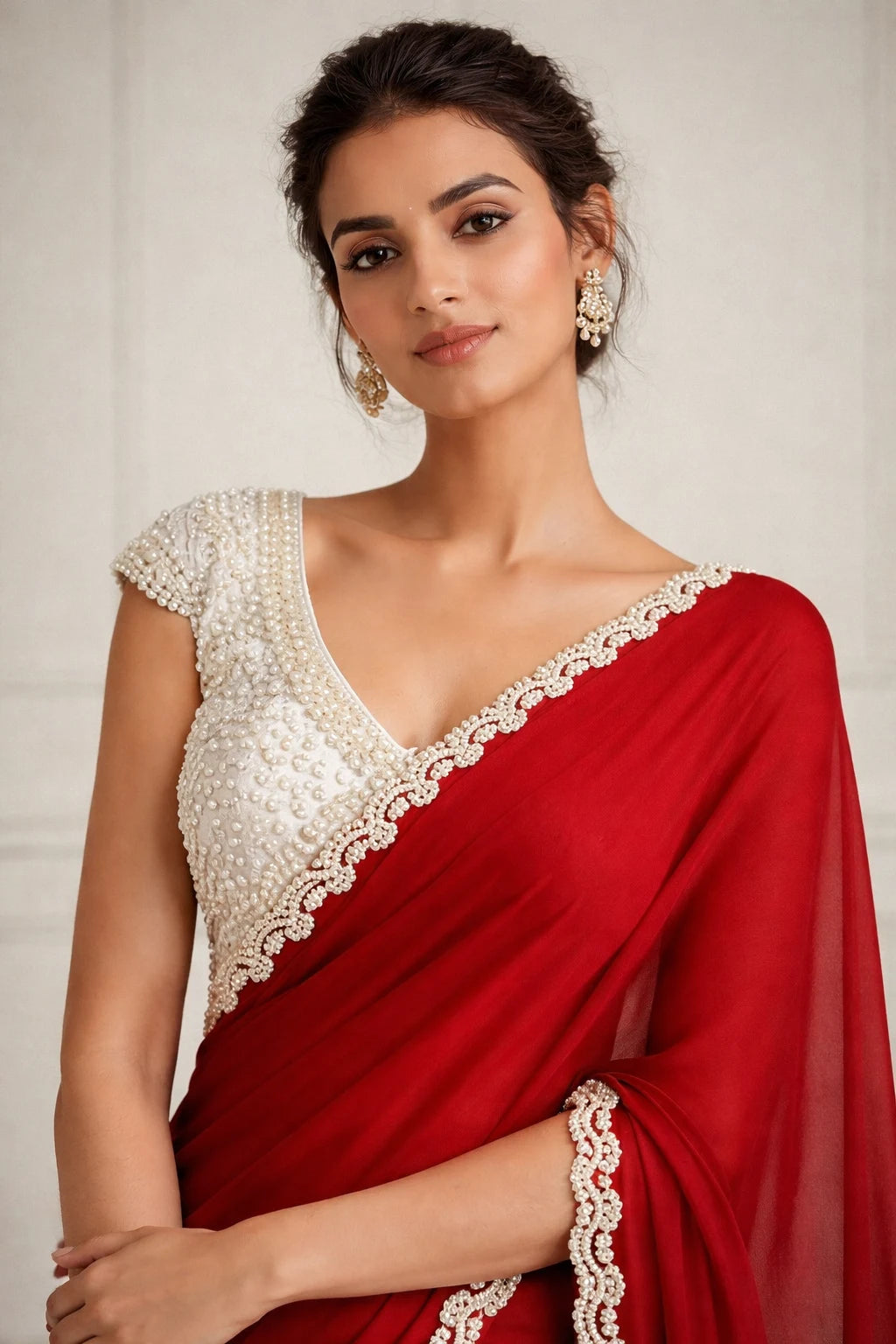 At Glamwiz, we specialize in engineered draping. Our ready-to-wear sarees with stitched blouses are designed to solve the two biggest problems in ethnic fashion: time and fit. Unlike traditional drapes, our pre-stitched 1-minute sarees feature a concealed waist-adjustment system, giving you a slim, structured silhouette every time. Whether you are looking for a heavy bridal tissue saree or a lightweight georgette pre-draped saree for a destination wedding, our collection blends traditional craftsmanship with futuristic convenience.