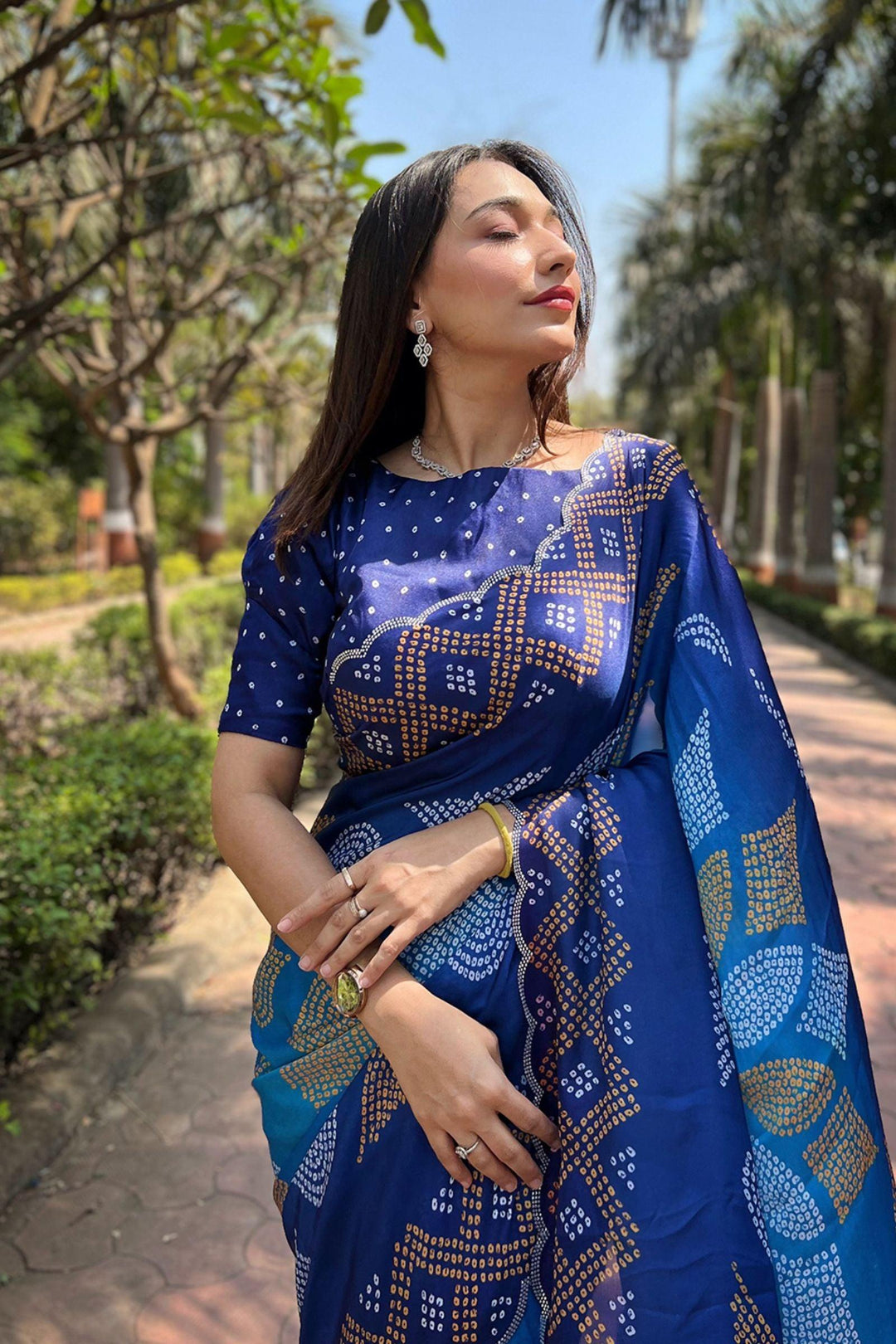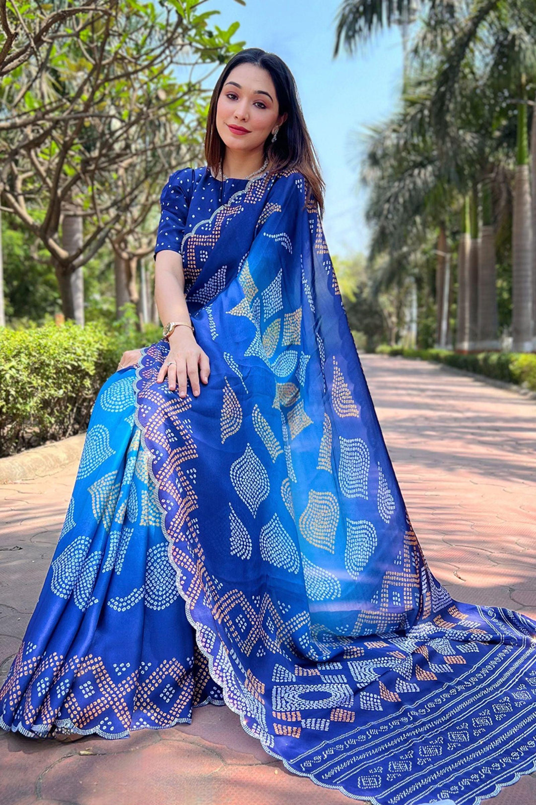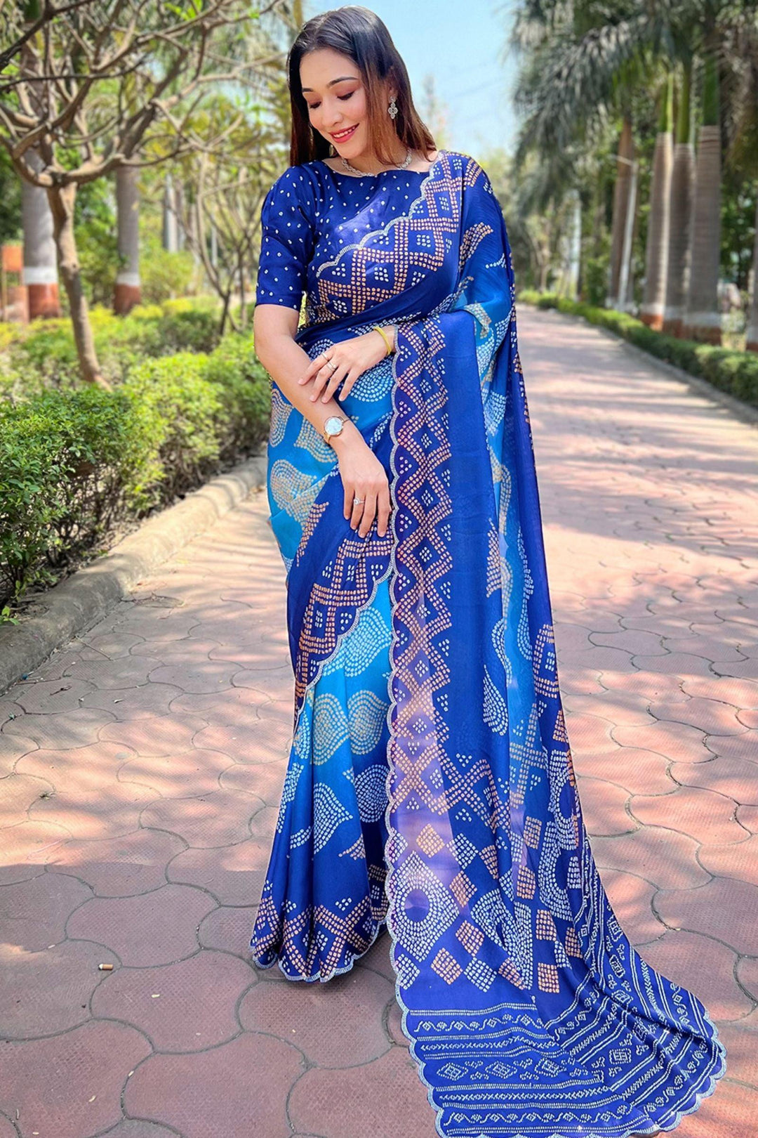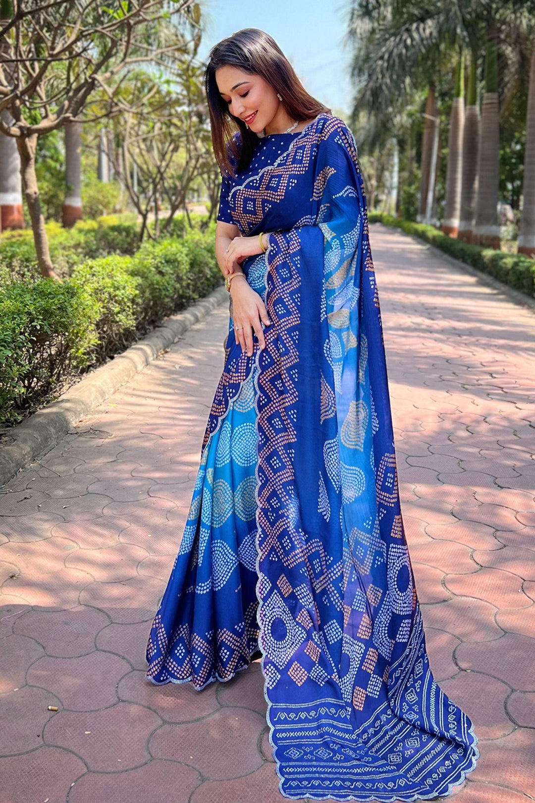 Ready To Wear Royal Blue Bandhej Georgette Saree