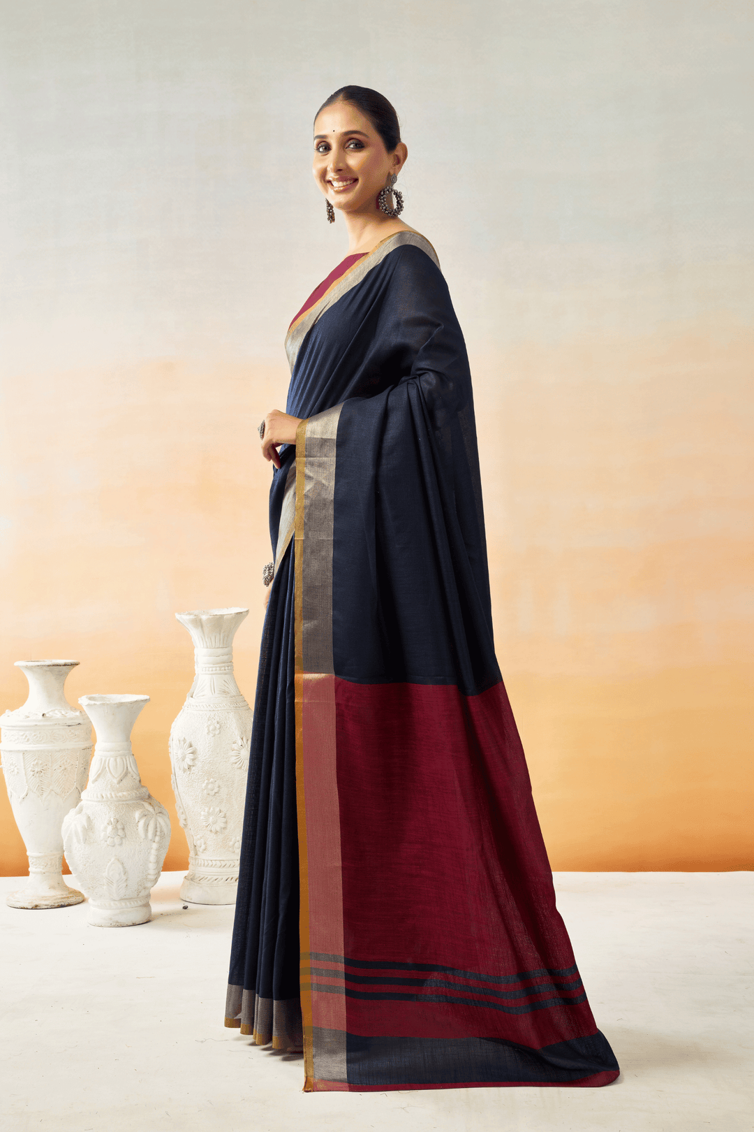 Blue Noir | Ready to Wear Zari Cotton Saree