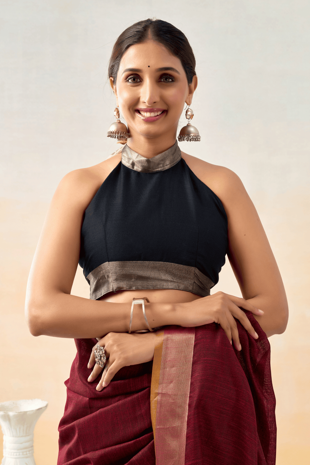 Burgundy Bloom | Ready to Wear Zari Cotton Saree