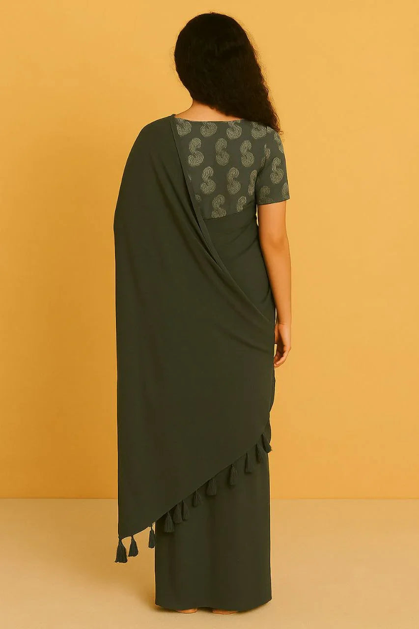 Gray Vogue | Ready to Wear Grey Mul Cotton Saree with Blouse Piece