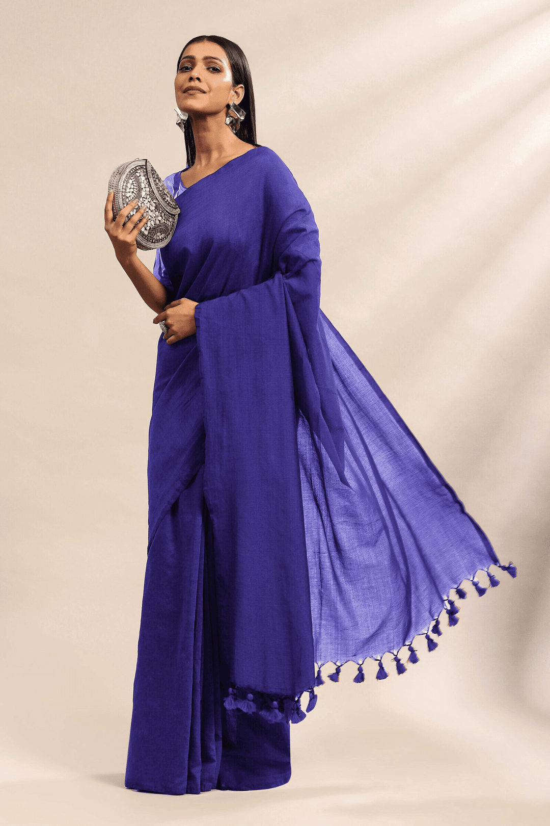 - Soft Mul cotton saree with tassel pallu.