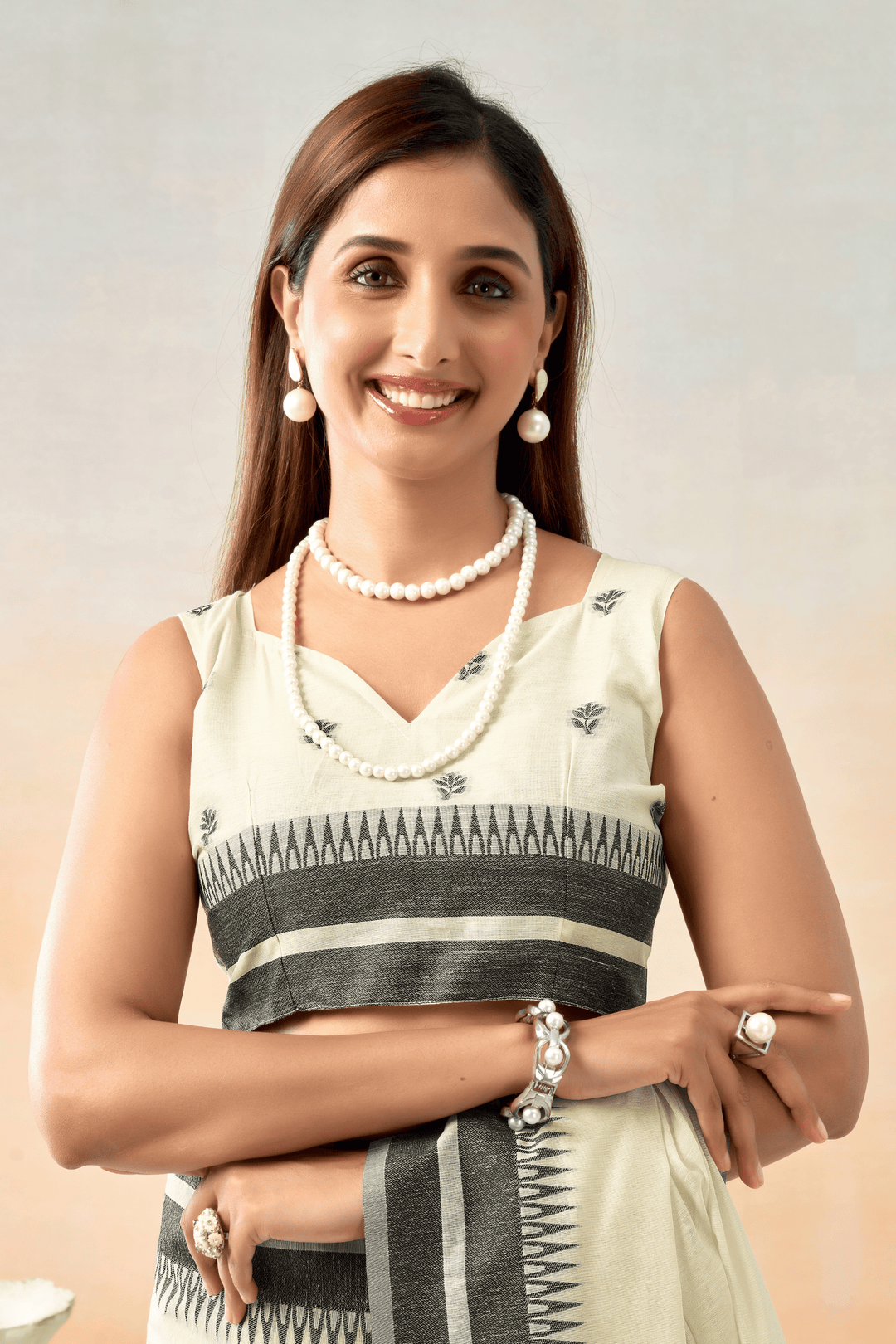 Step into timeless elegance with our Pure Spun Cotton Handloom-Style Saree.