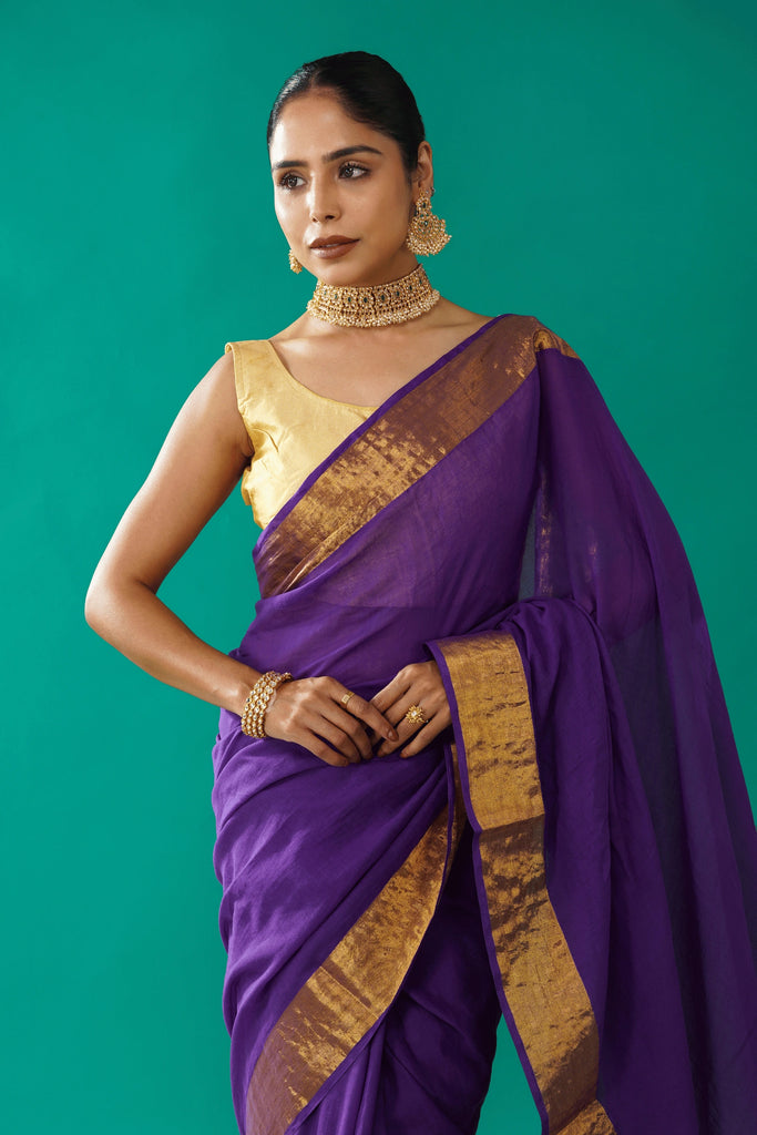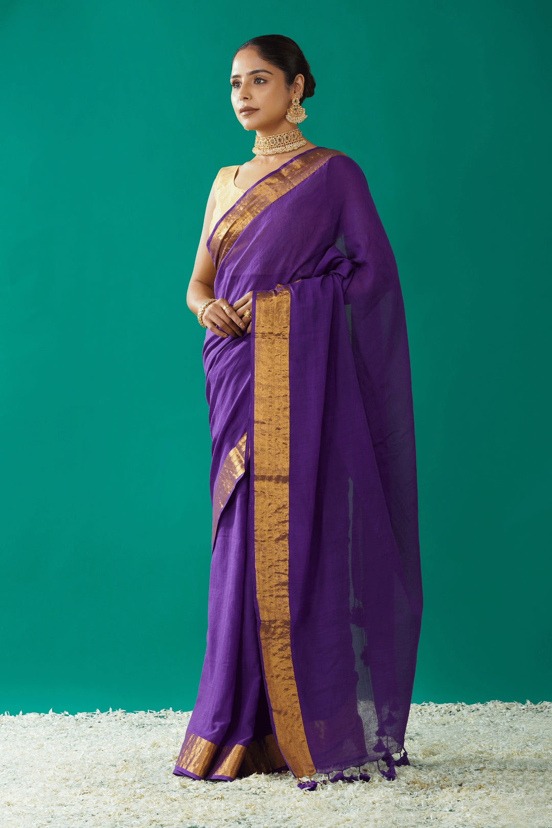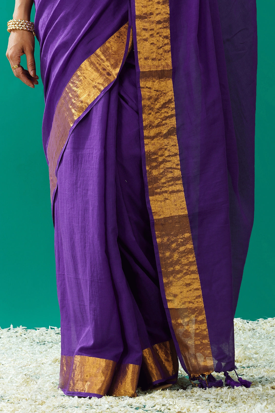 Radiance and confidence in this Purple Mul Cotton Saree, enhanced with playful purple tassels for that extra pop of personality. Crafted in soft, breathable mul cotton, this saree is designed to keep you cool and stylish all day long.