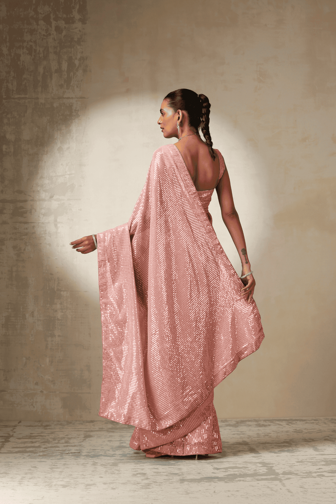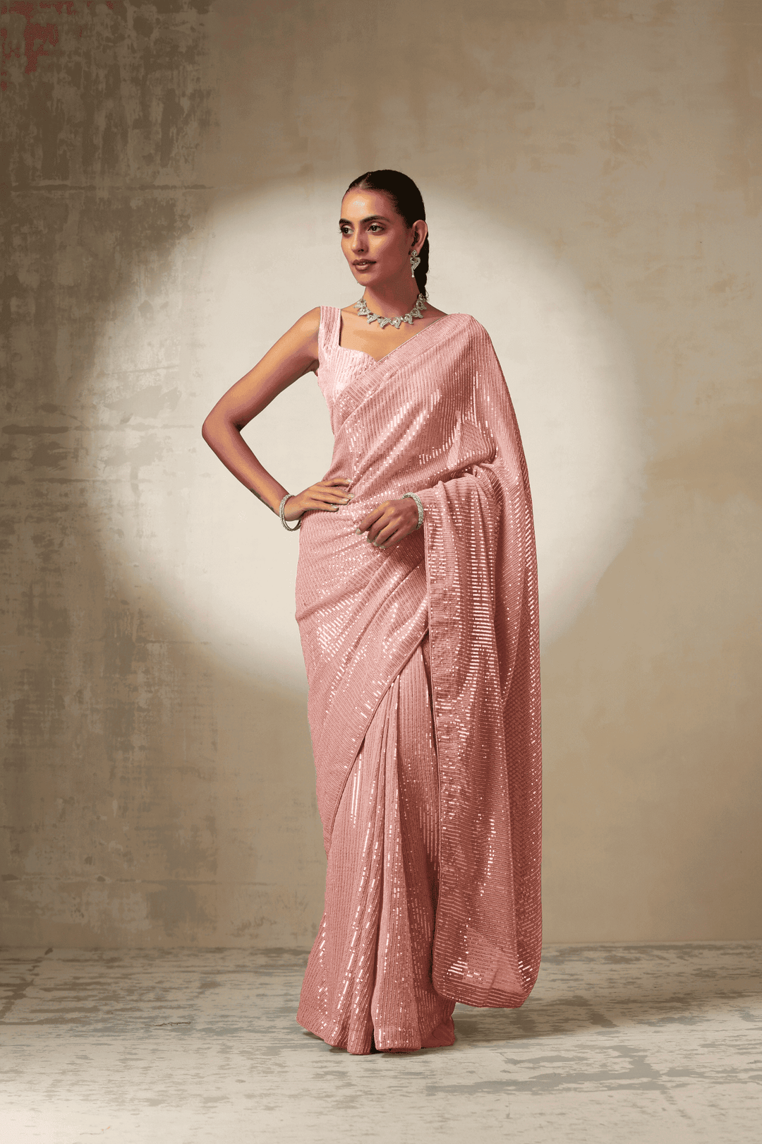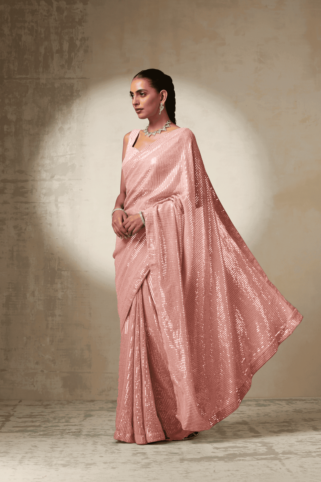 - An attached 1 Mtr sequins blouse (unstitched).