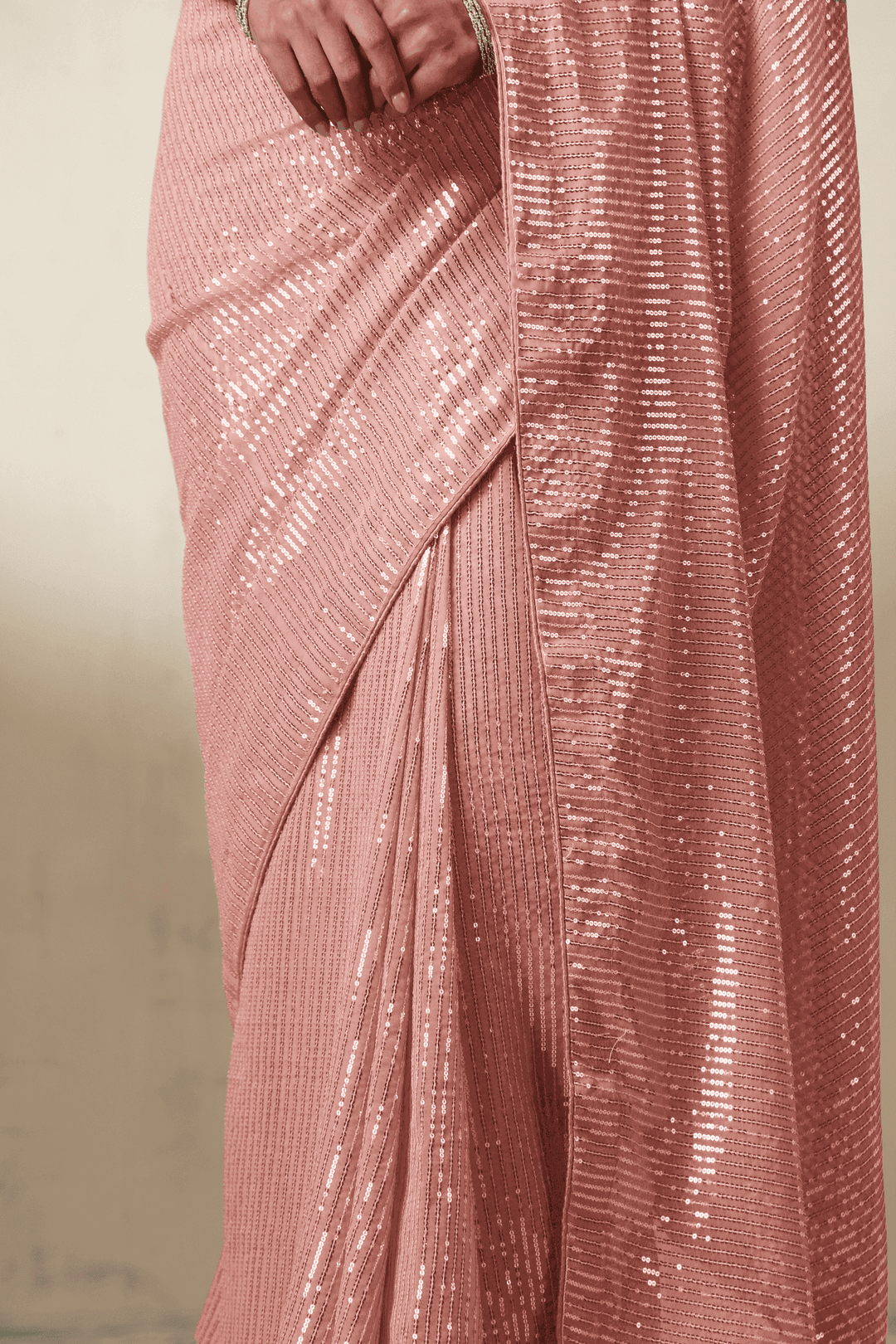 Coral Kiss | Ready to Wear Peach Sequins Saree