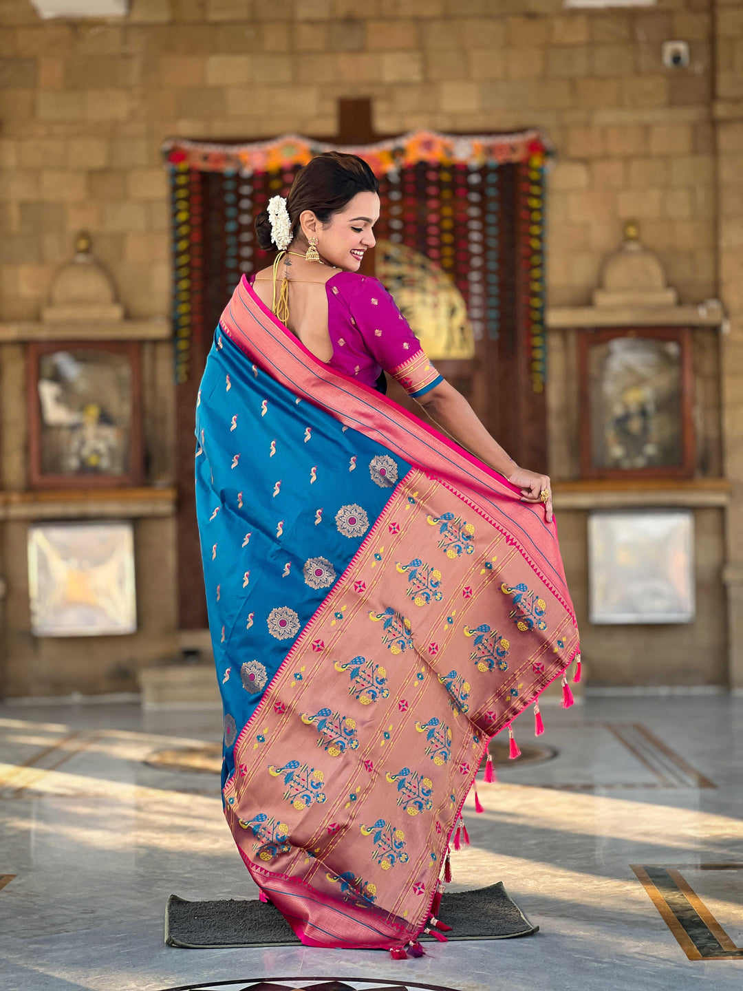 Introducing Glamwiz Ready To Wear Paithani Silk Saree. Experience the perfect blend of tradition and convenience with the Glamwiz Ready-to-Wear Saree. This stunning saree is designed to offer you the elegance of a traditional saree with the ease of modern fashion.
