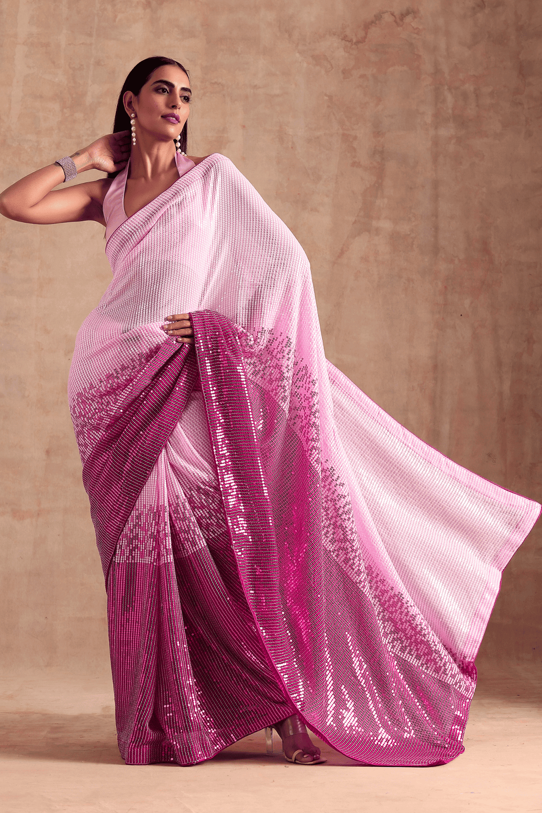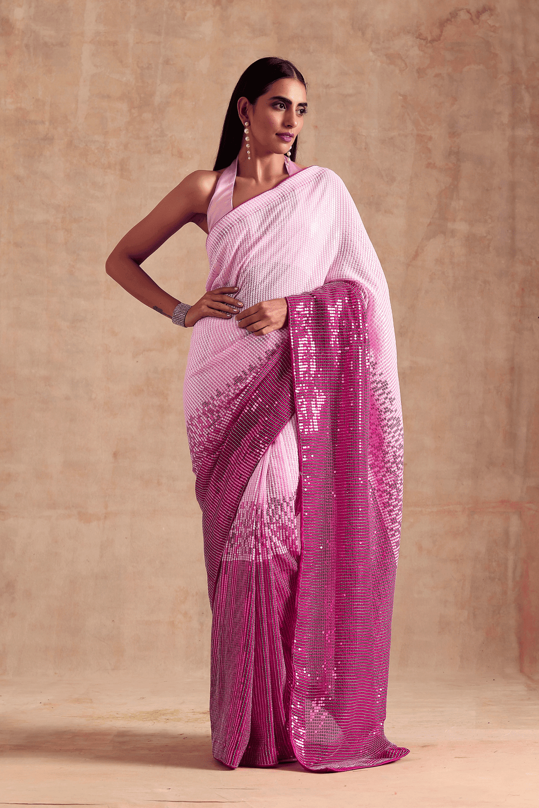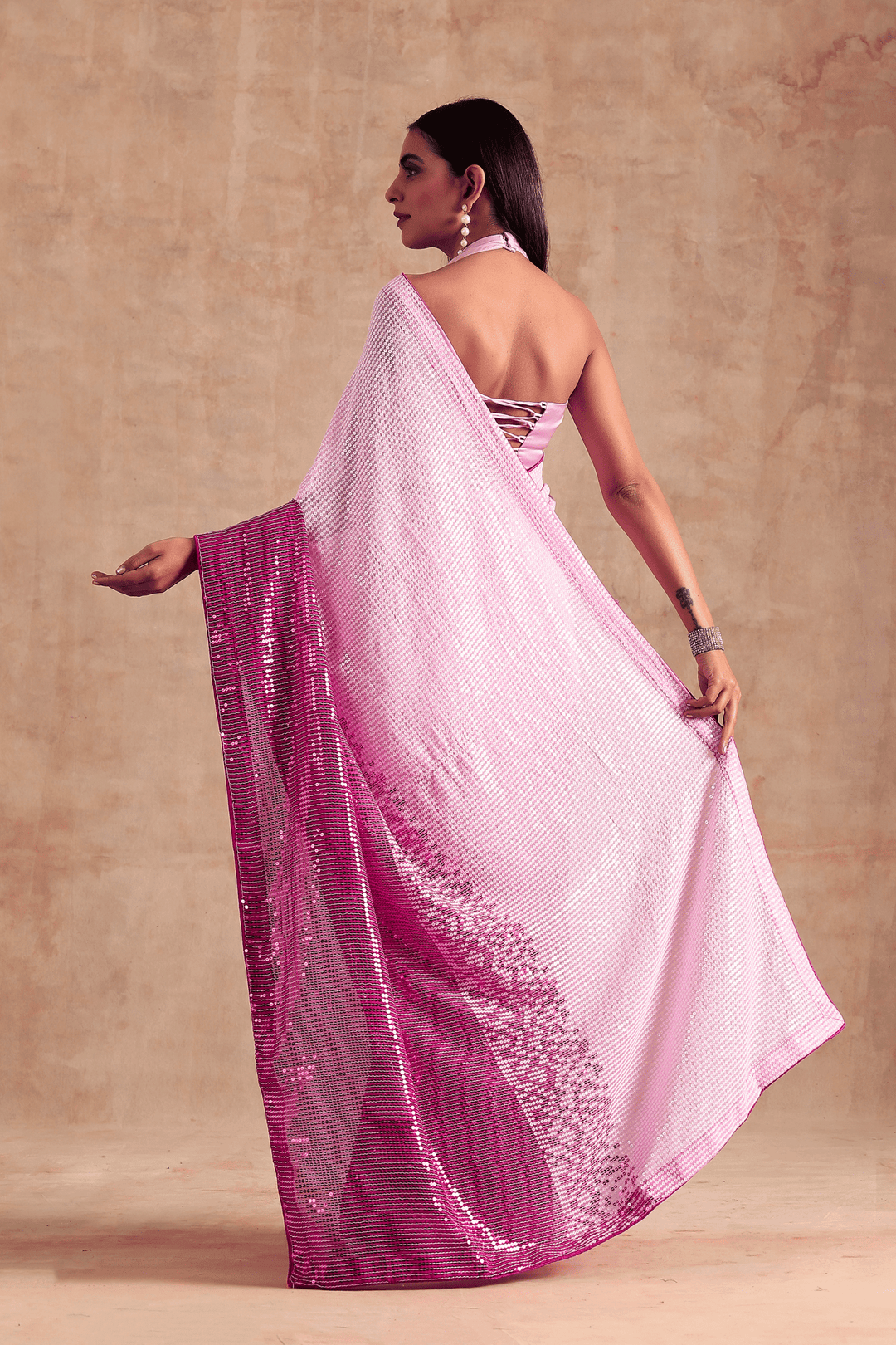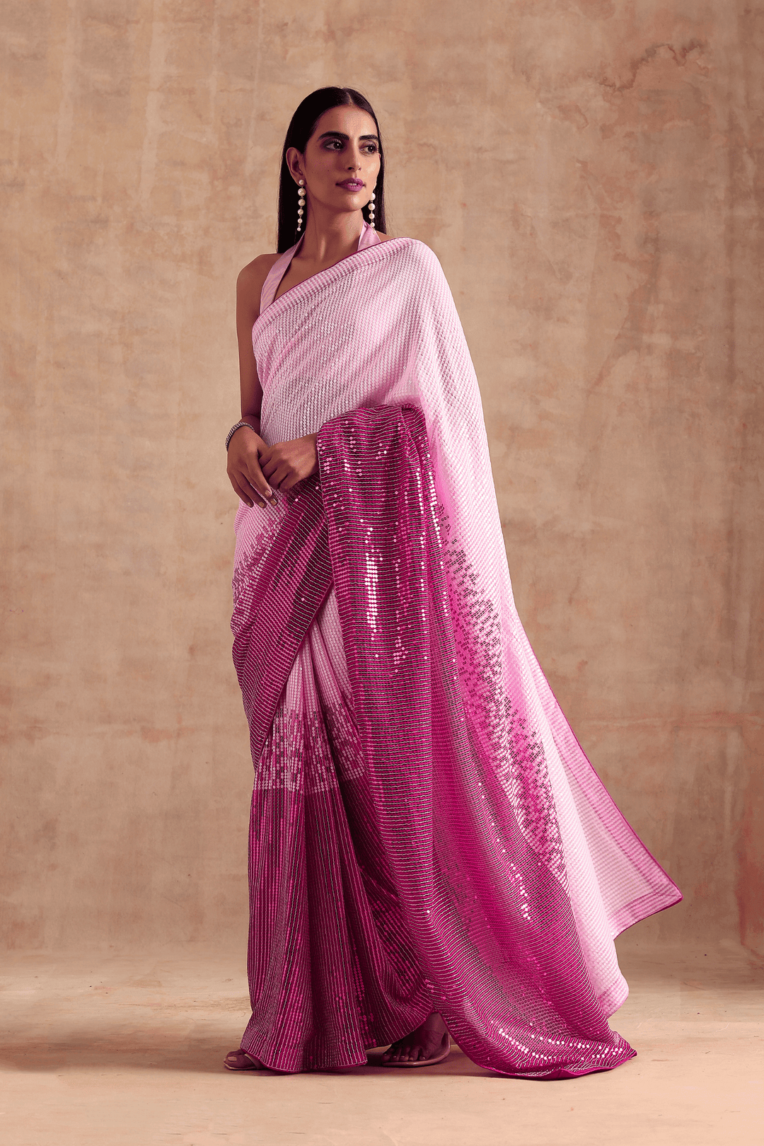Fuschia Fantasy Saree | Pre-Stitched Ombre Pink Sequins Saree