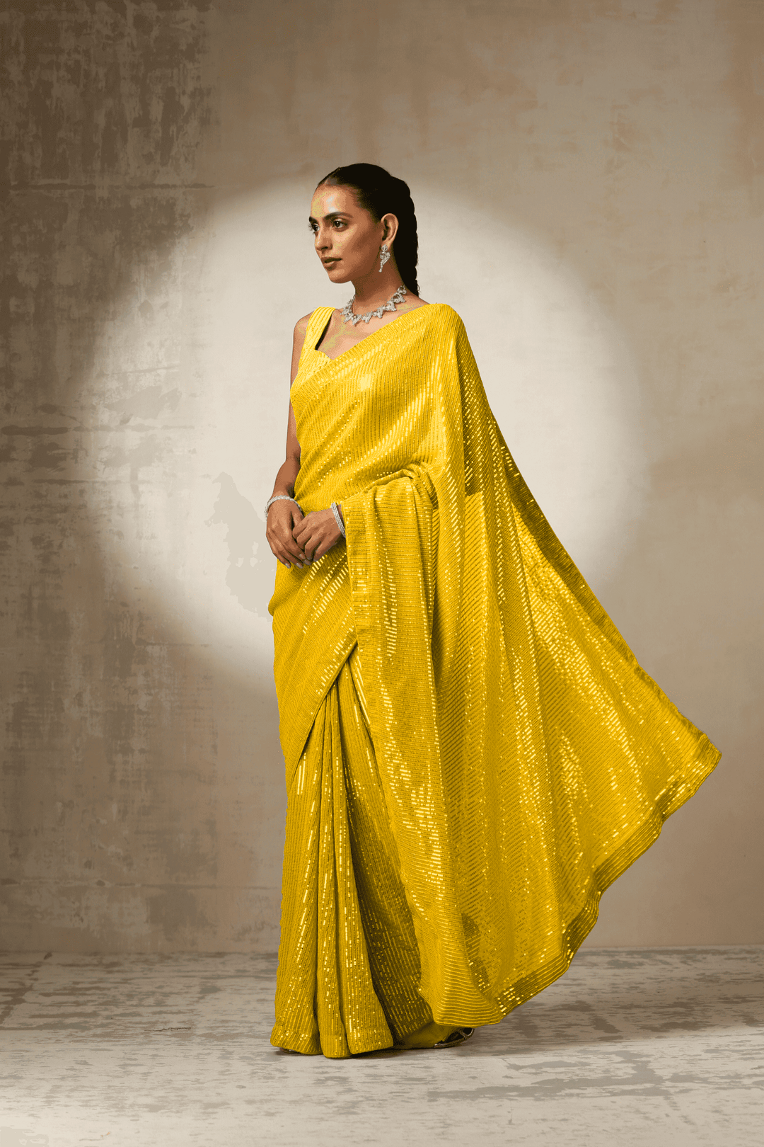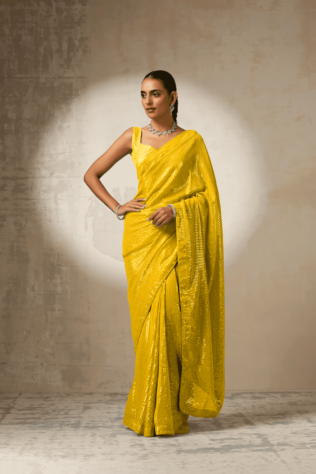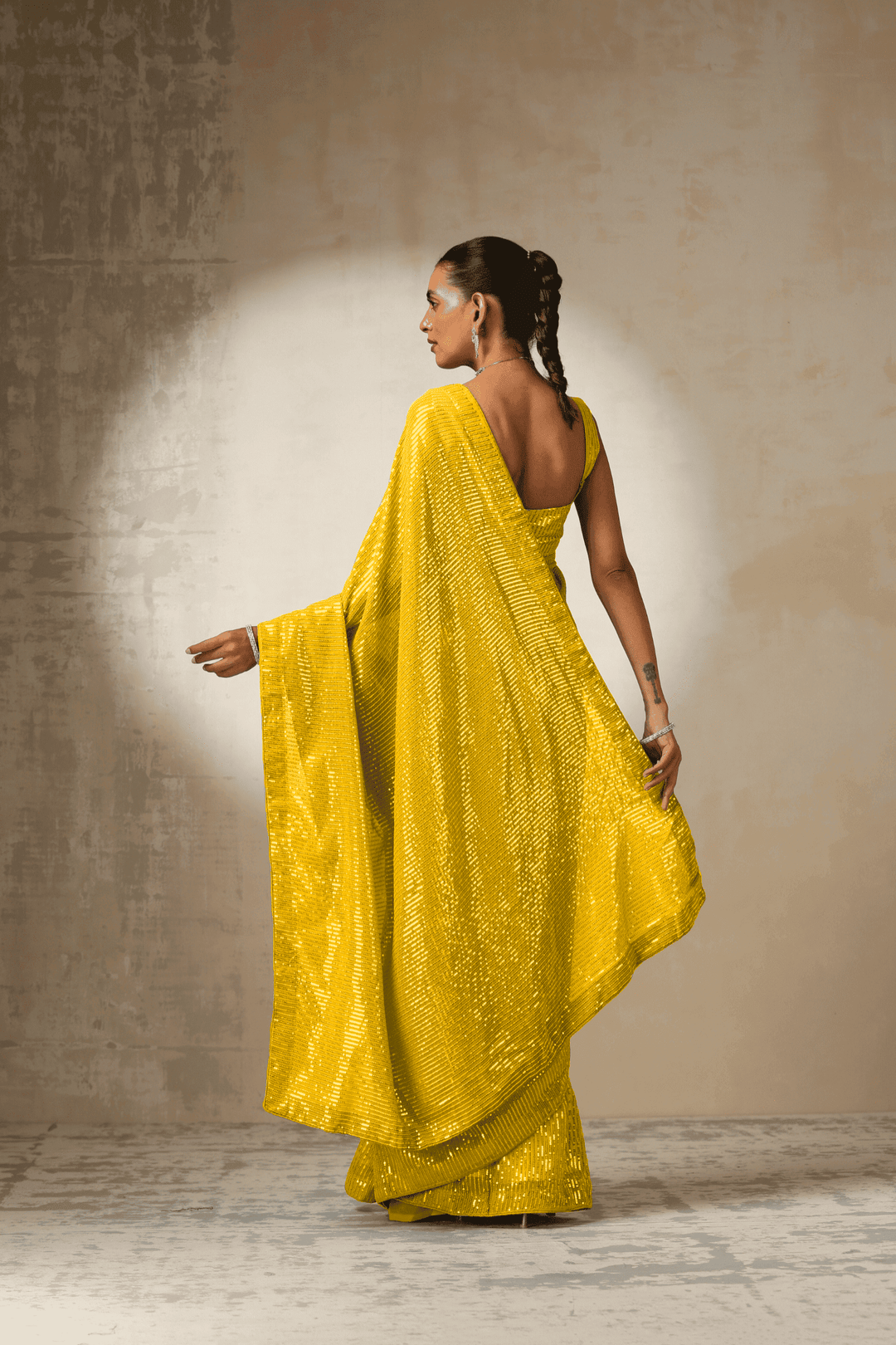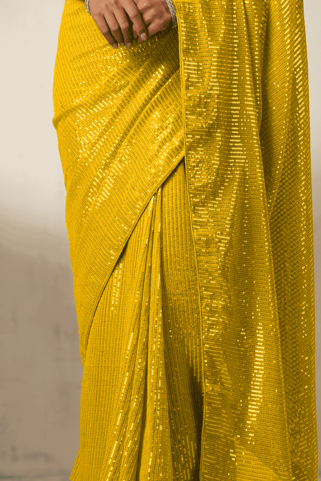 Marigold Aura | Ready to Wear Yellow Sequins Saree