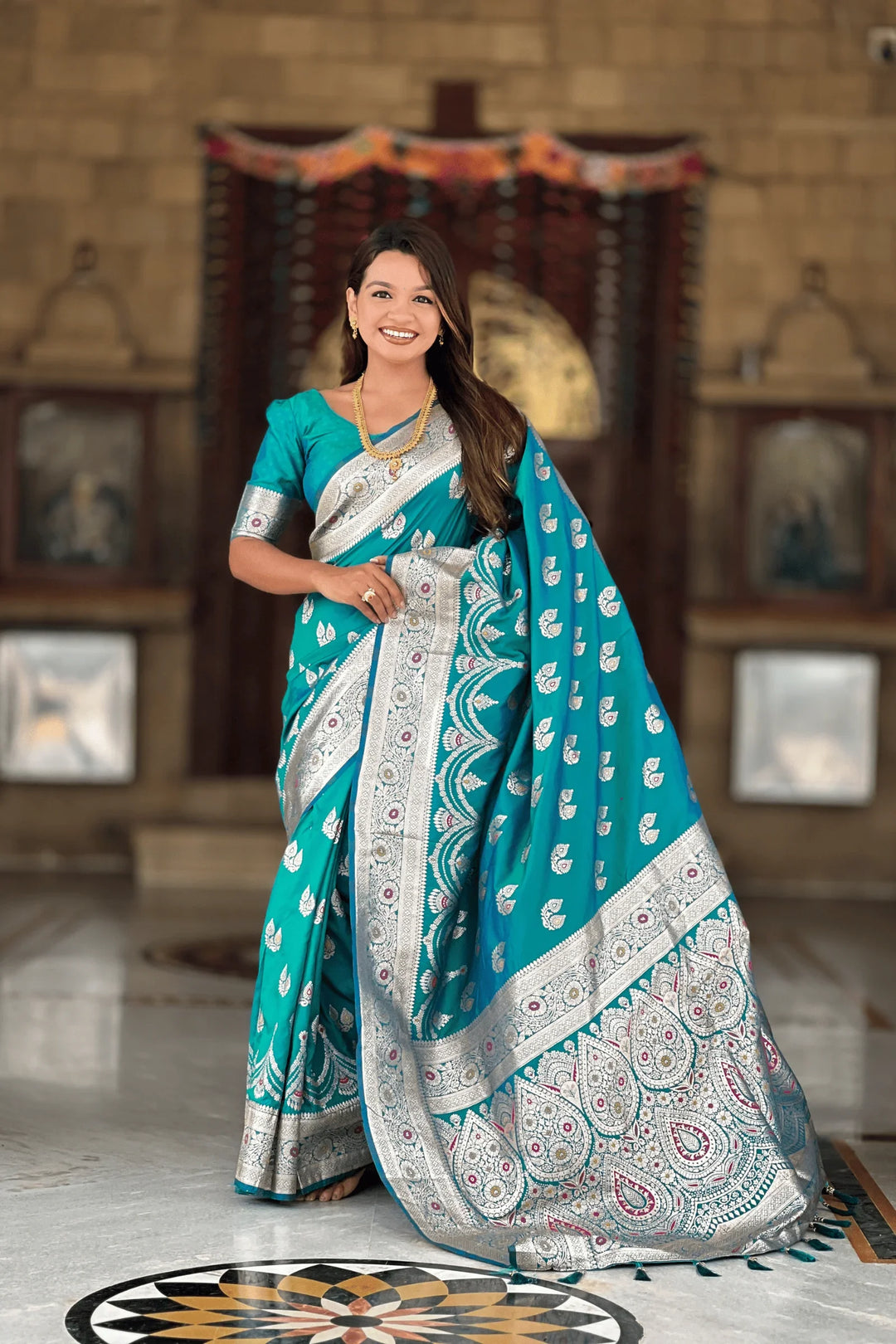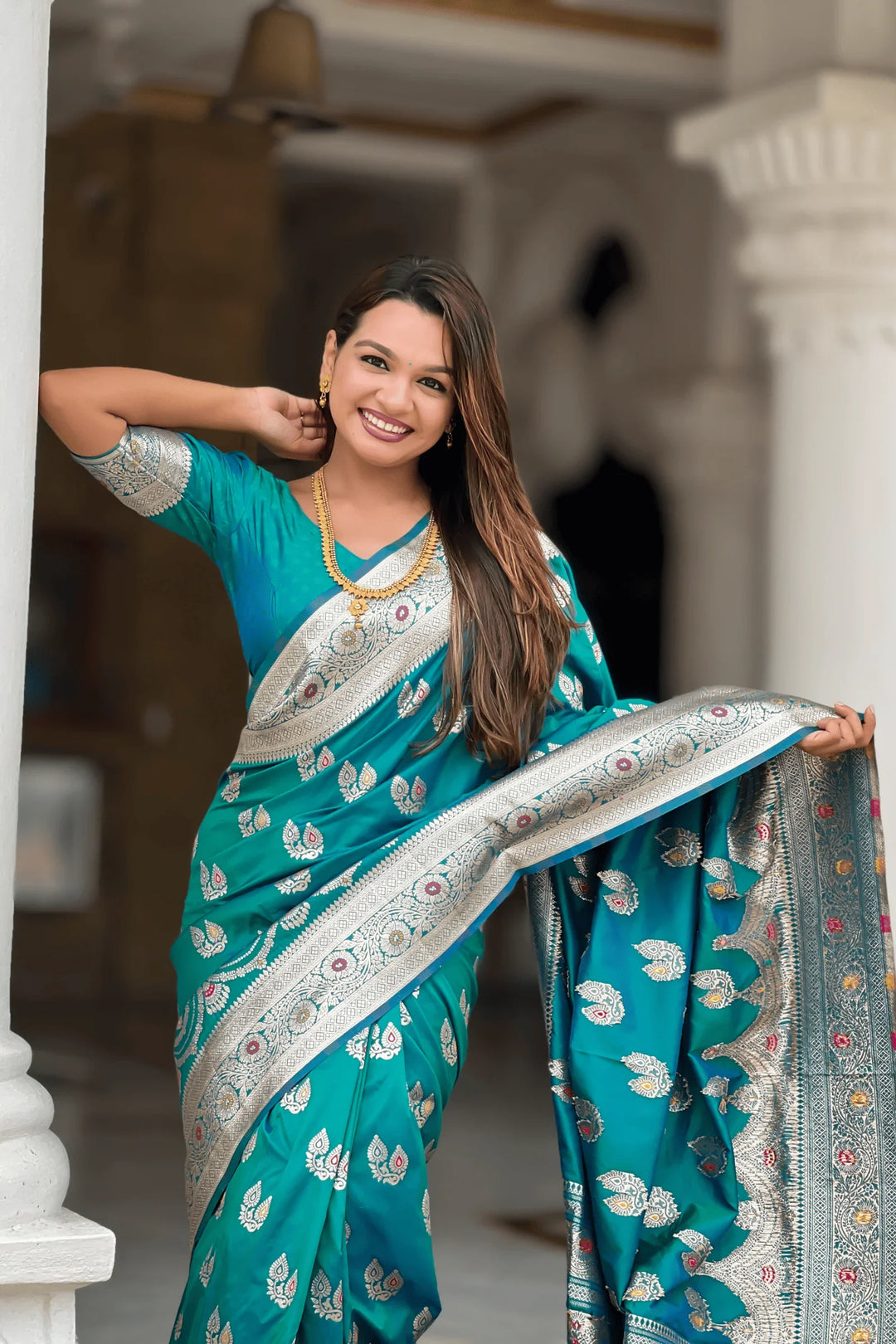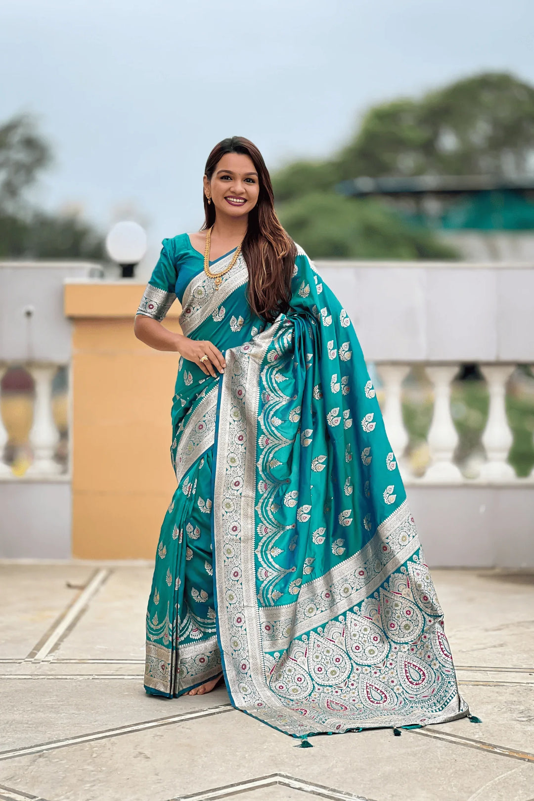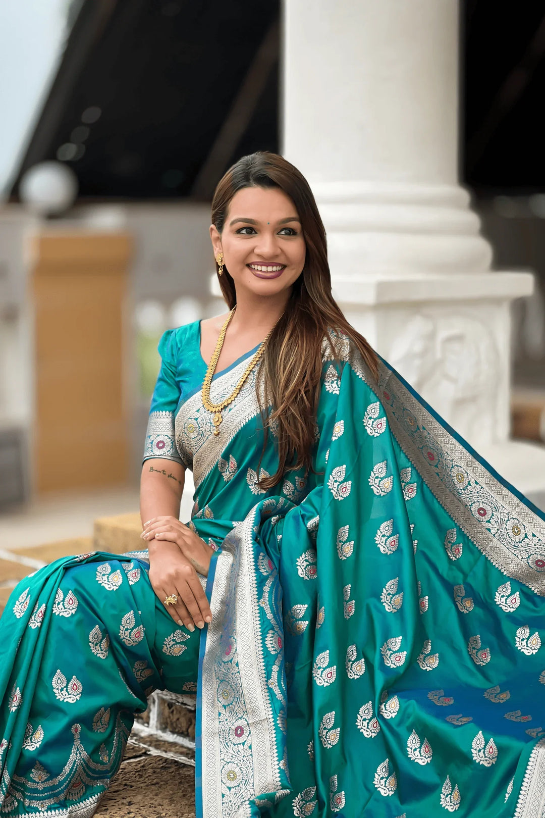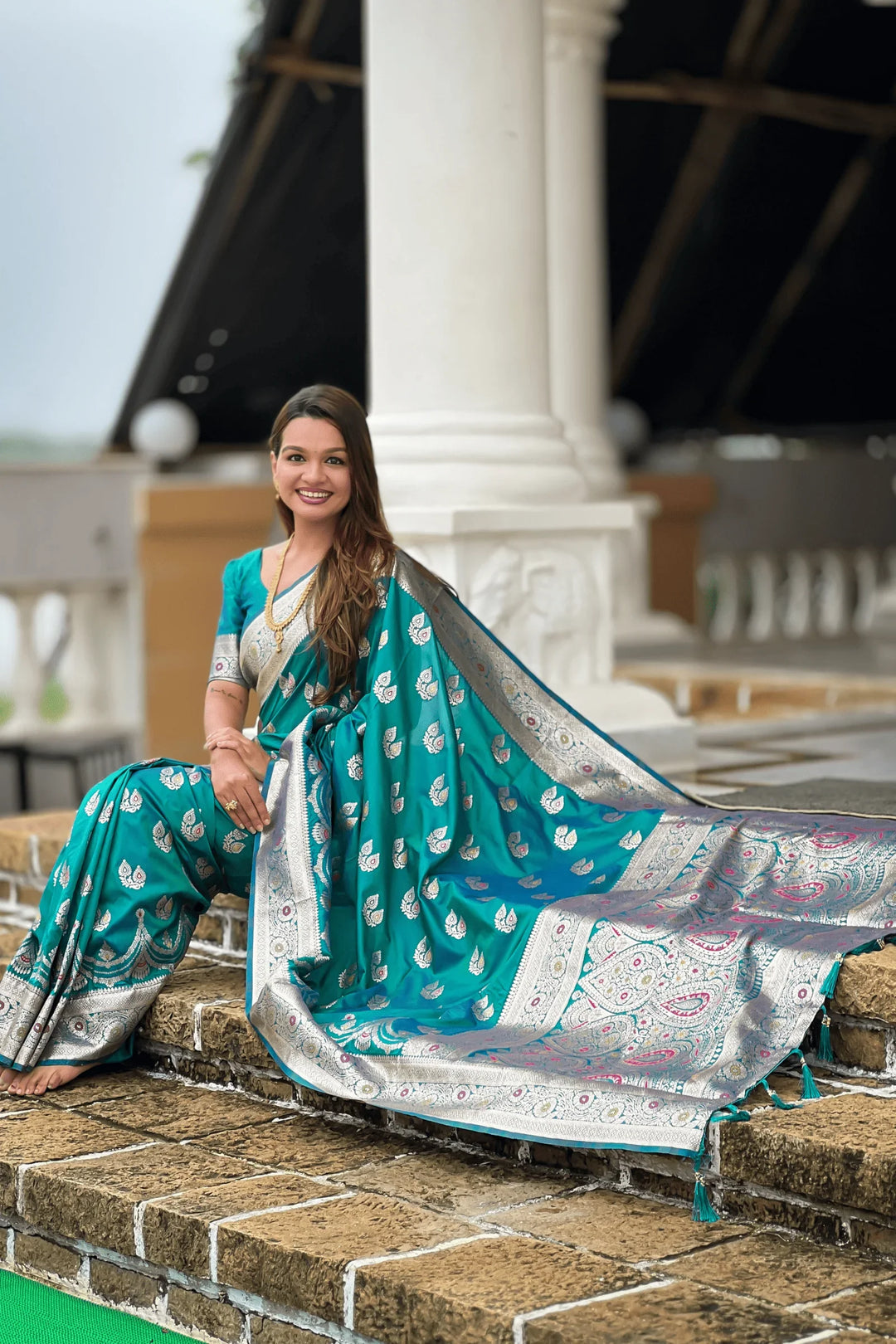 Banarasi Luxe | Ready to Wear Teal Banarasi Silk Saree