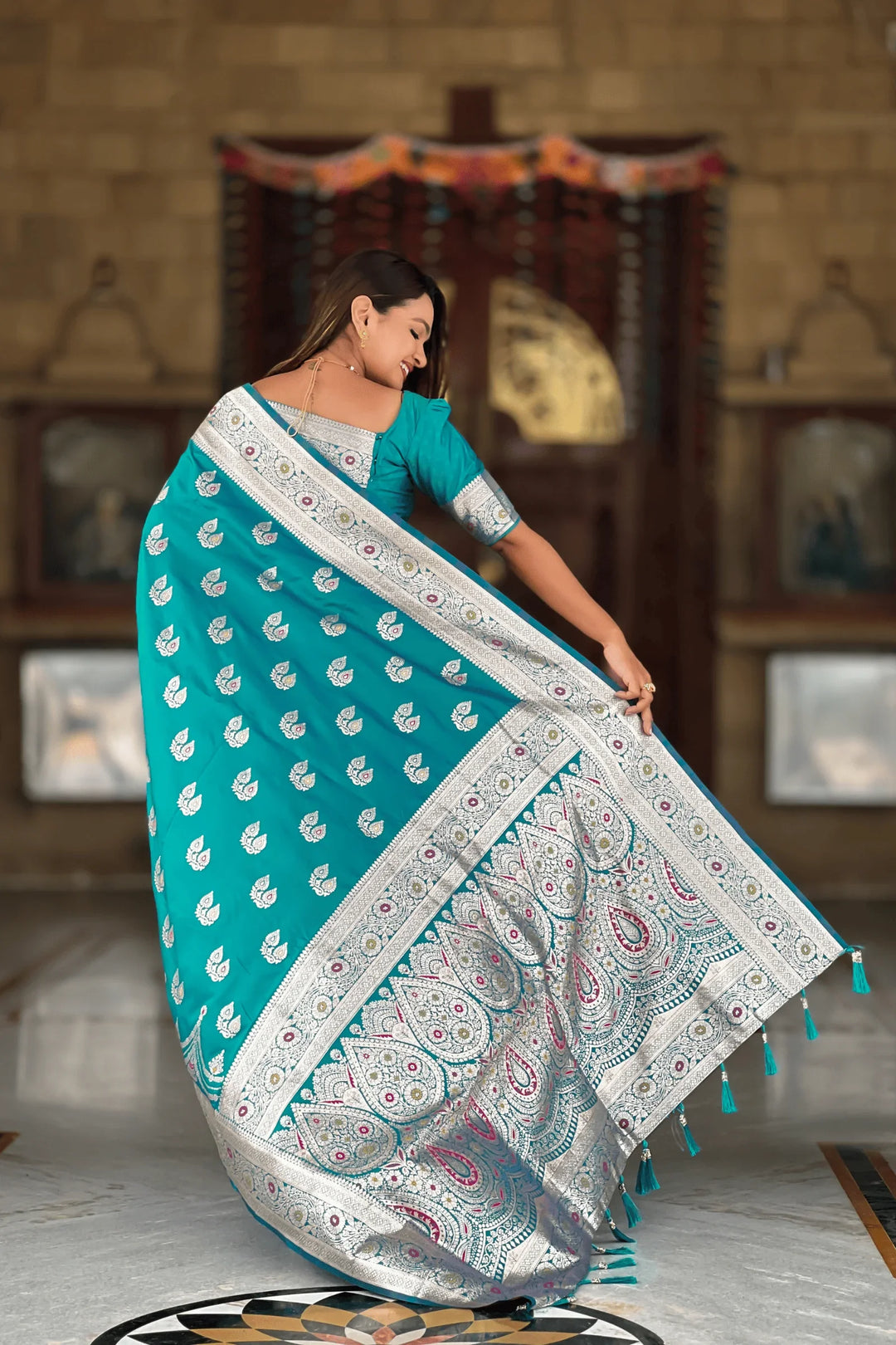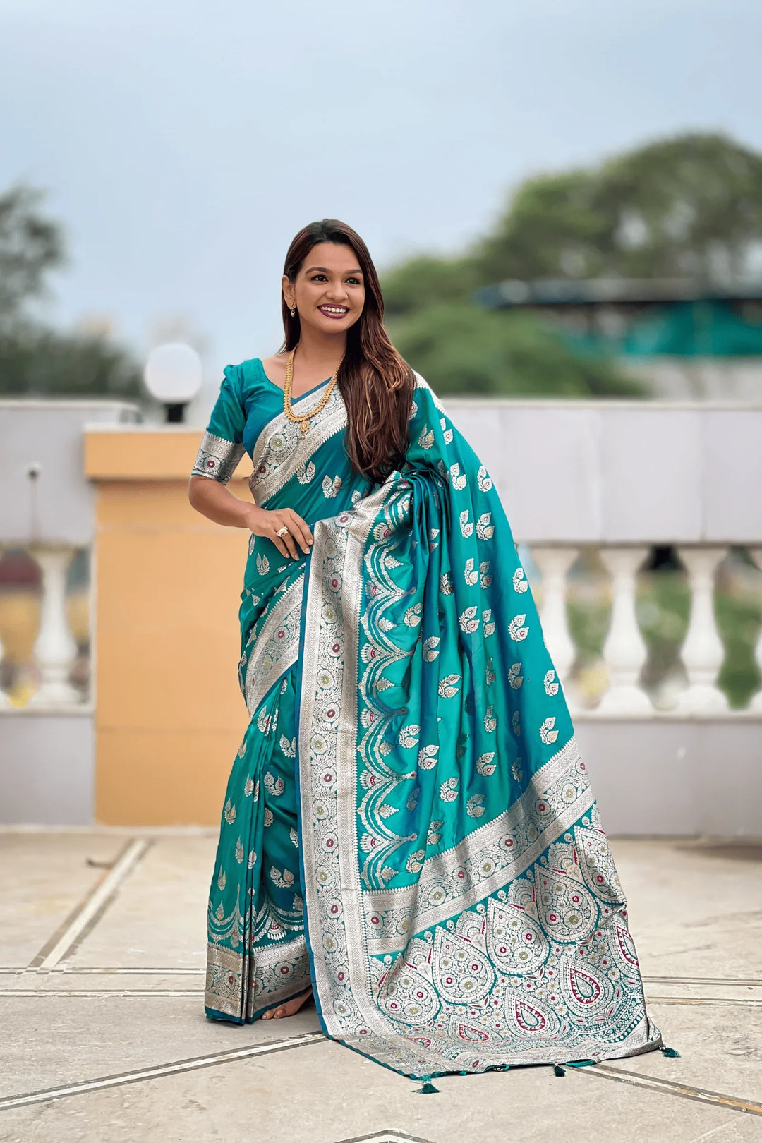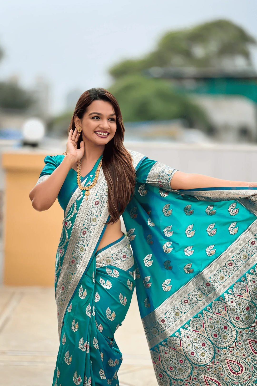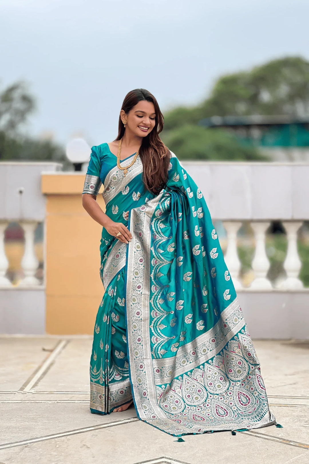 Banarasi Luxe | Ready to Wear Teal Banarasi Silk Saree