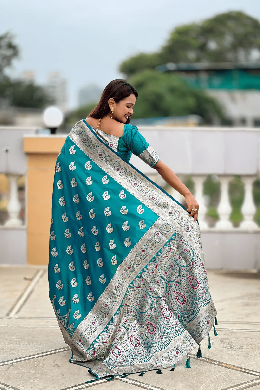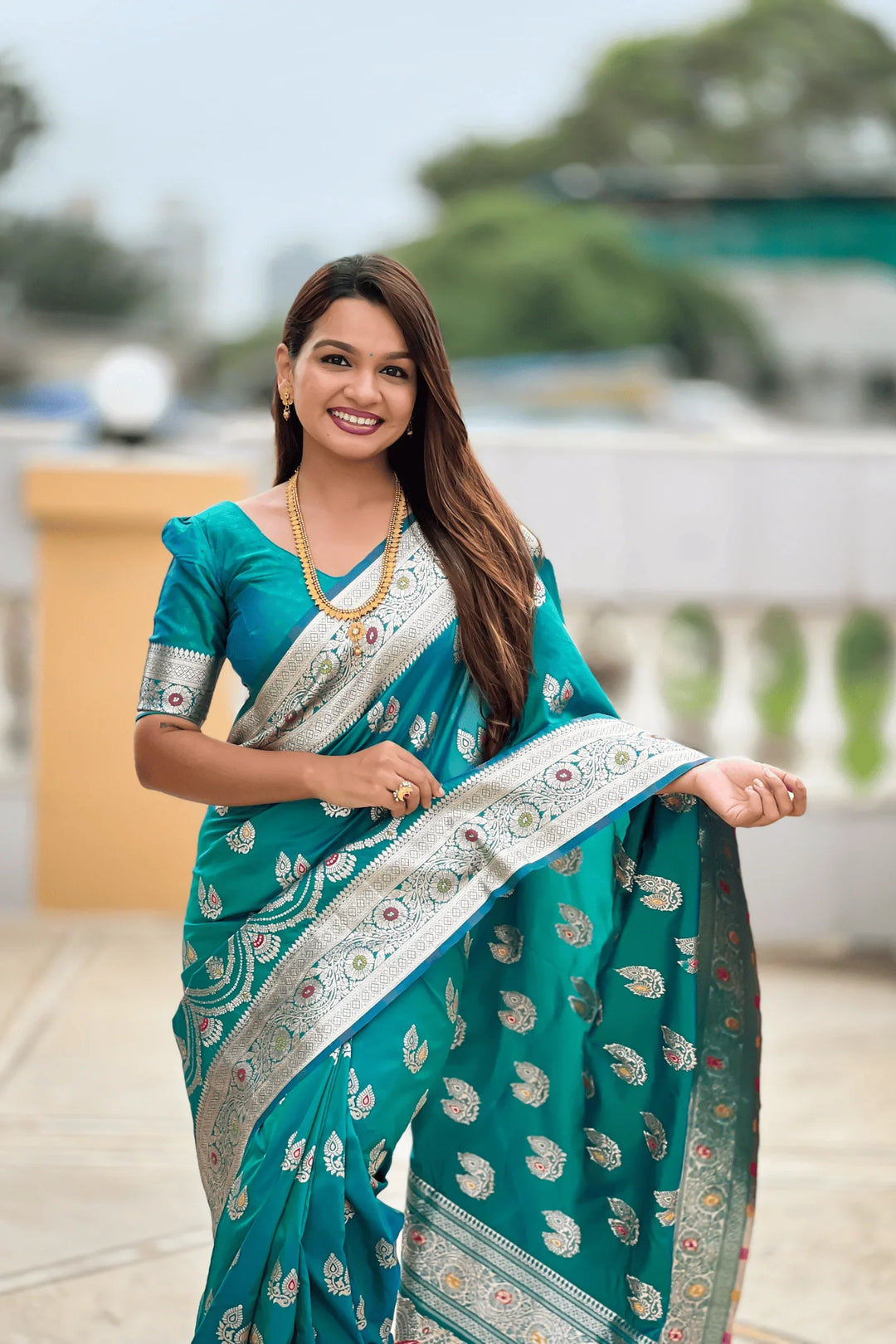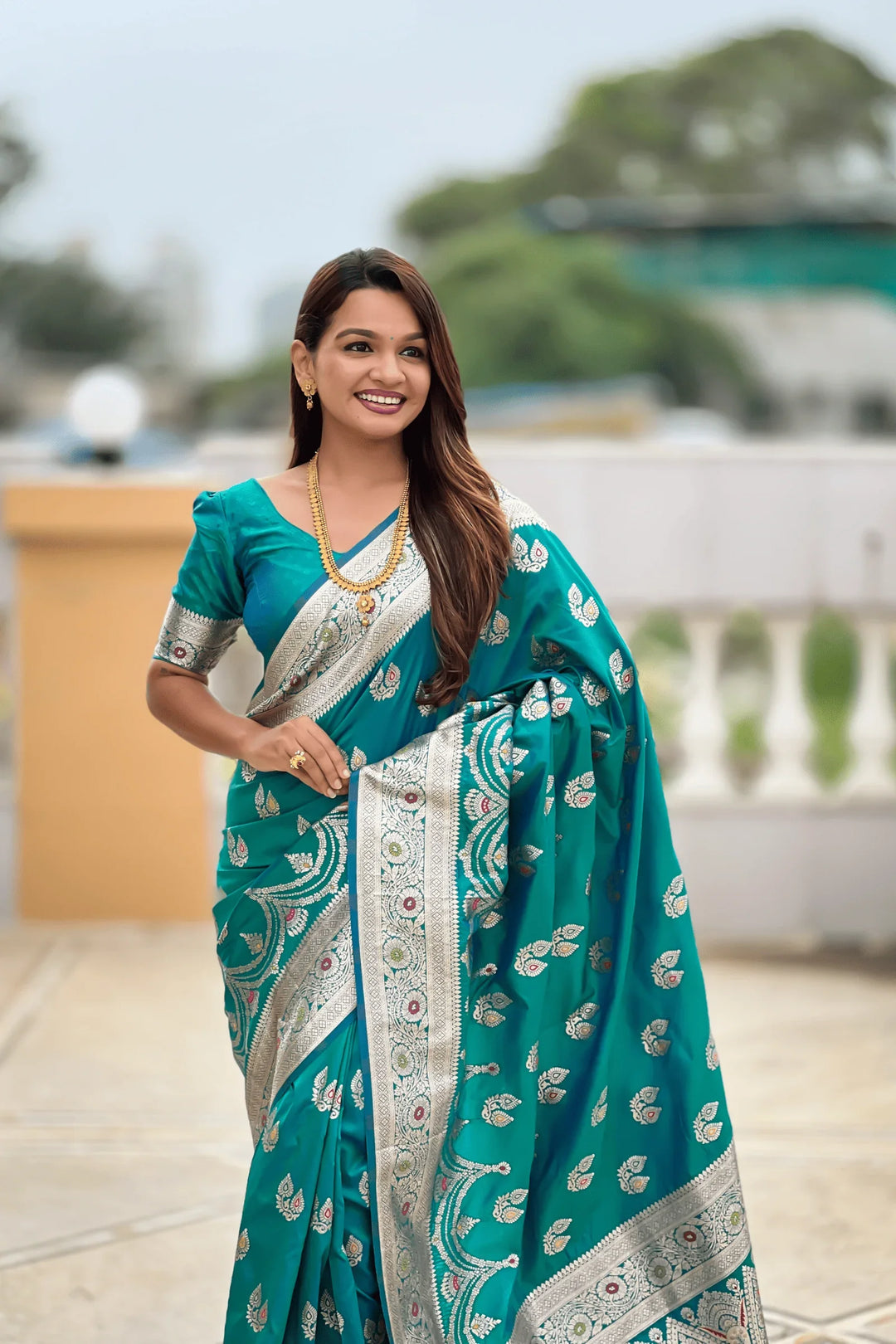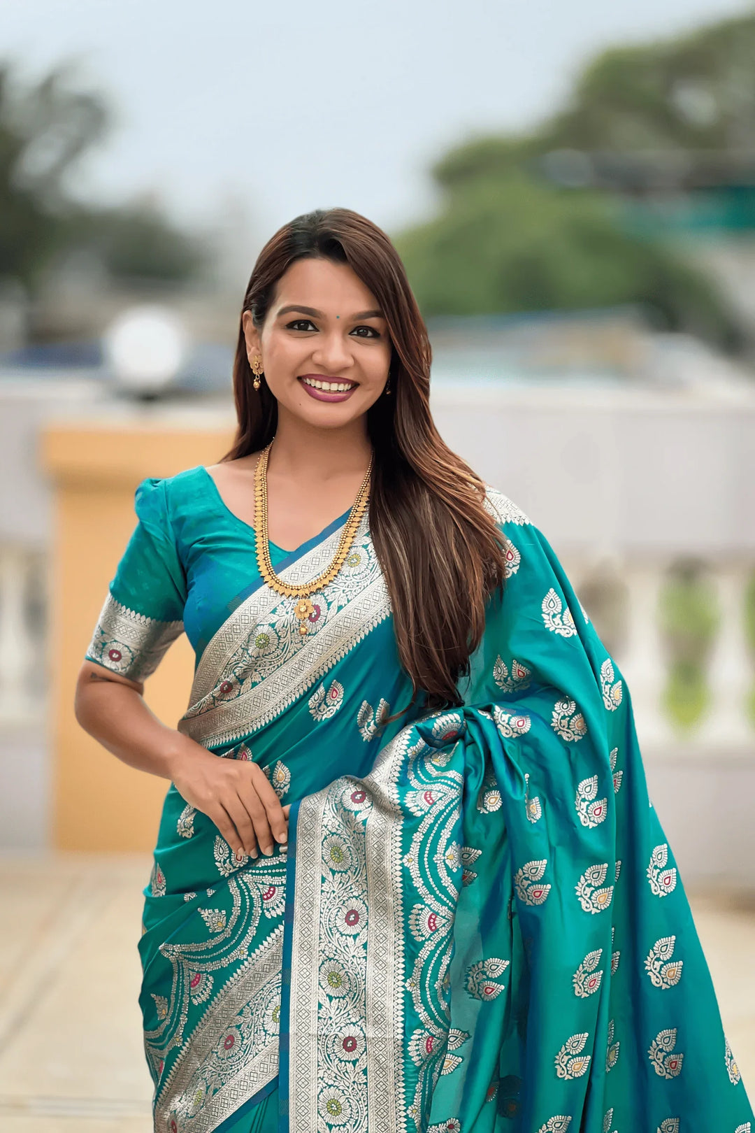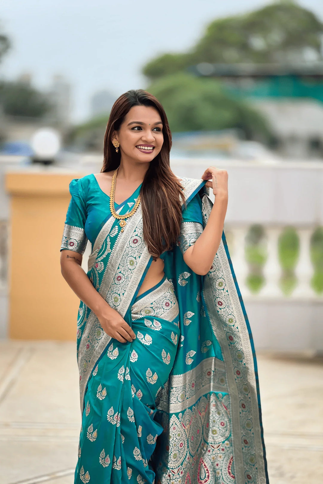 Banarasi Luxe | Ready to Wear Teal Banarasi Silk Saree