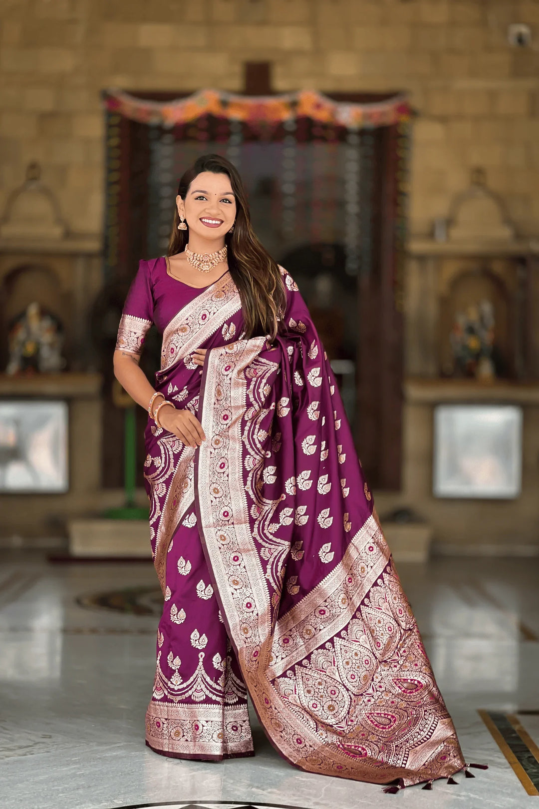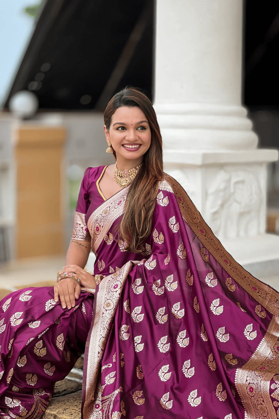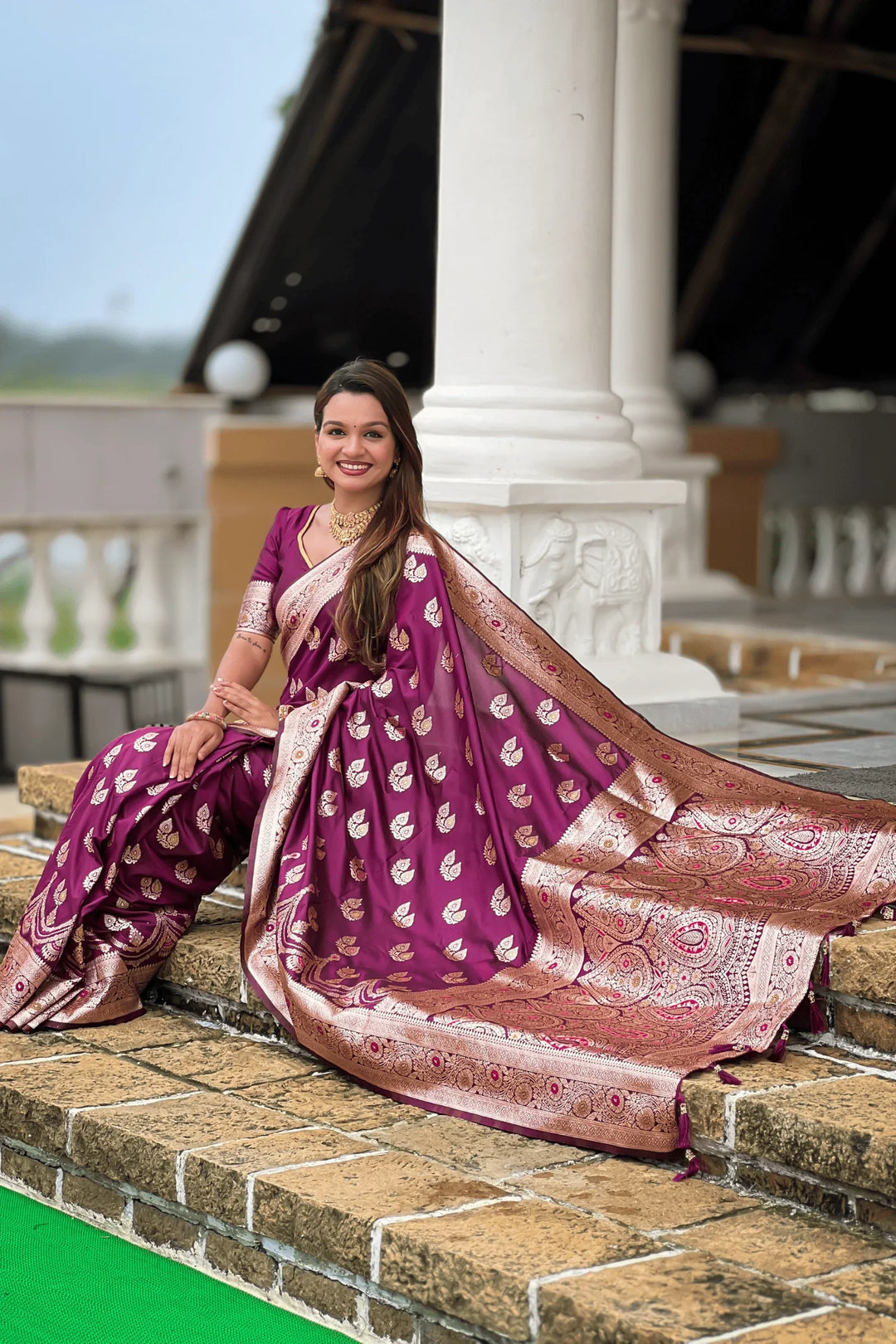 Banarasi Luxe | Ready to Wear Wine Banarasi Silk Saree