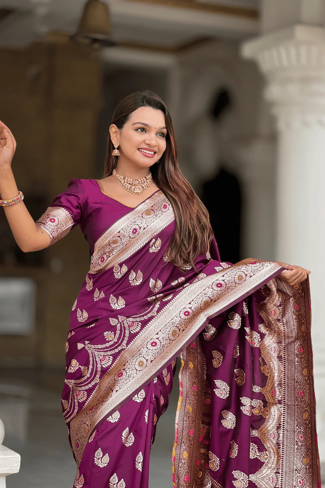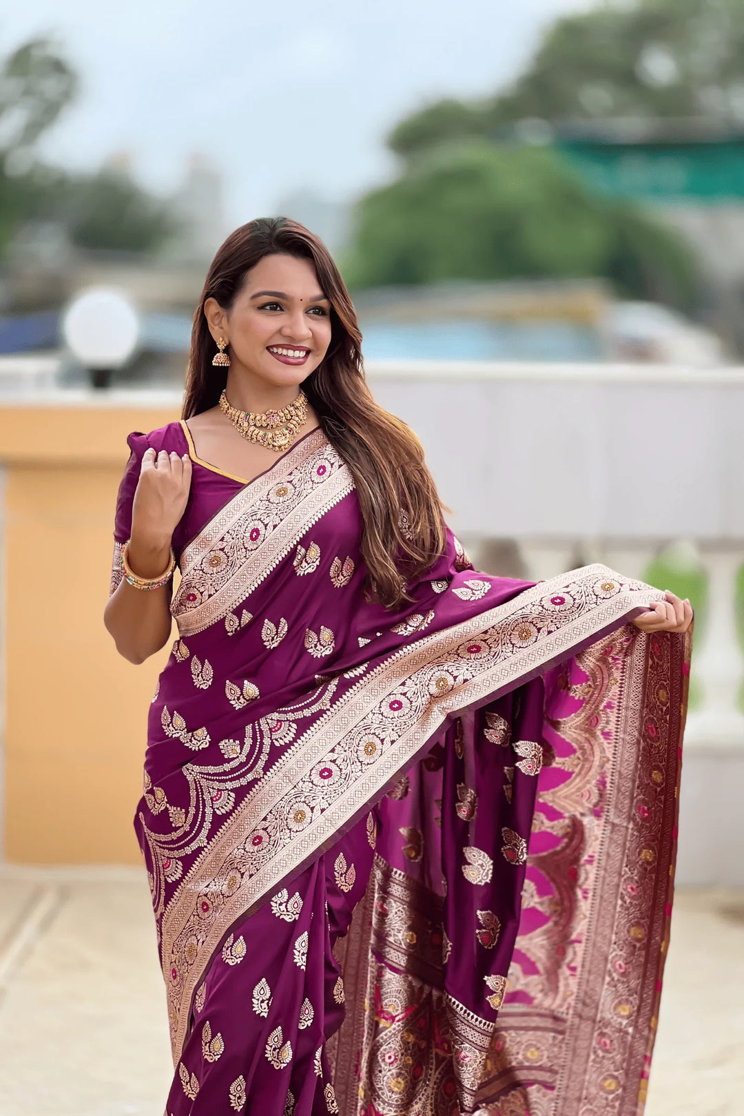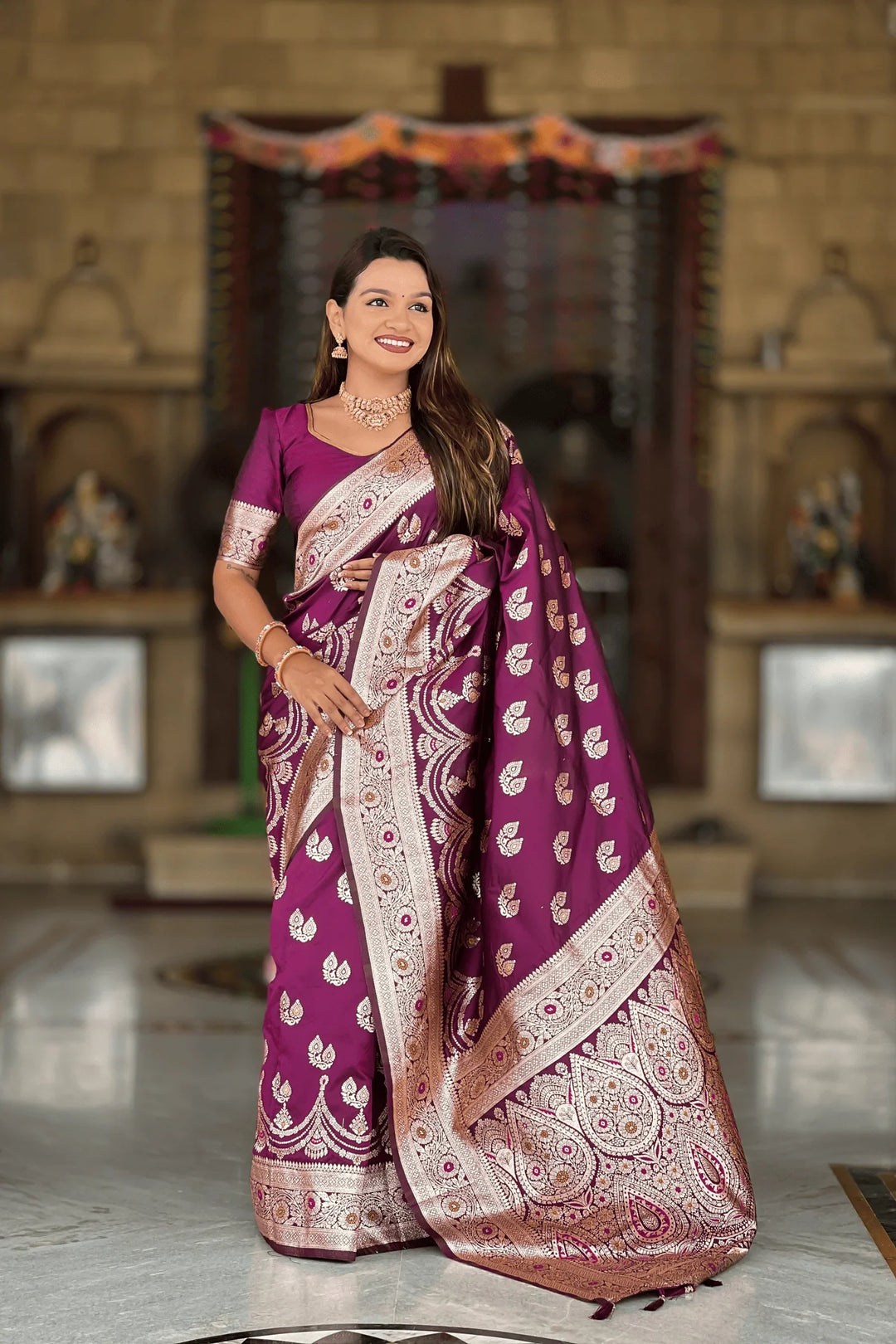 Banarasi Luxe | Ready to Wear Wine Banarasi Silk Saree