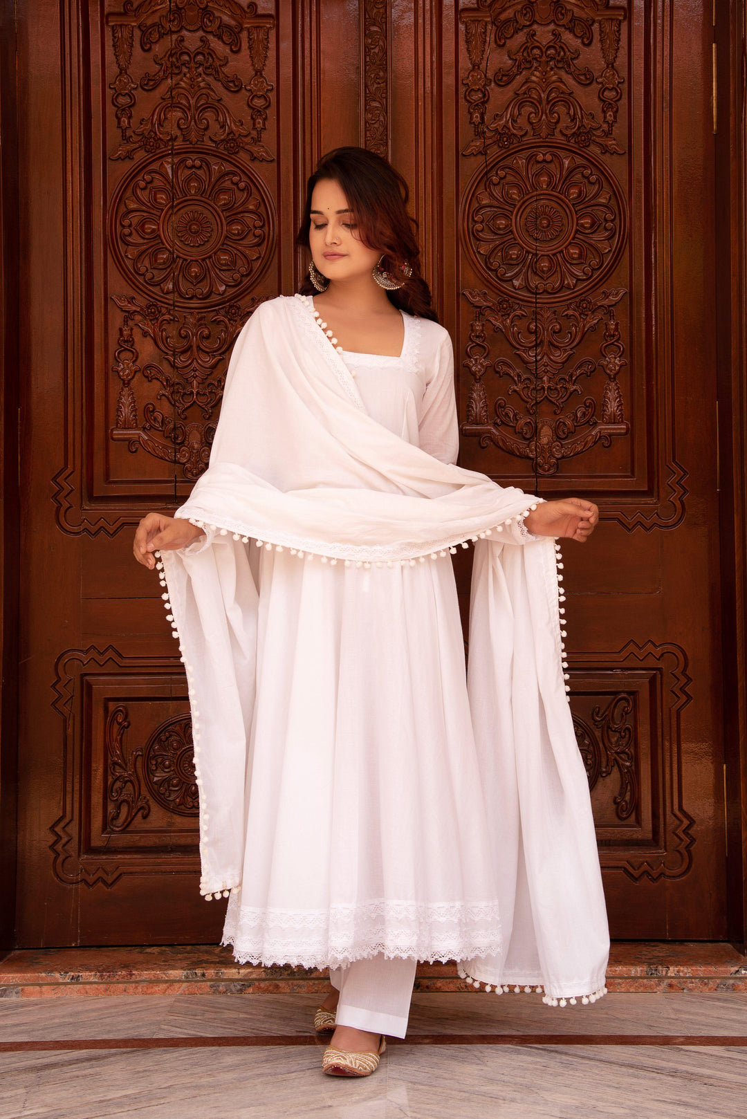 Blush N White Embroidery Pure Cotton Suit Set