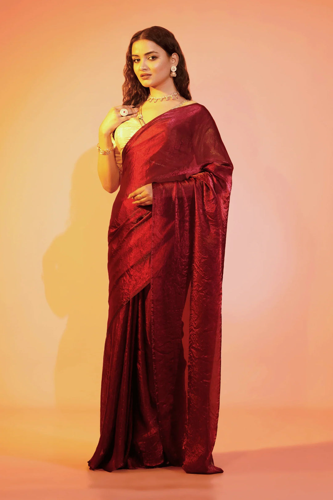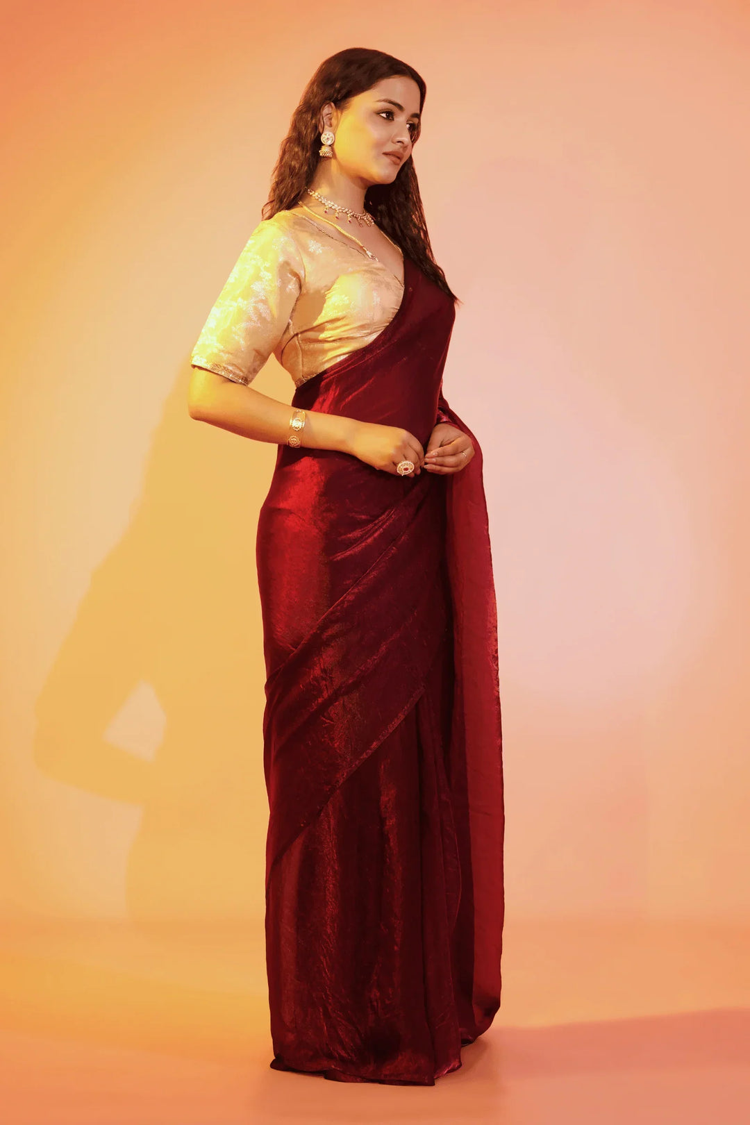 Bold in Burgundy | Ready to Wear Maroon mercury Saree