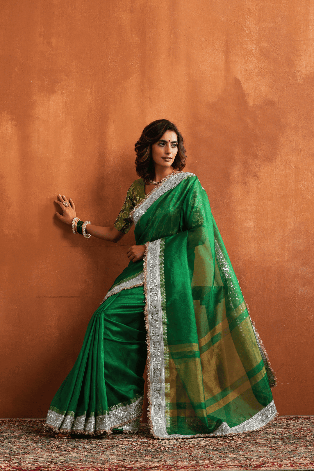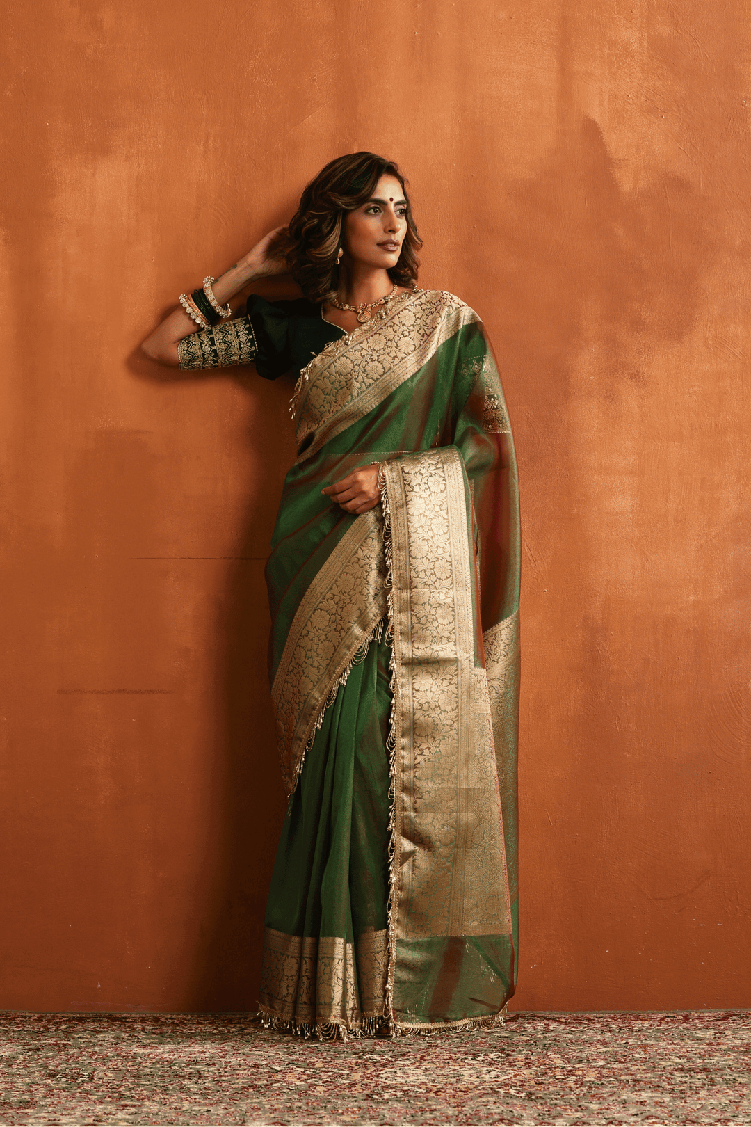 Length:- 5.5 meters & 0.8 Unstitched self fabric Blouse to style the blouse as you please!