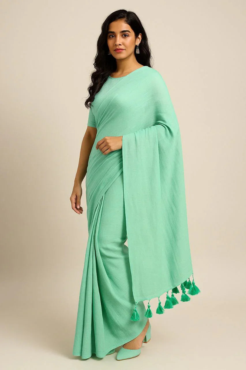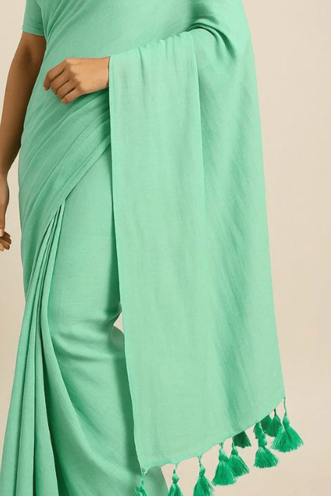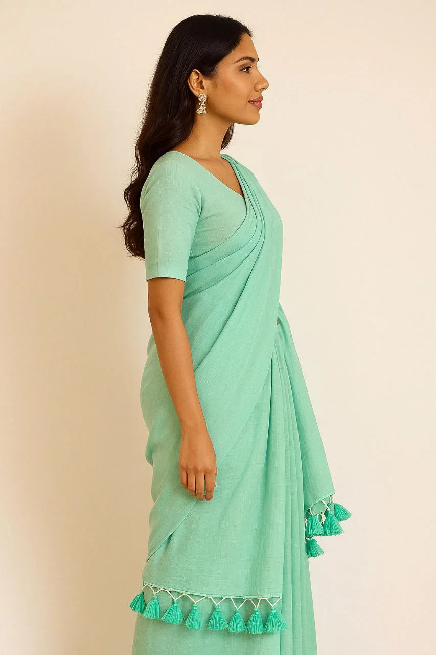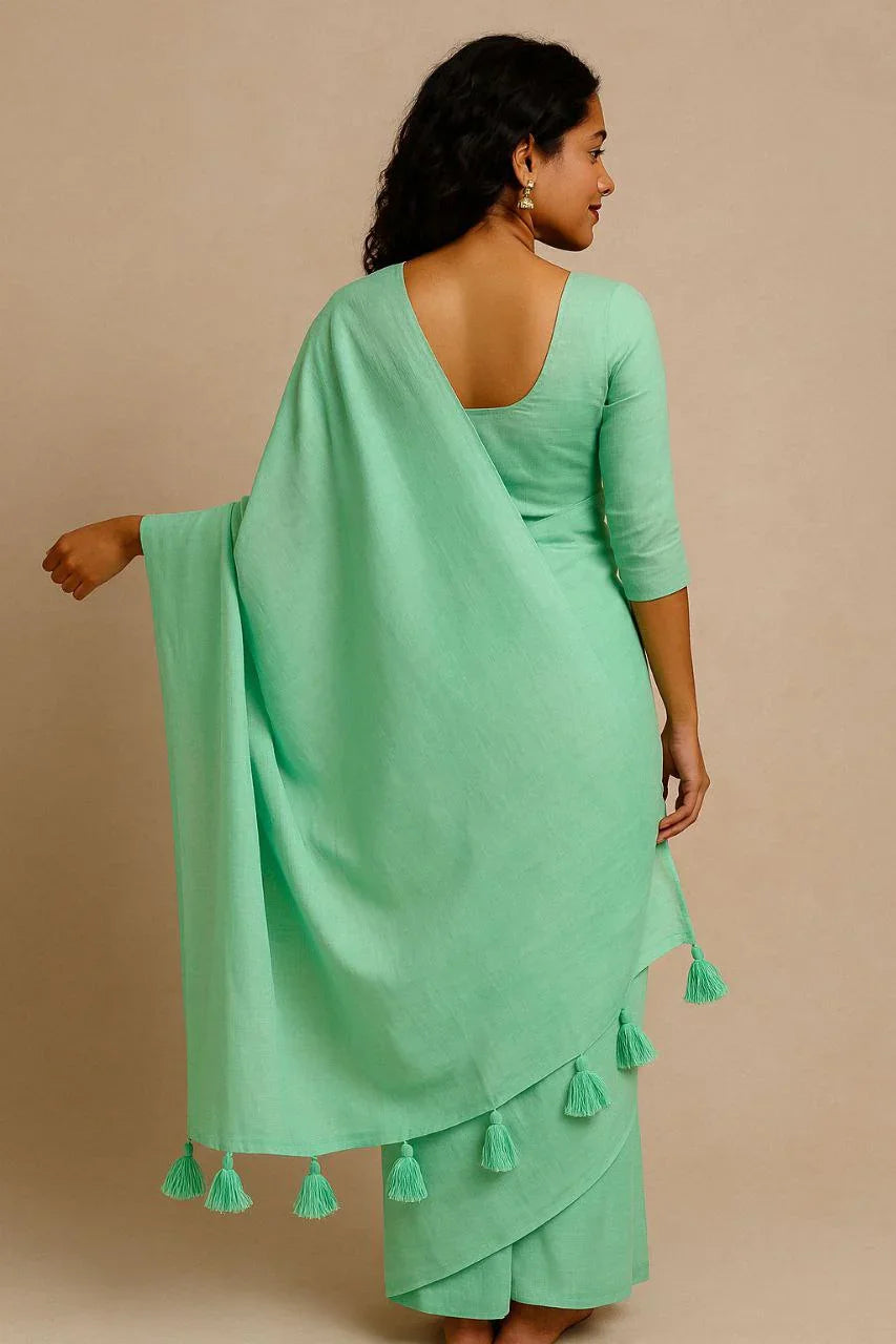 Breezy Blush | Ready to Wear Sea Green Mul Cotton Saree