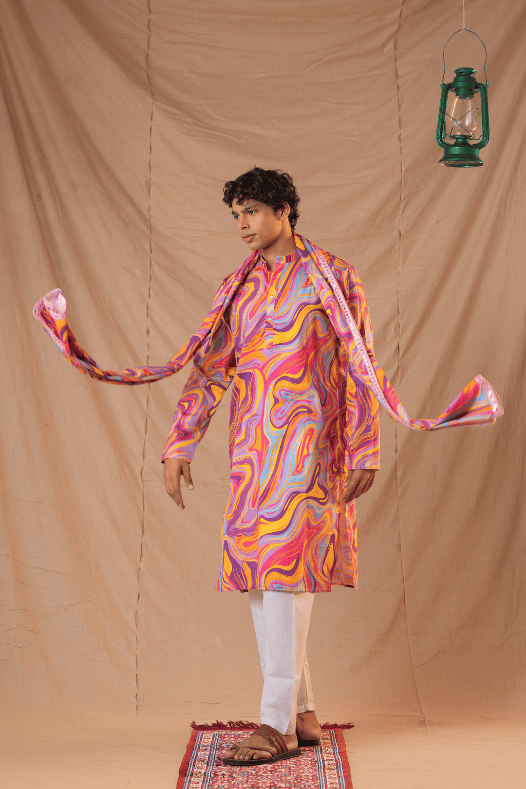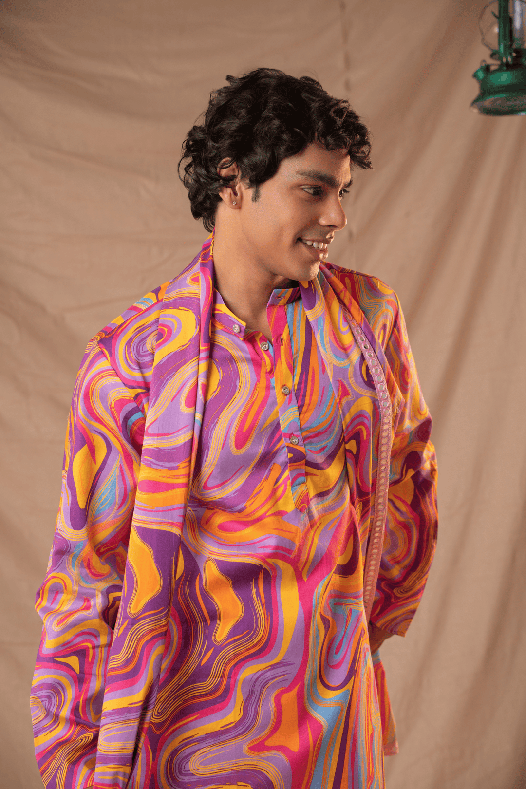 Step into artistic elegance with the Pink Mosaic Giza Men's Kurta by Glamwiz. Crafted from luxurious Giza cotton, this kurta set features a striking mosaic-inspired print in vibrant shades of pink, white, and subtle accents. Its bold yet graceful design makes it the perfect choice for weddings, festive soirées, and cultural gatherings.