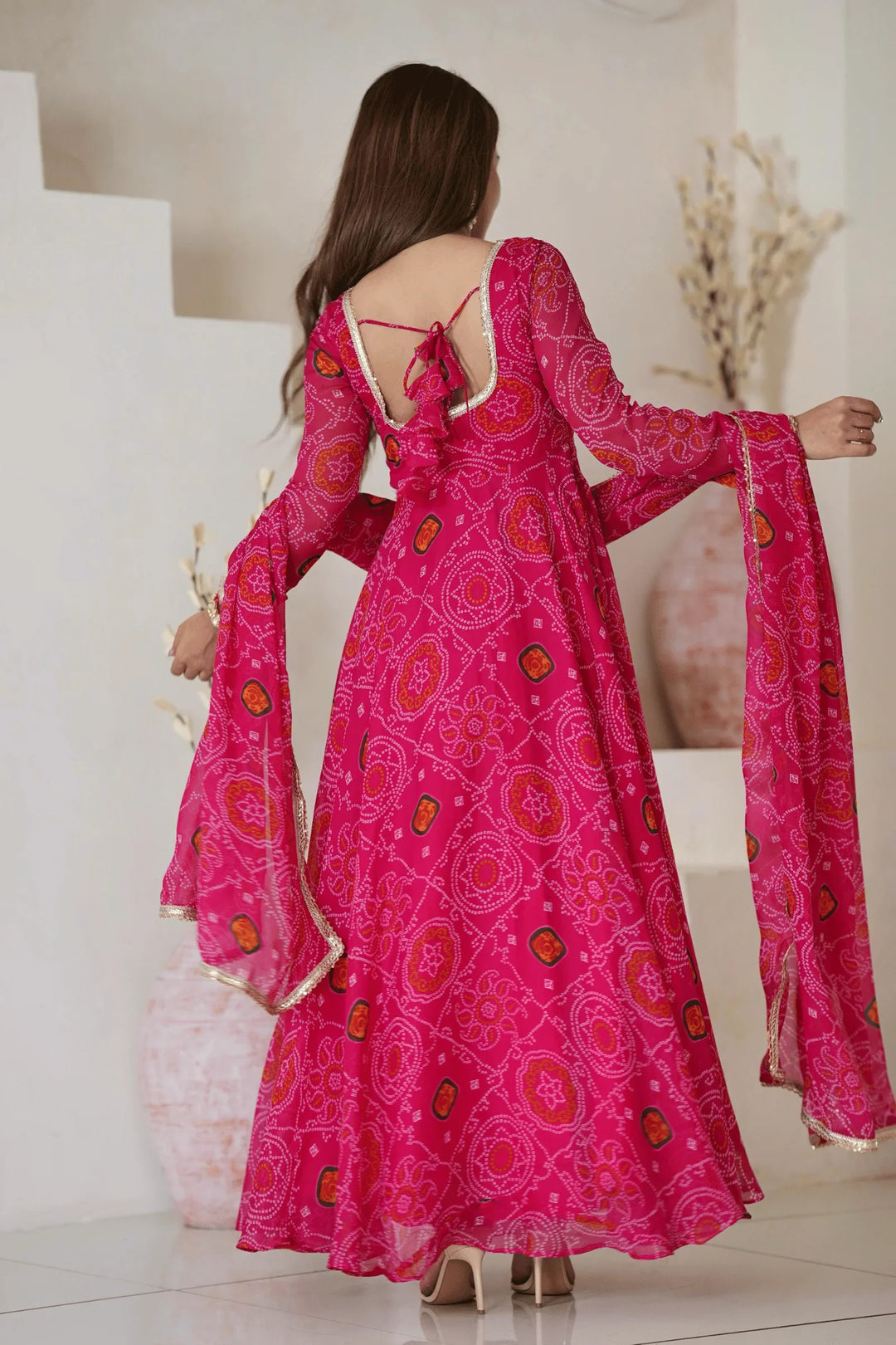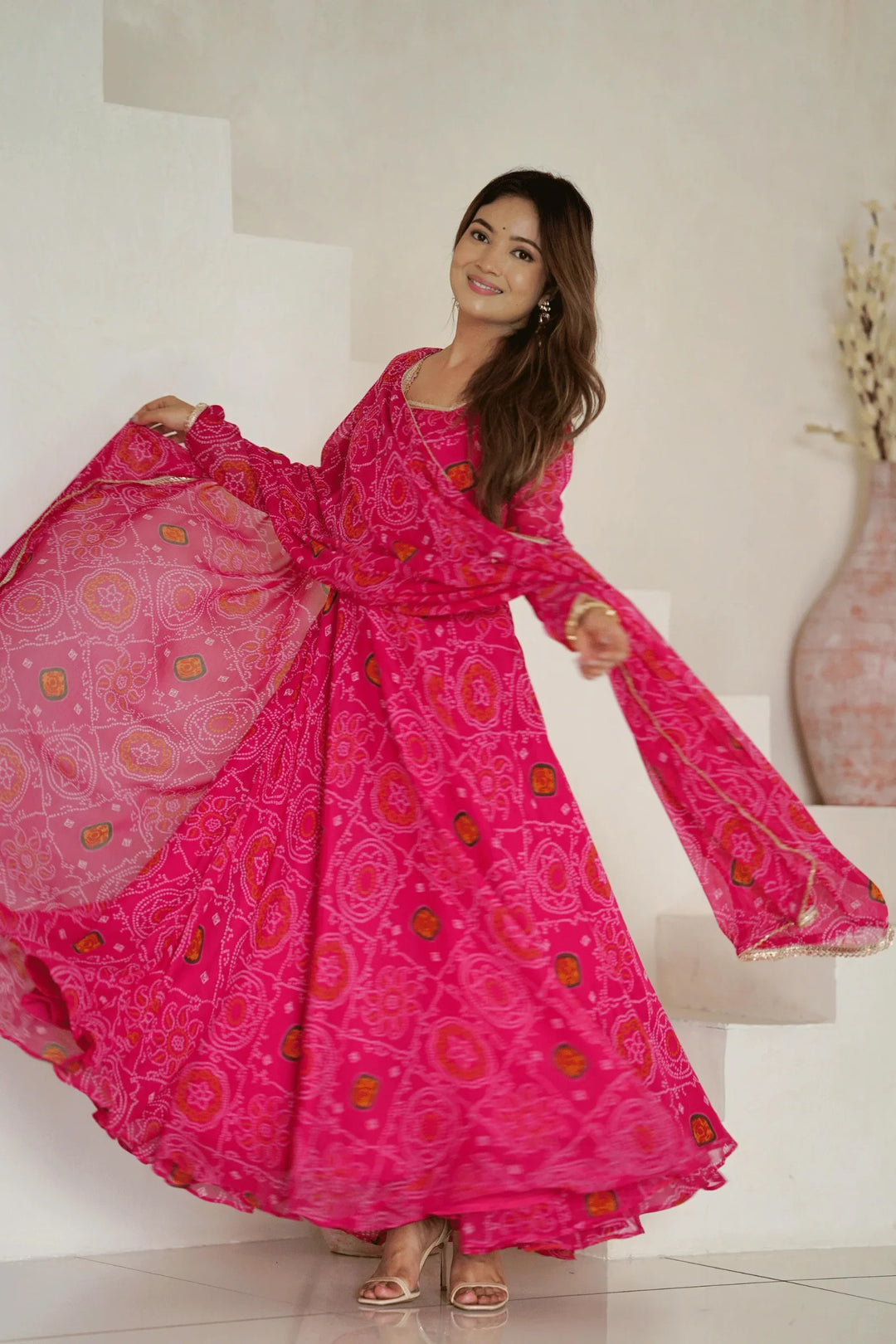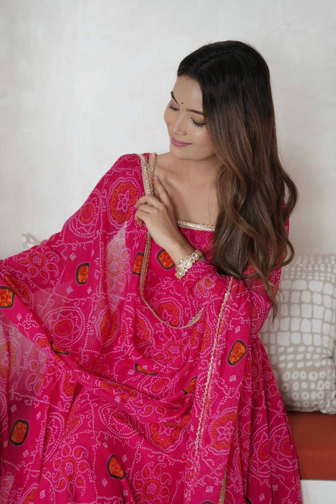 Pink Jaipuri Bandhej Printed Anarkali Suit