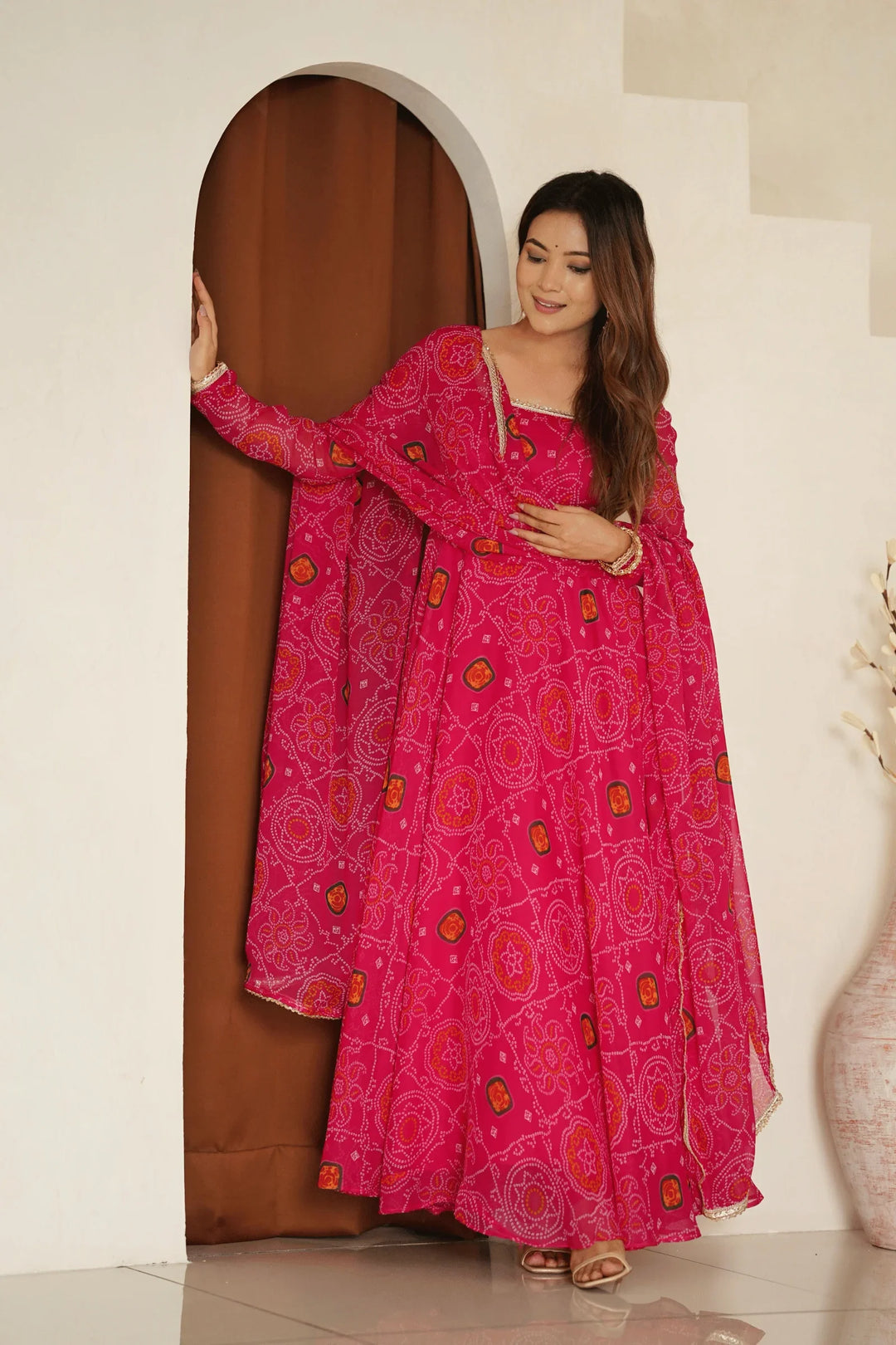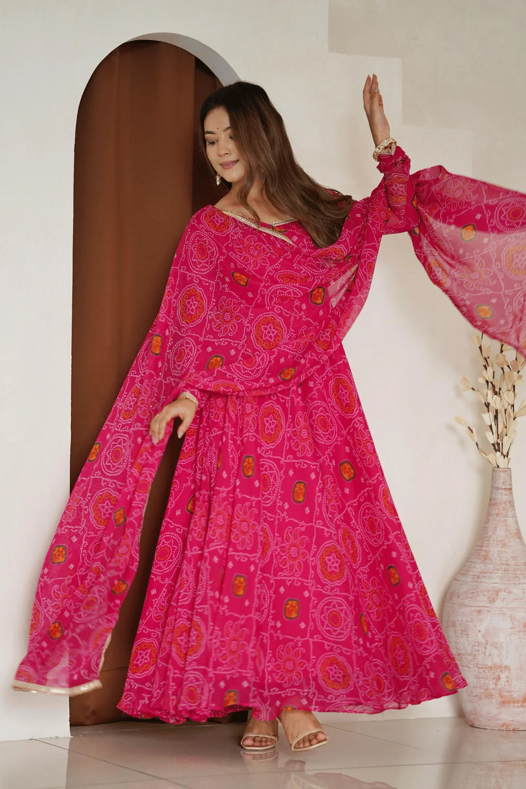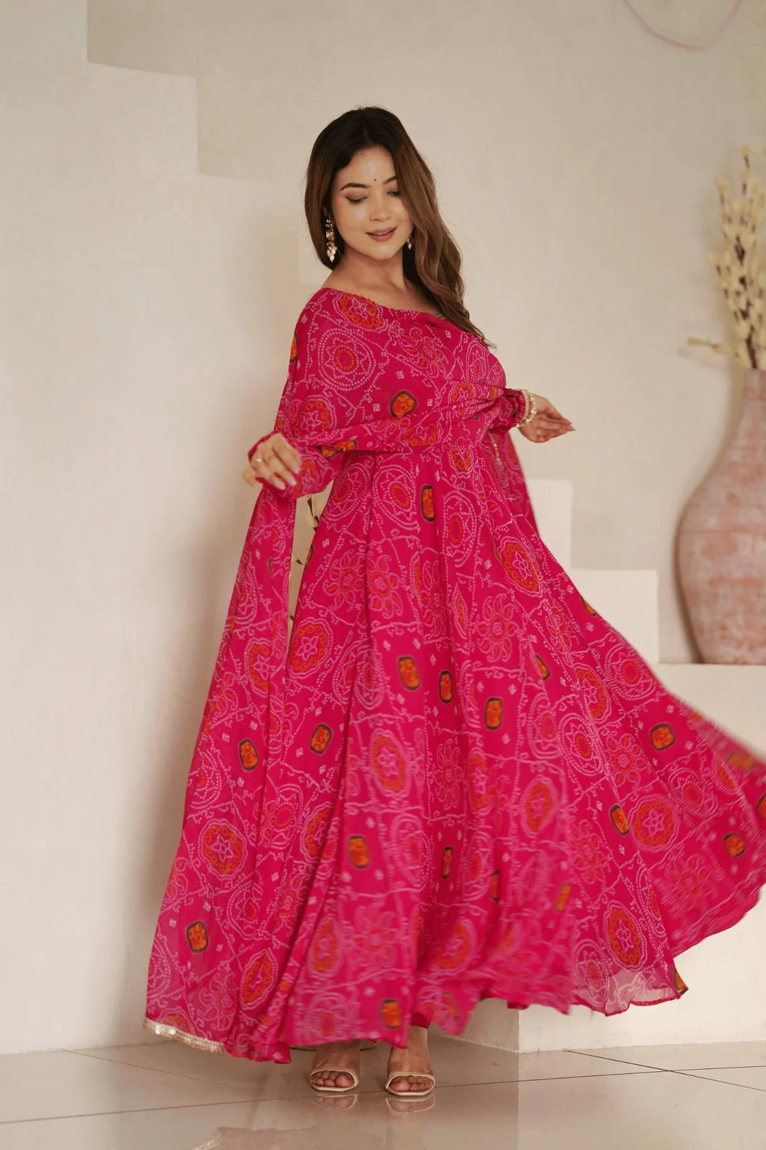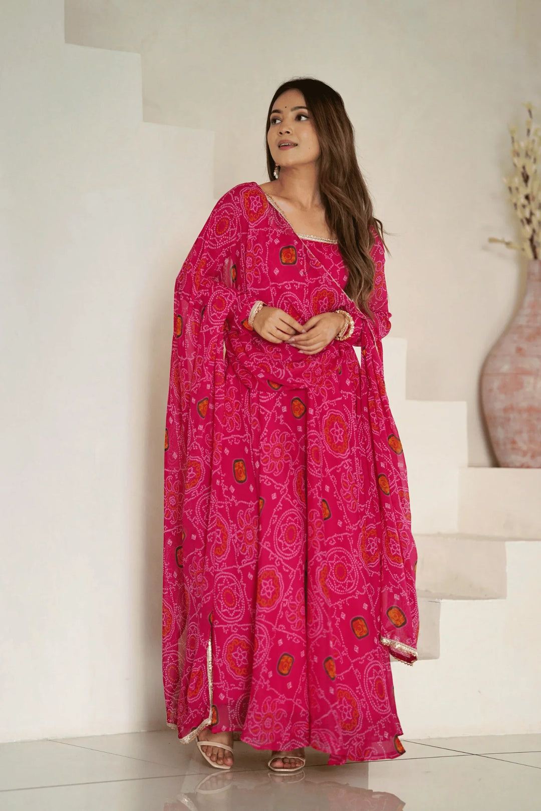 Pink Jaipuri Bandhej Printed Anarkali Suit