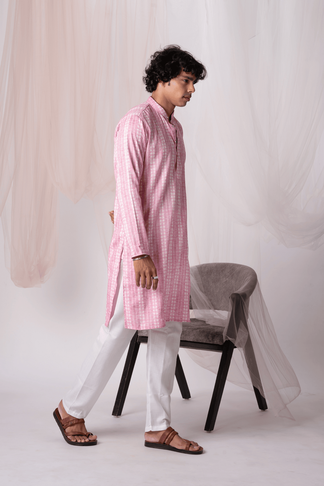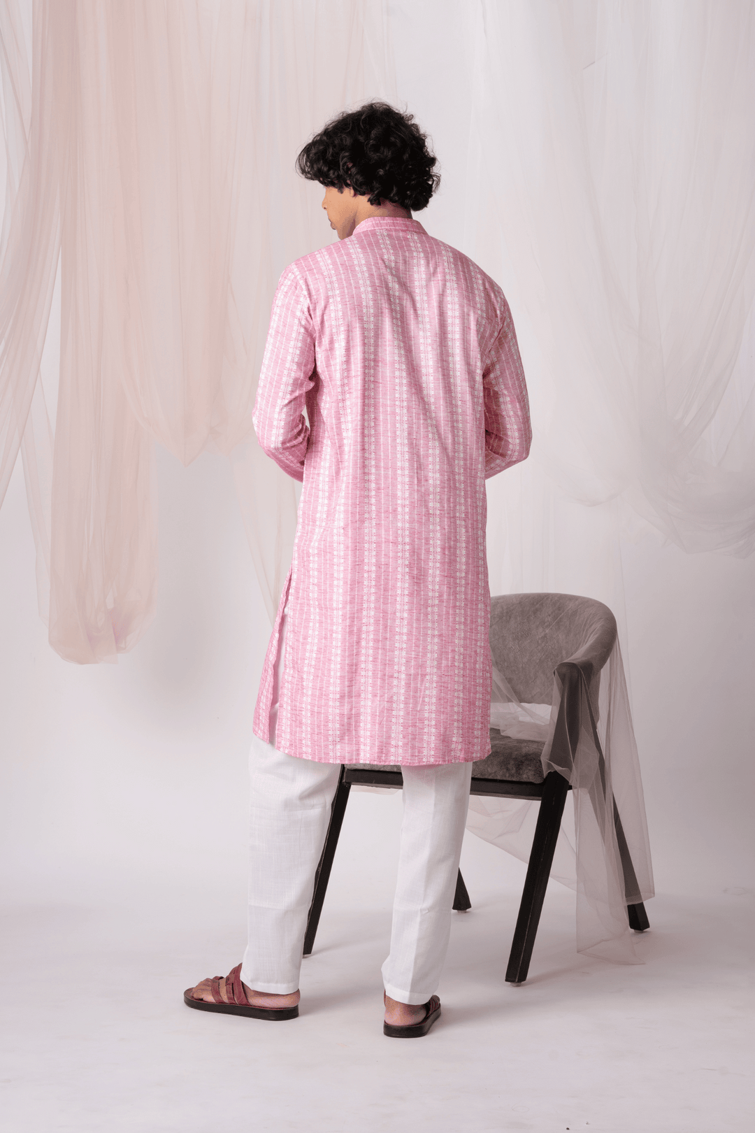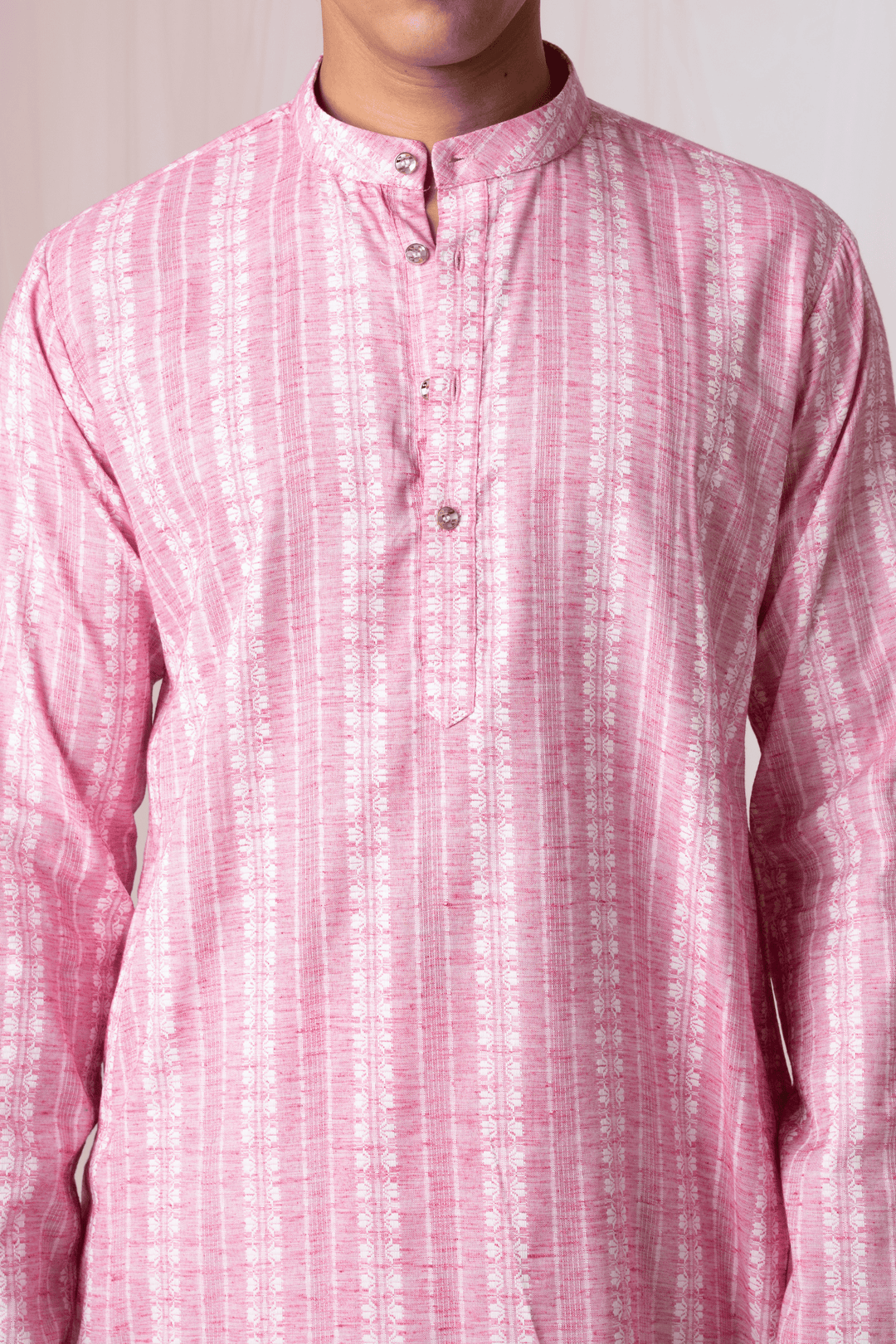 Stand out in vibrant style with the Pink Mirage Printed Men's by Glamwiz. Featuring a soft pink base with intricate printed patterns, this kurta set is designed for men who love a blend of tradition and modern flair. Its lightweight fabric and eye-catching design make it perfect for daytime weddings, festive pujas, and cultural celebrations.
