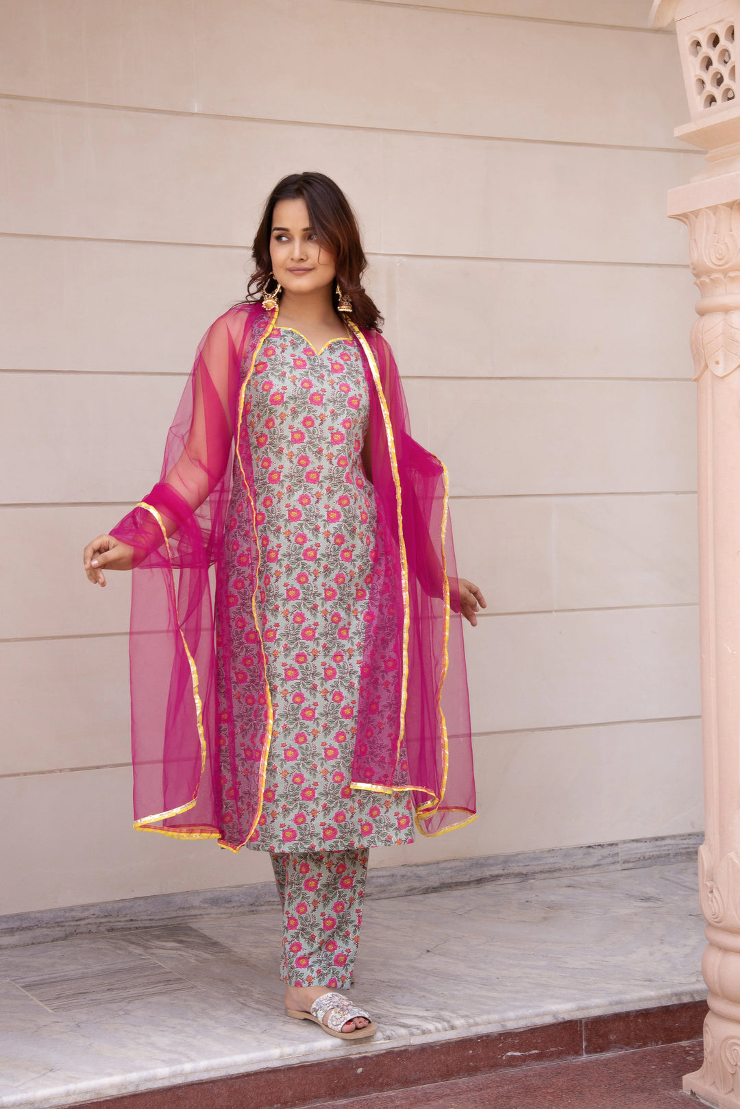 In the Package: 1-Kurta,1-Pants,1-Dupatta