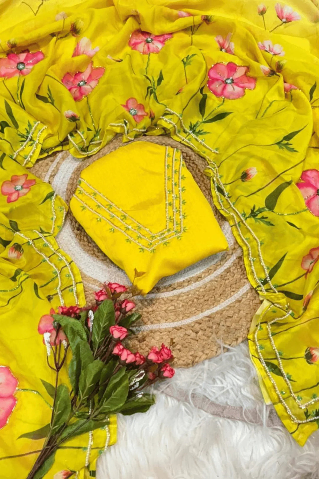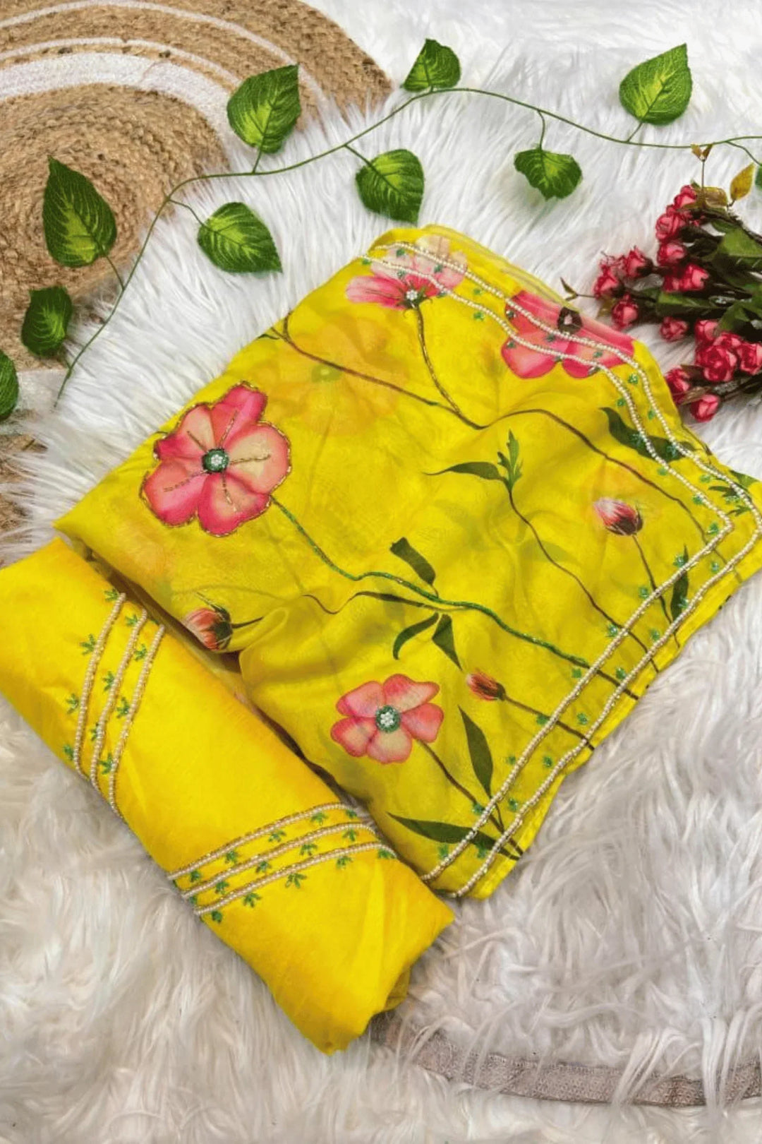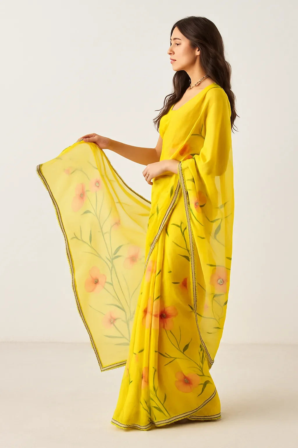 Poppy Sorbet | Ready-to-Wear Yellow Floral Organza Saree