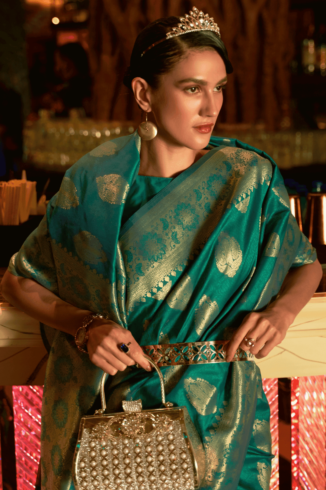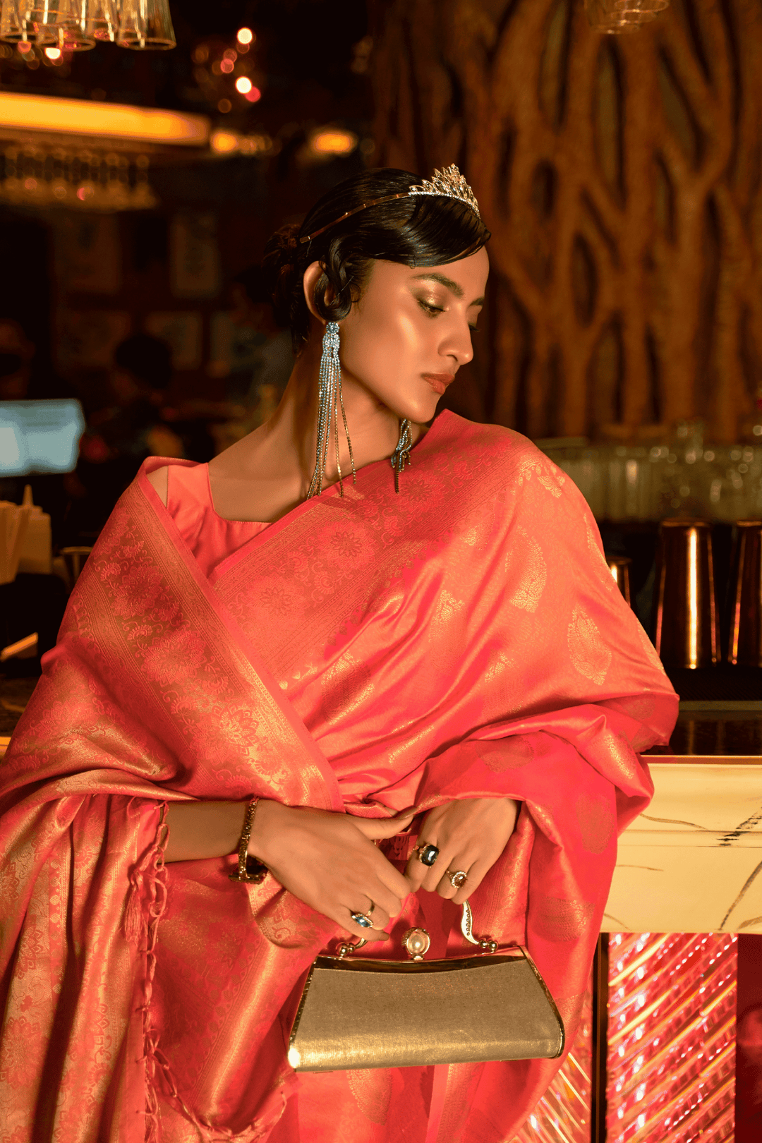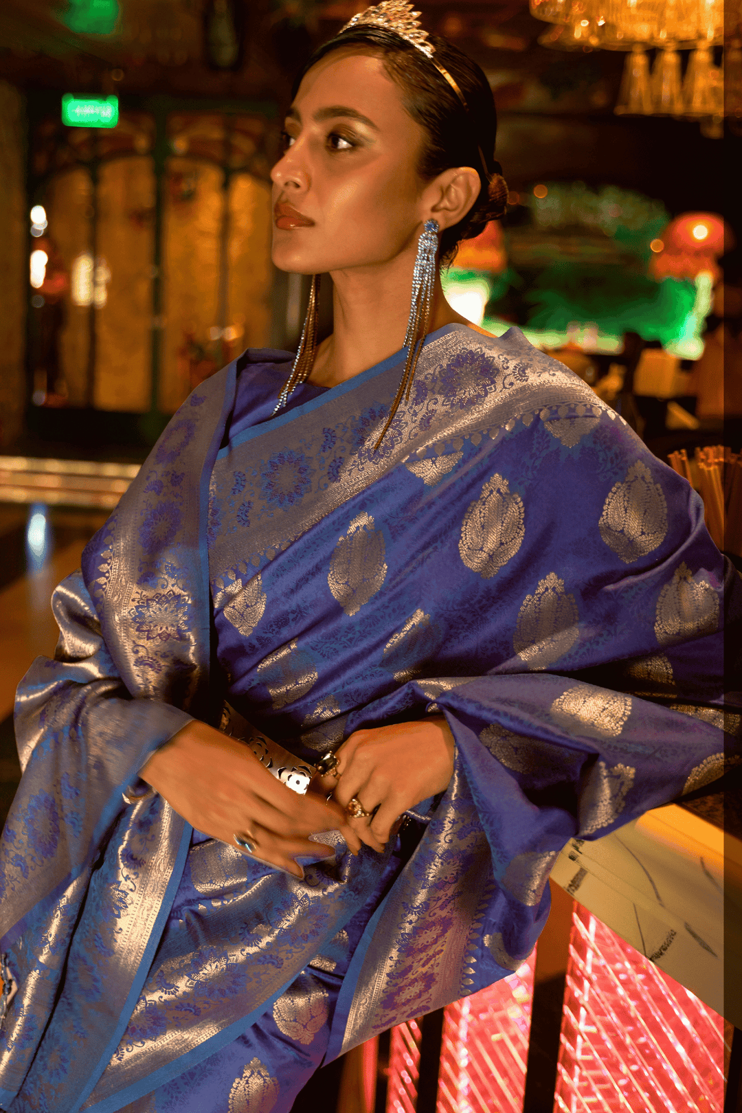 Colors as shown in the image may or may not vary slightly due to photographic effects or light reflection on fabrics like silk & satin.