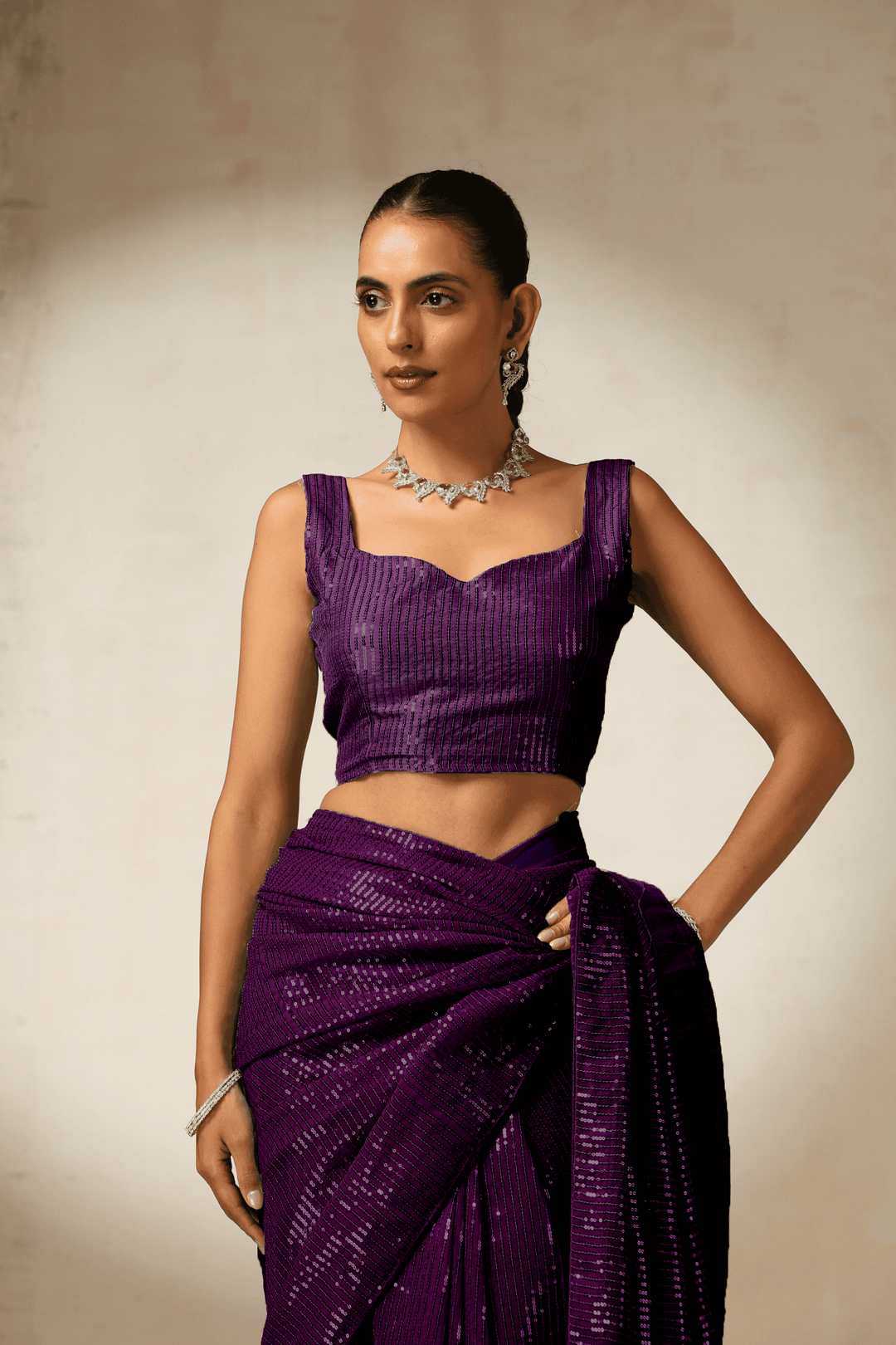 Description:- A Wine sequins Embellished Blouse. This sequins blouse is ideal for party wear and wedding sarees. The blouse is padded so you never have to worry about matching the right innerwear!