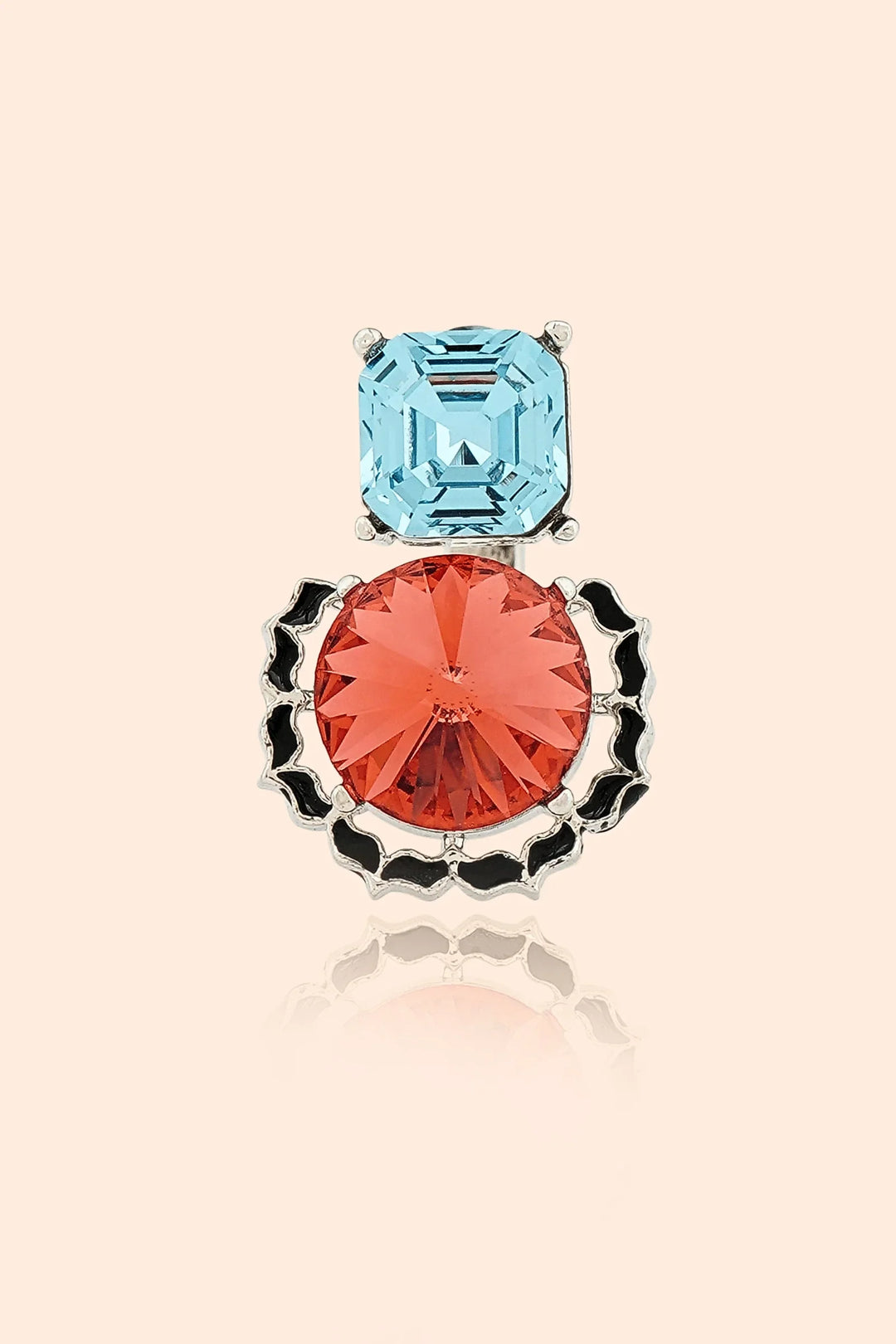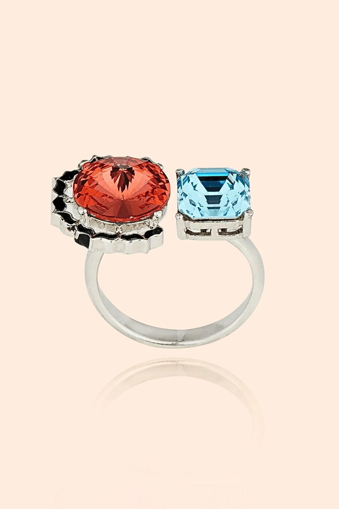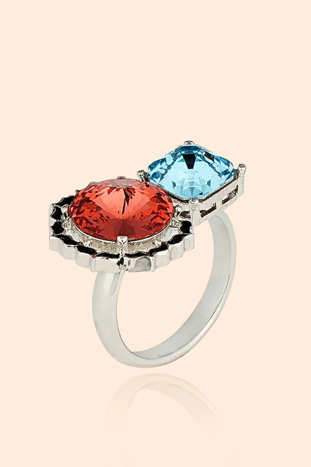 Step into the grandeur of royalty with the Queen Isabella’s Legacy Ring, a stunning tribute to regal elegance and timeless sophistication. This exquisite piece features a striking contrast of fiery red and serene blue gemstones, representing passion and wisdom, a perfect balance of power and grace. . Set in high-shine silver with bold detailing, this statement cocktail ring is an embodiment of royalty, making it a must-have for special occasions, evening galas, and red-carpet moments.
