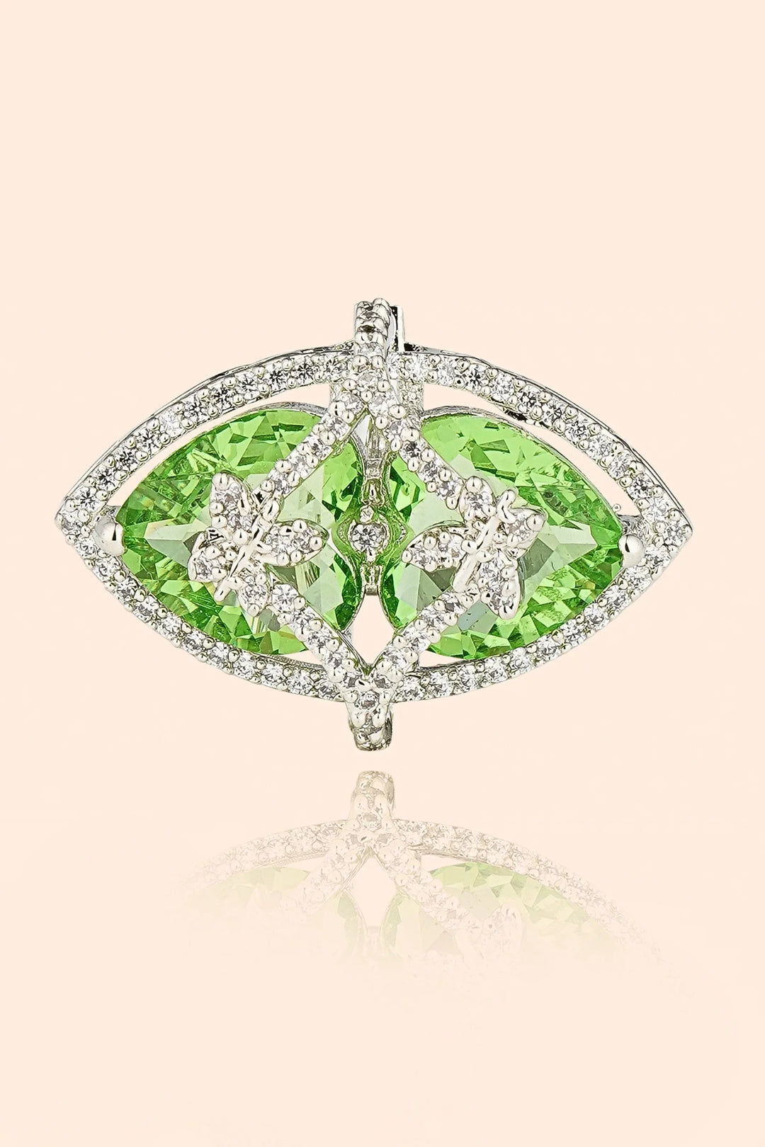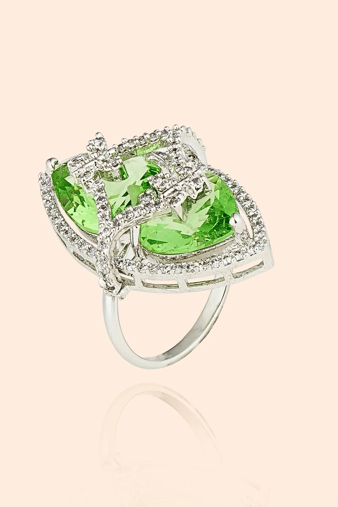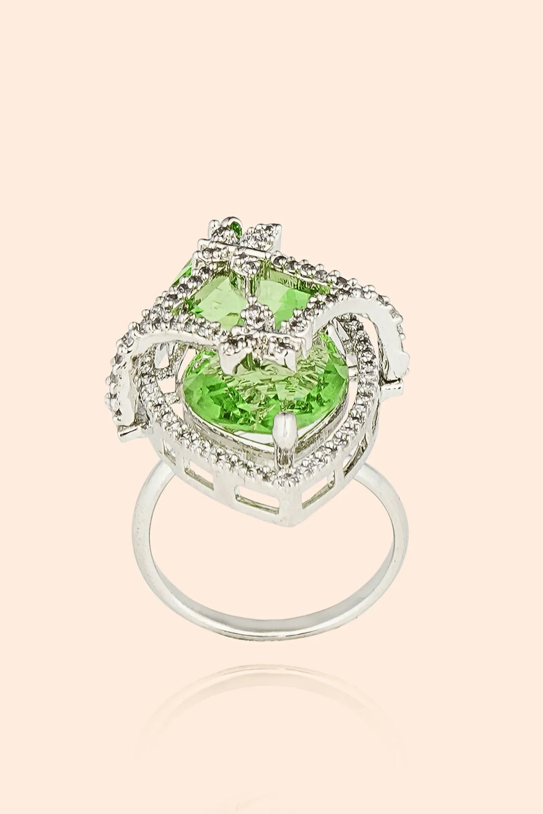 Inspired by the grandeur and timeless elegance of Queen Victoria, the Queen Victoria’s Green Cocktail Ring is a majestic statement piece that embodies royal sophistication. At its heart lies a striking emerald-green gemstone, symbolizing power, wealth, and luxury, set in a dazzling stone-studded halo that enhances its regal brilliance.