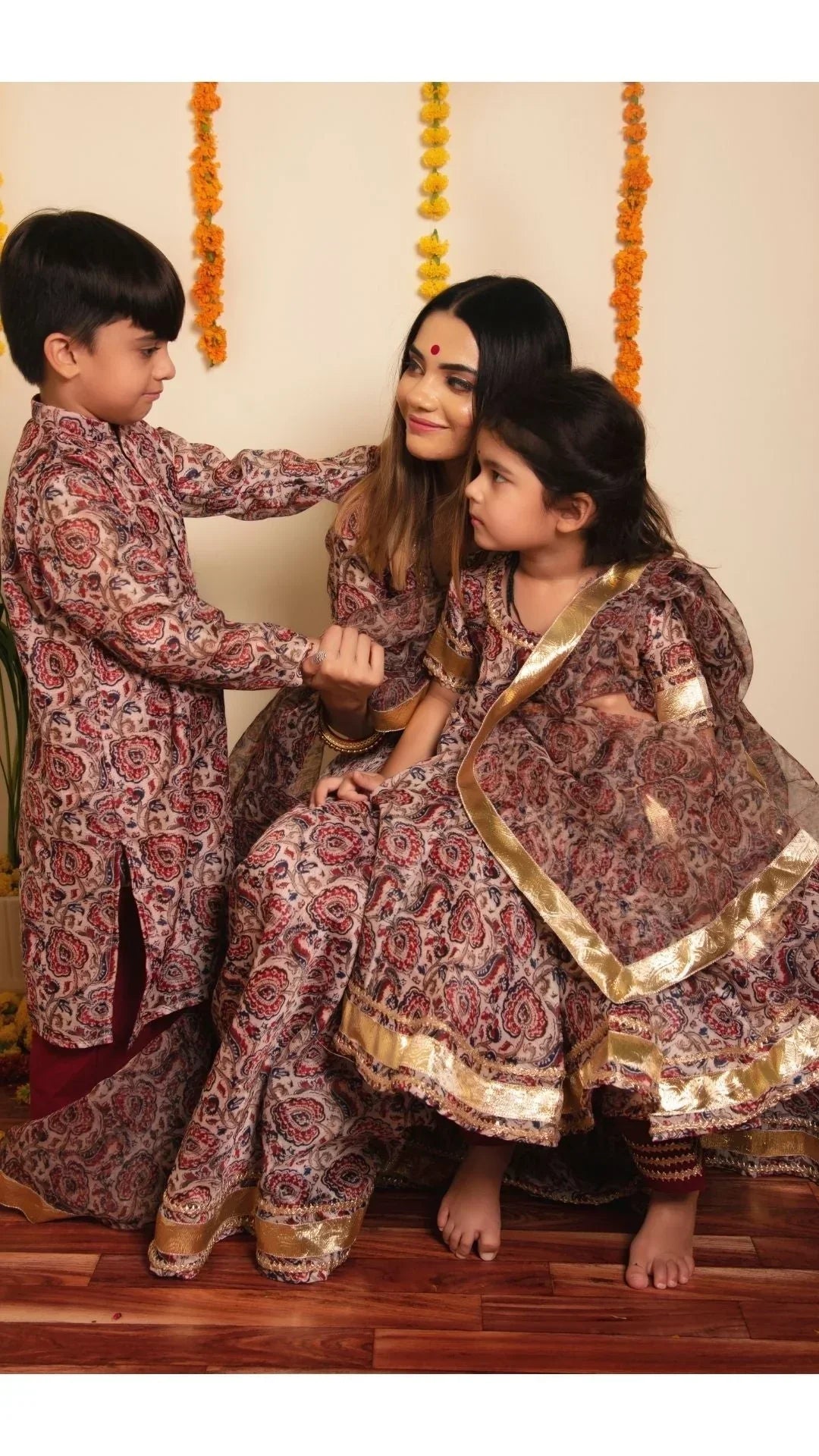 Bring color to every celebration with our Raangriti Printed Anarkali Set for girls. Crafted in soft, breathable fabric and adorned with playful traditional prints, this twirl-worthy outfit is perfect for festivals, school functions, and family gatherings. The flared silhouette, vibrant patterns, and comfortable fit make it a joyful pick in everyday festive ethnic wear for girls.