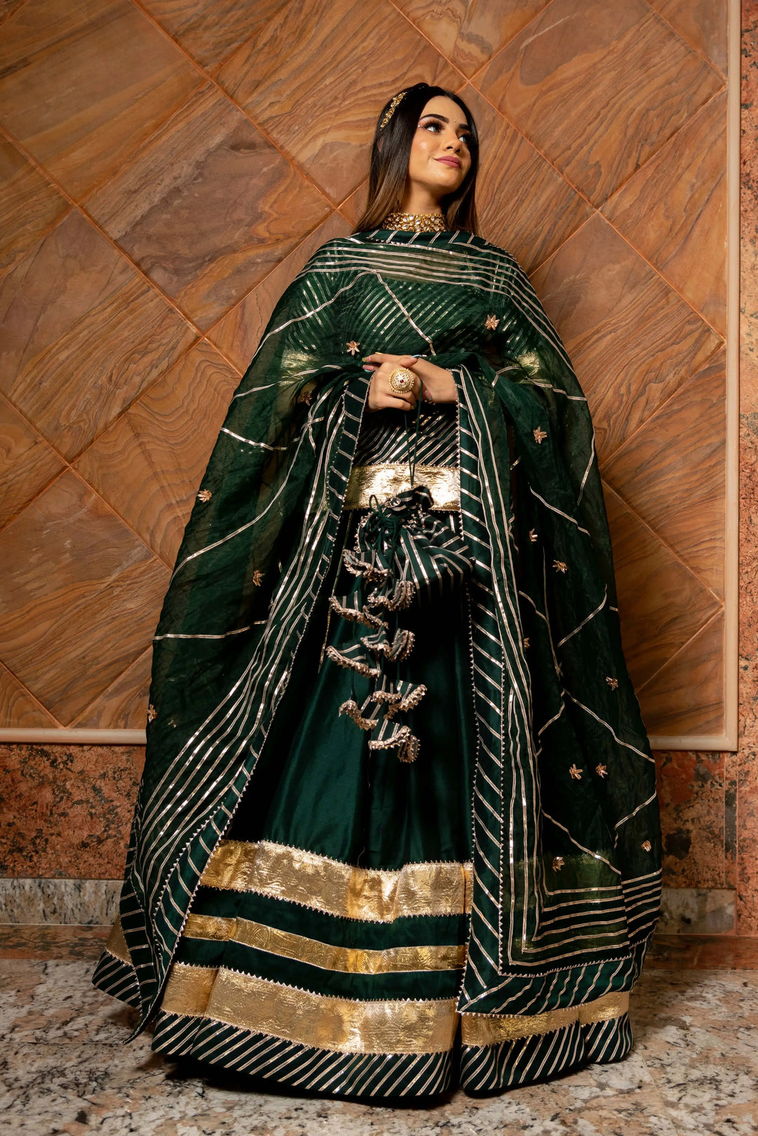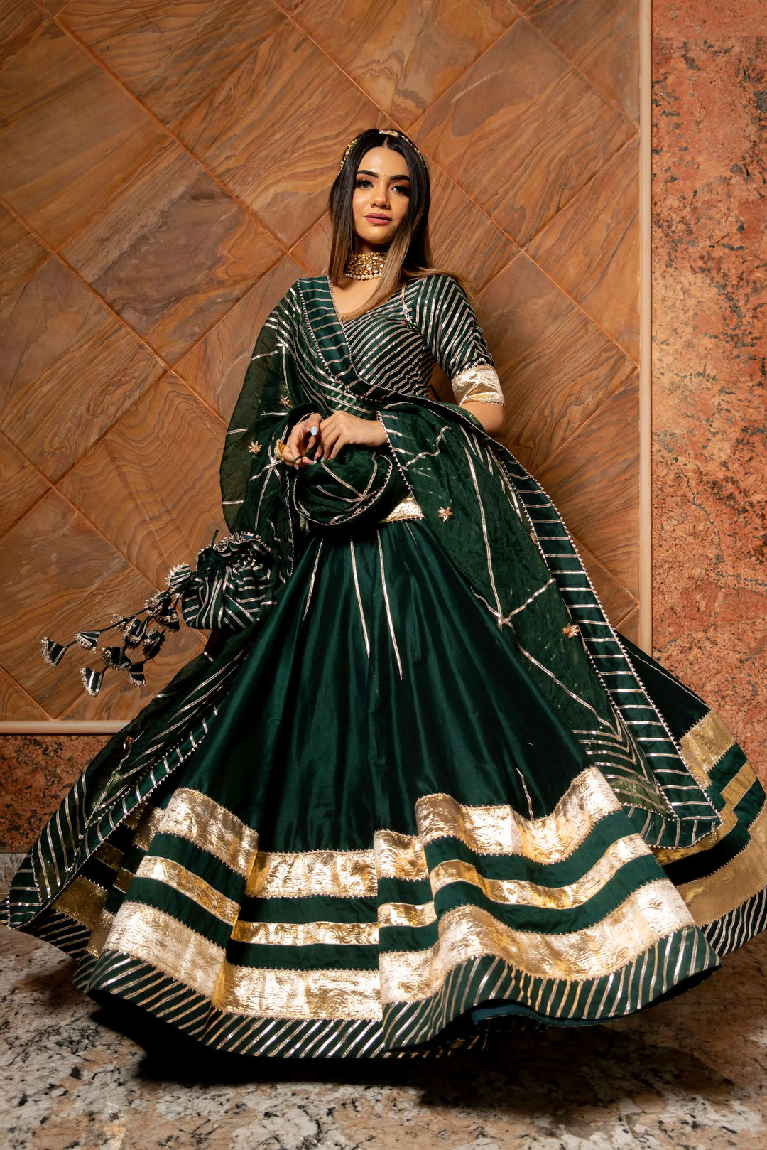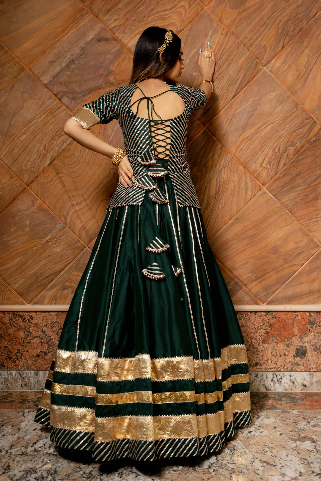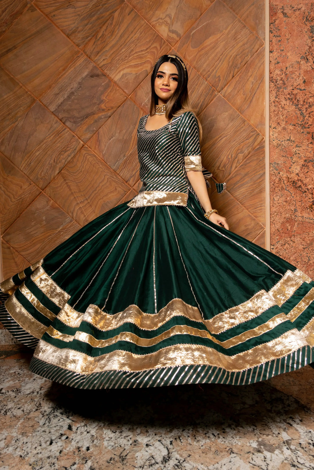 Rajwada Green- Pure Cotton Silk Handcrafted Lehenga Set