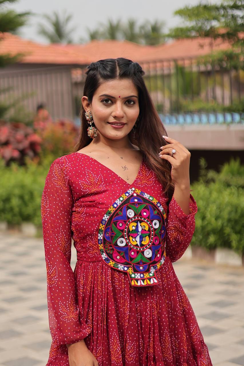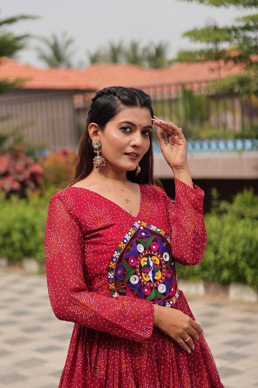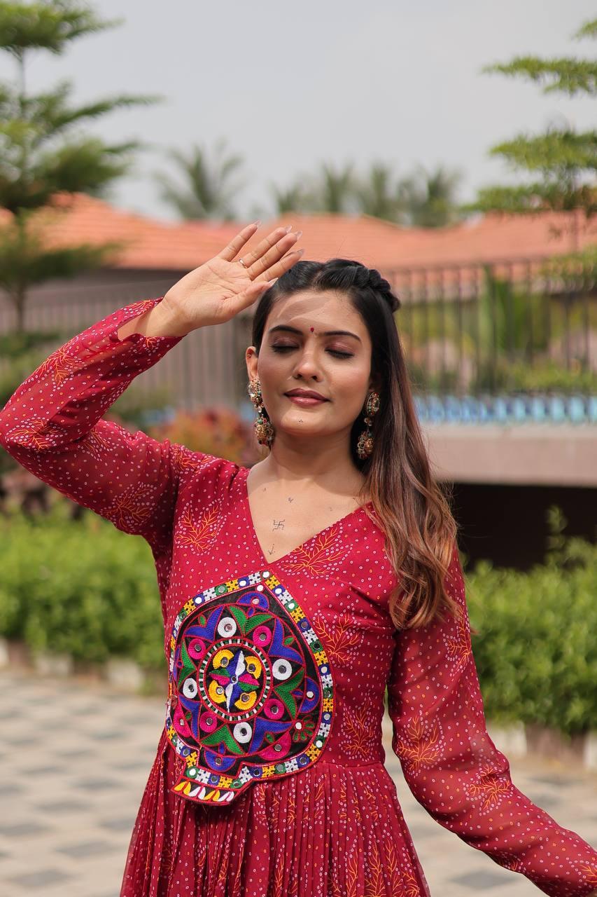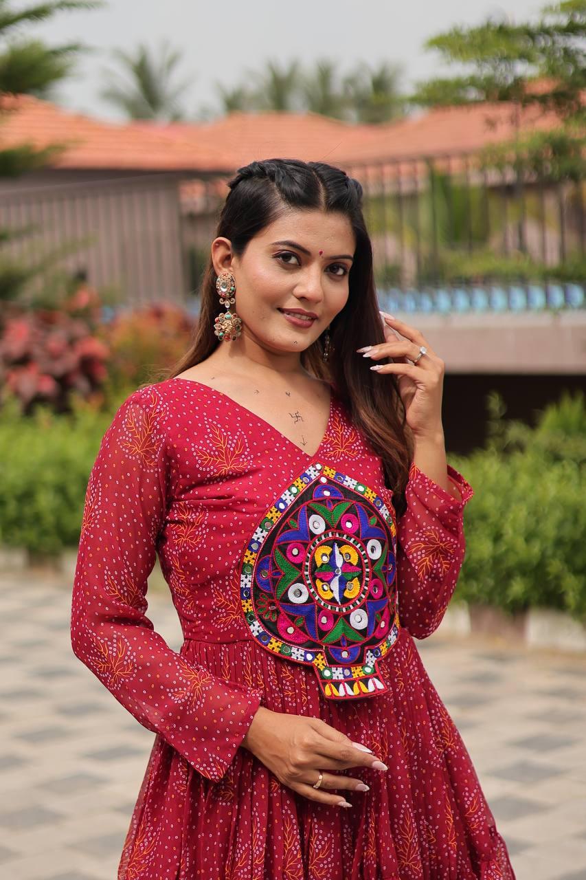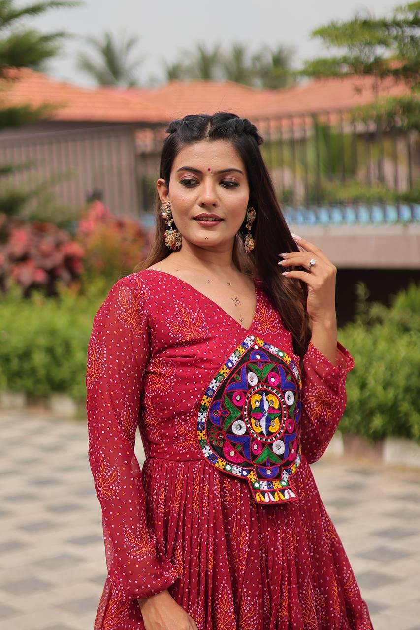 Rajwadi Bandhani | Embroidered Anarkali Gown