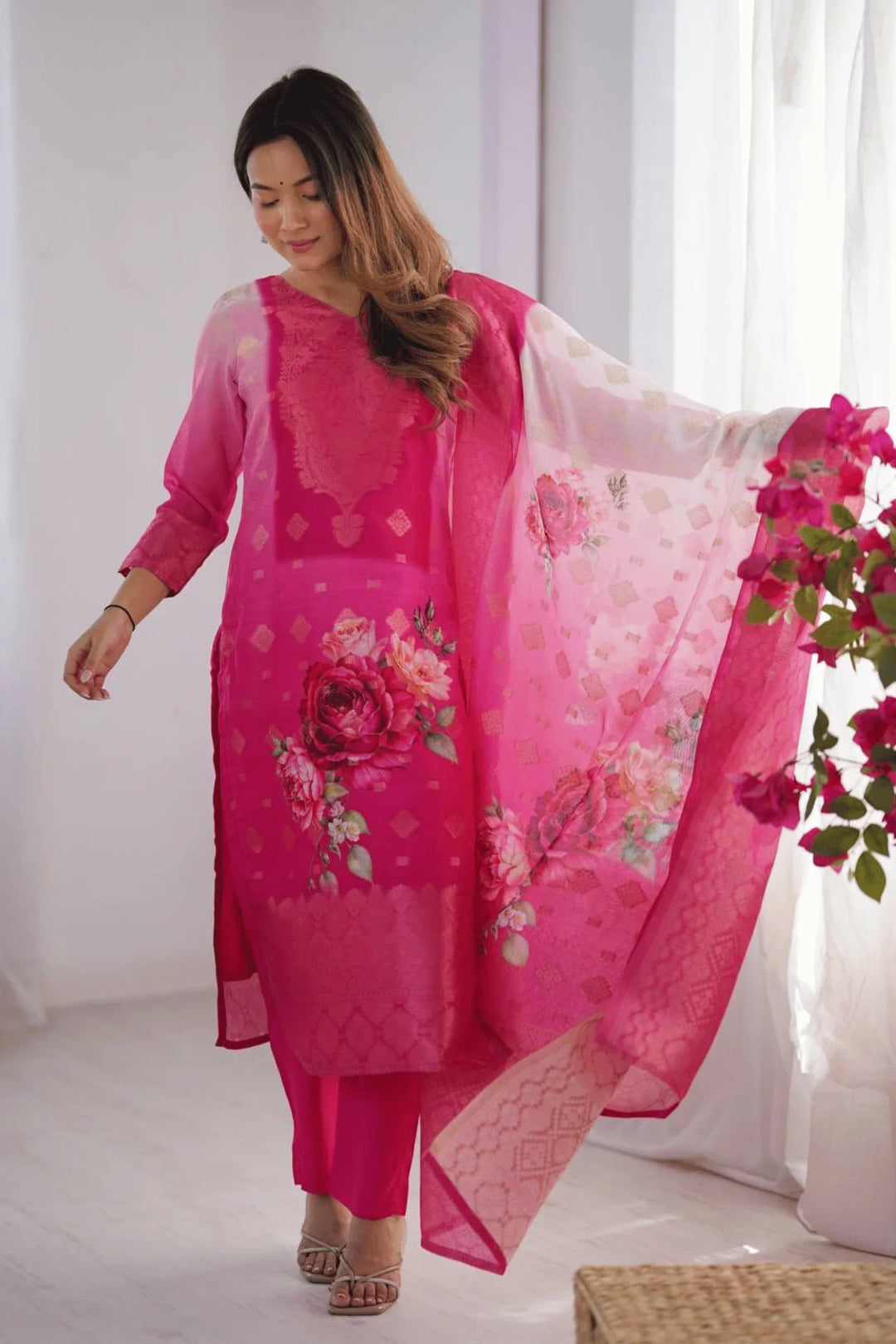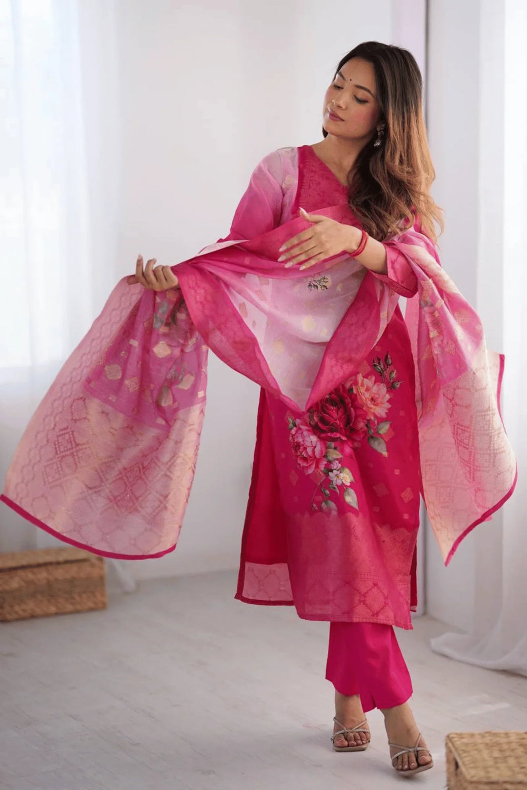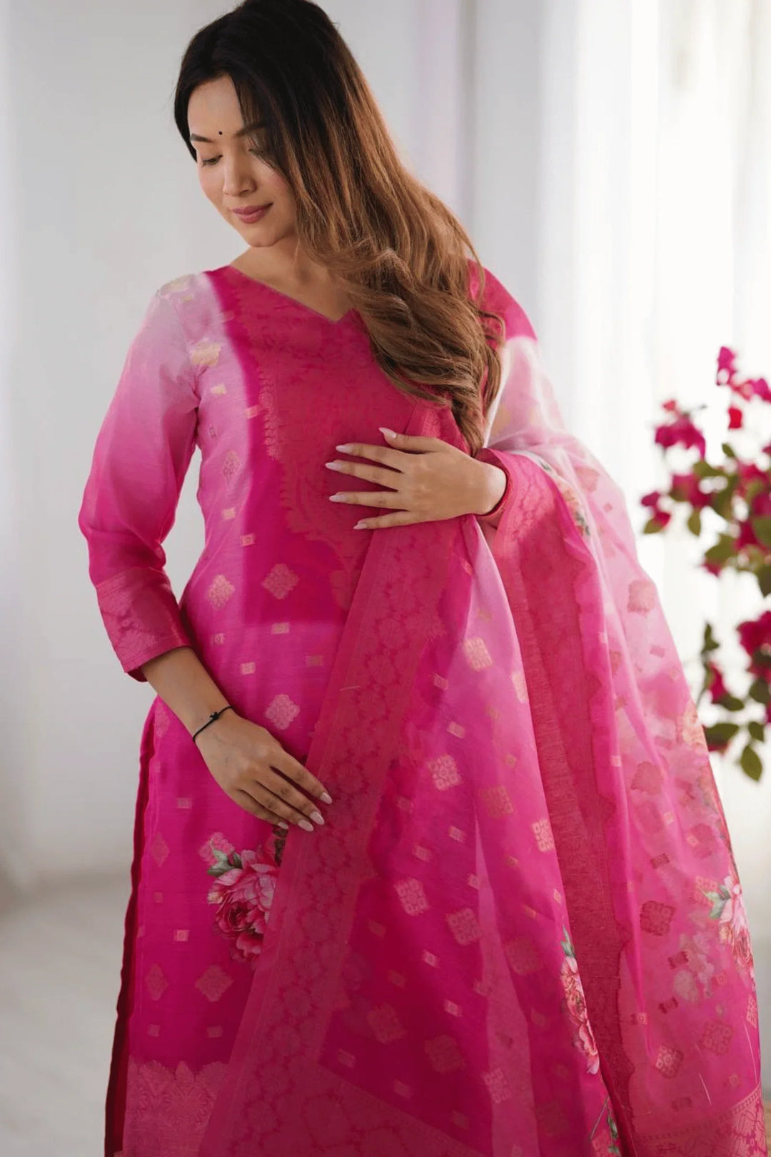 In the Package: 1-Kurti,1-Bottom,1-Dupatta