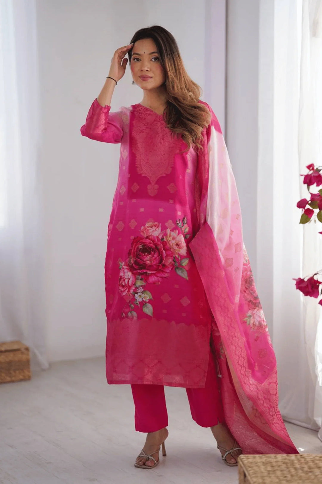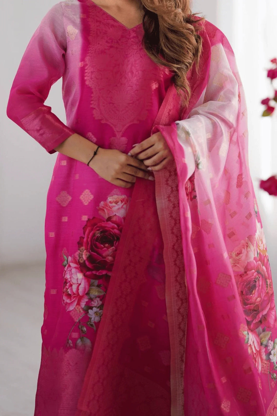 Rang-e-Gulab | Chanderi Silk Suit Set- Stitched 3 Pc