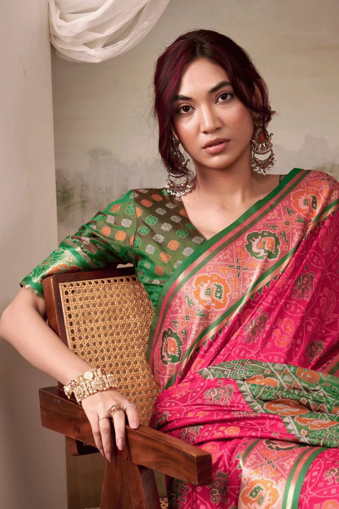 Glamwiz Ready-to-Wear Pink Patola Soft Silk Saree