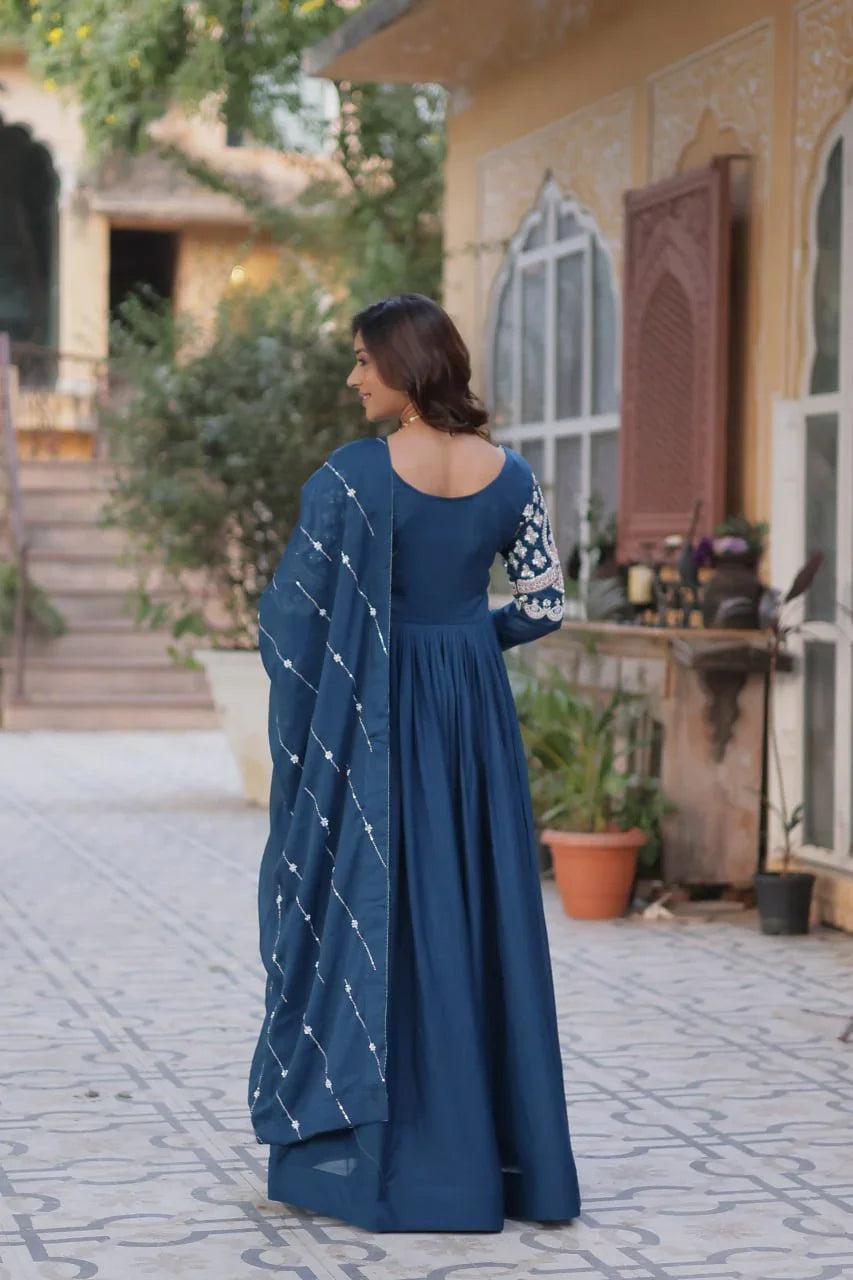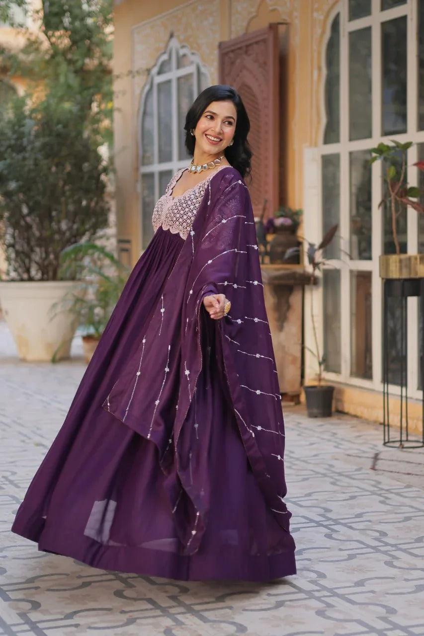 Introducing Glamwiz Flared Georgette Anarkali Suit with Sequins-work, Crafted with precision and designed to allure, our gown is a masterpiece of elegance and style.