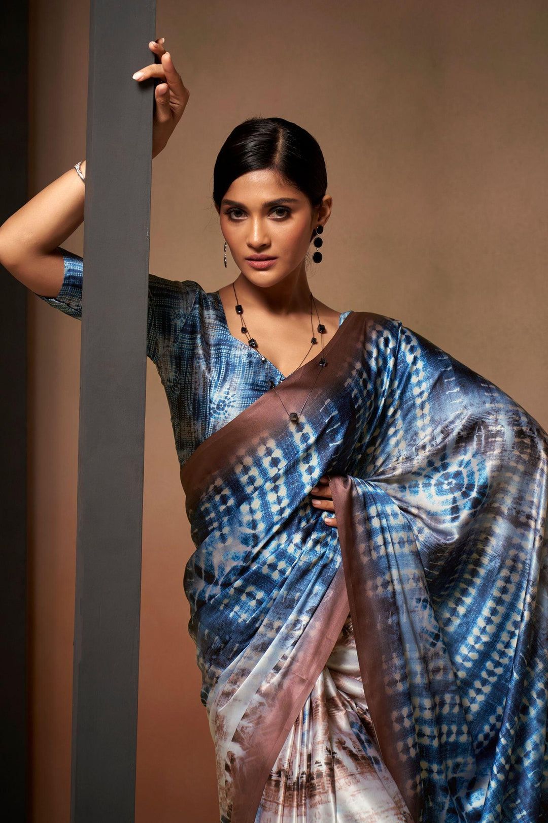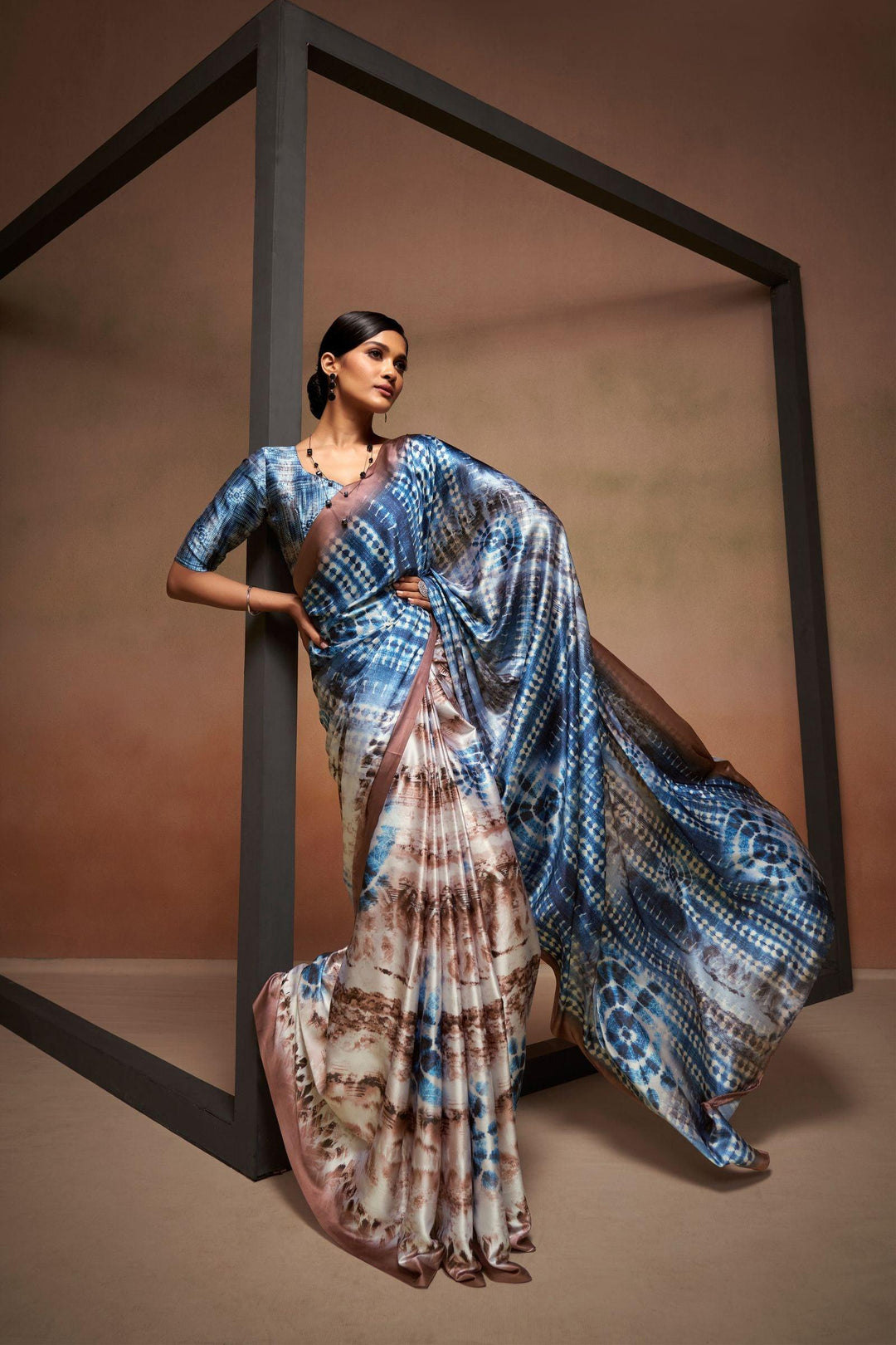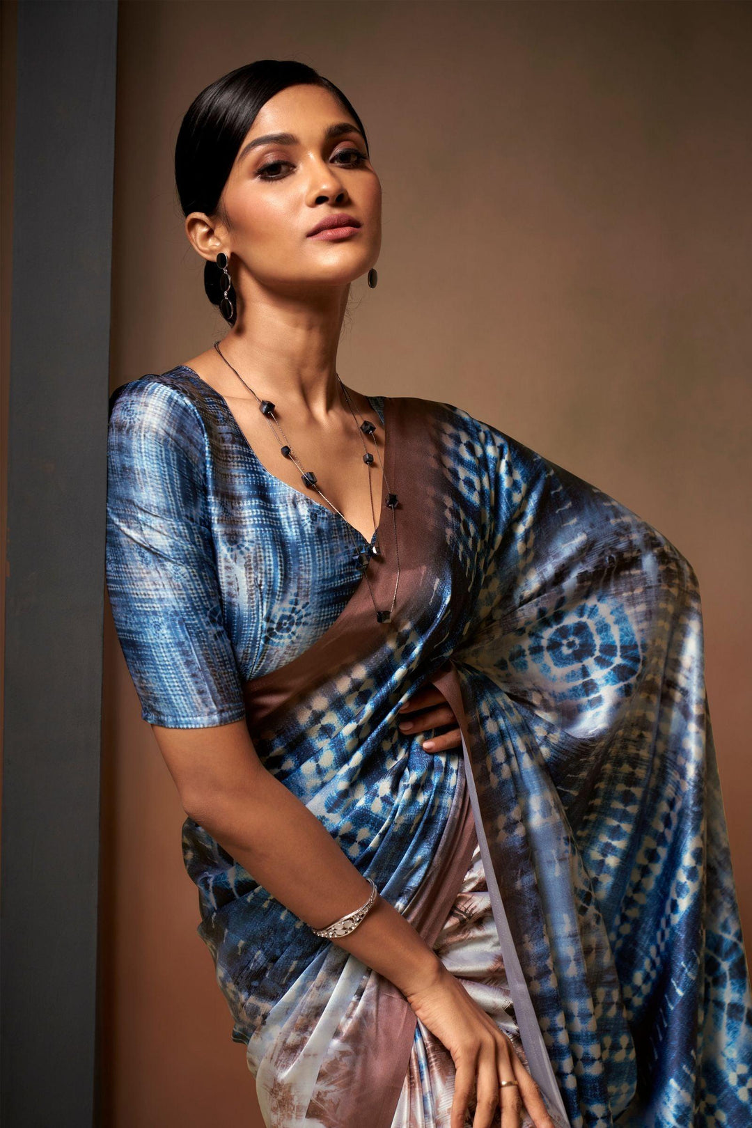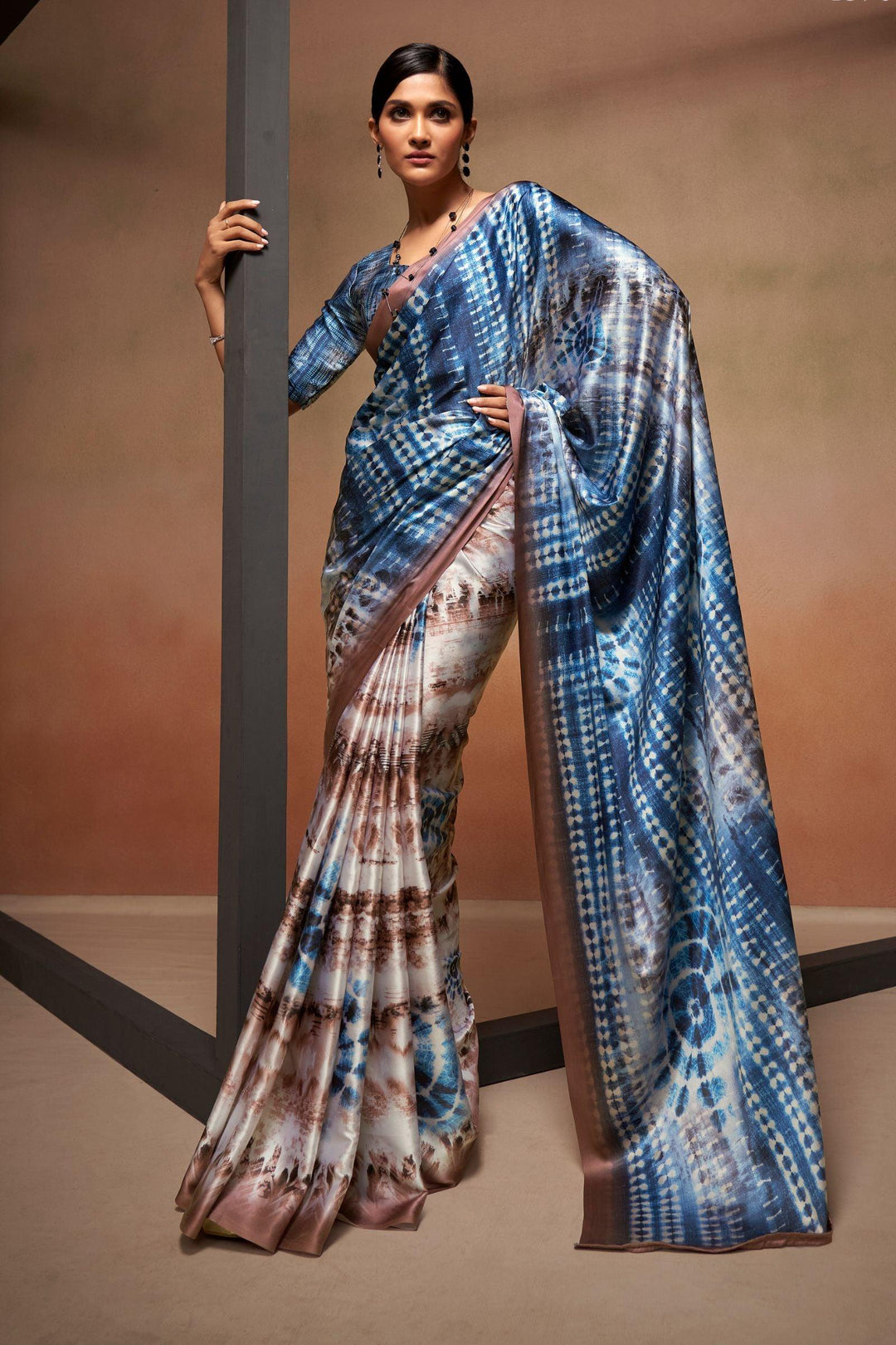 Elevate your wardrobe with the Glamwiz Blue Bliss Satin Crepe Saree, a perfect blend of elegance and style. Crafted from high-quality satin crepe fabric, this saree drapes beautifully, accentuating your curves with its luxurious texture.
