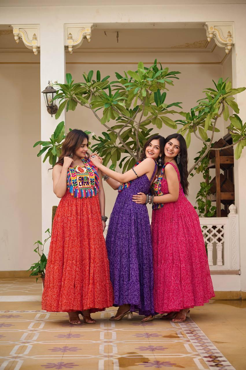 • Fabric: Foux georgette Bandhani Print