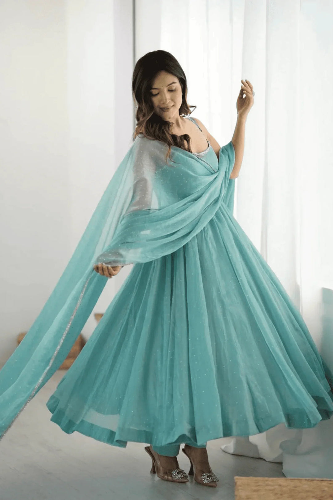 Introducing Glamwiz Anarkali Suit, Crafted with precision and designed to allure, our gown is a masterpiece of elegance and style.