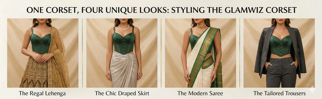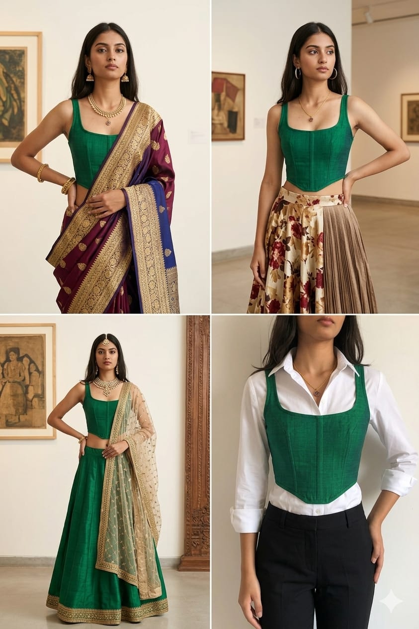 Wear it as a corset blouse with sarees or as a statement corset top with jeans, skirts, or trousers. -