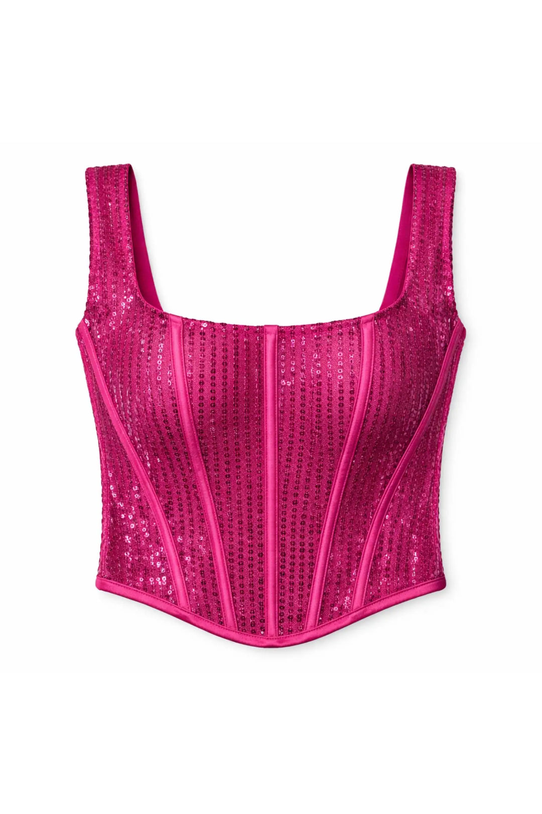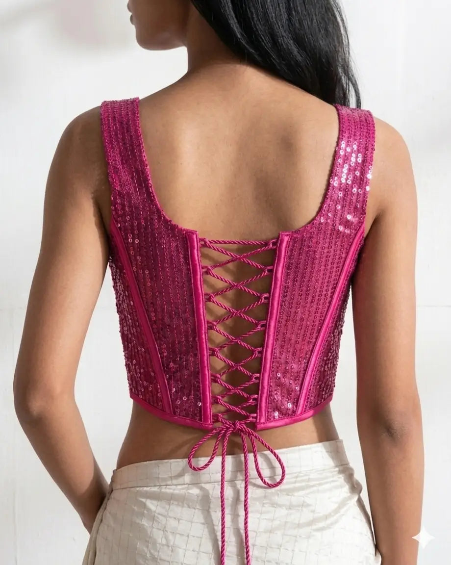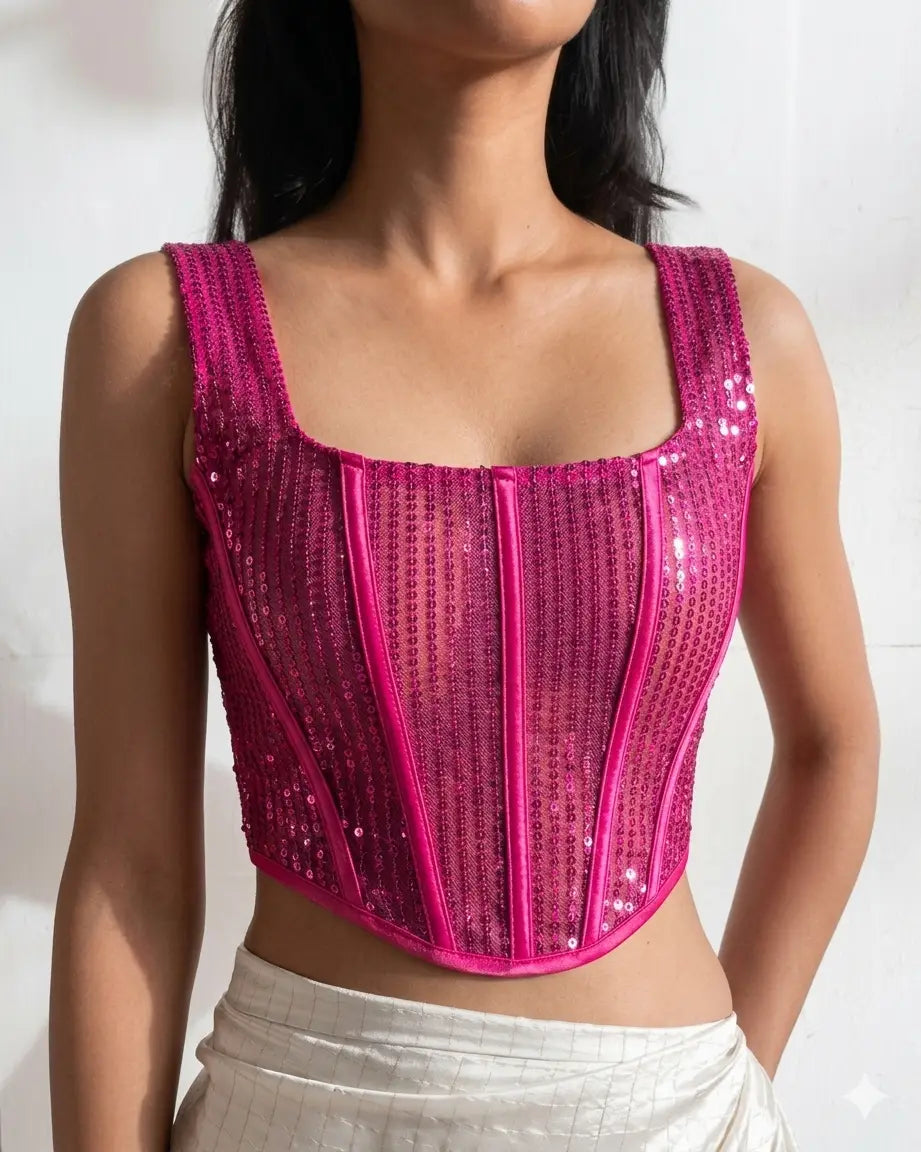 Fuschia Pink Sequins Corset Top- XS to 5XL