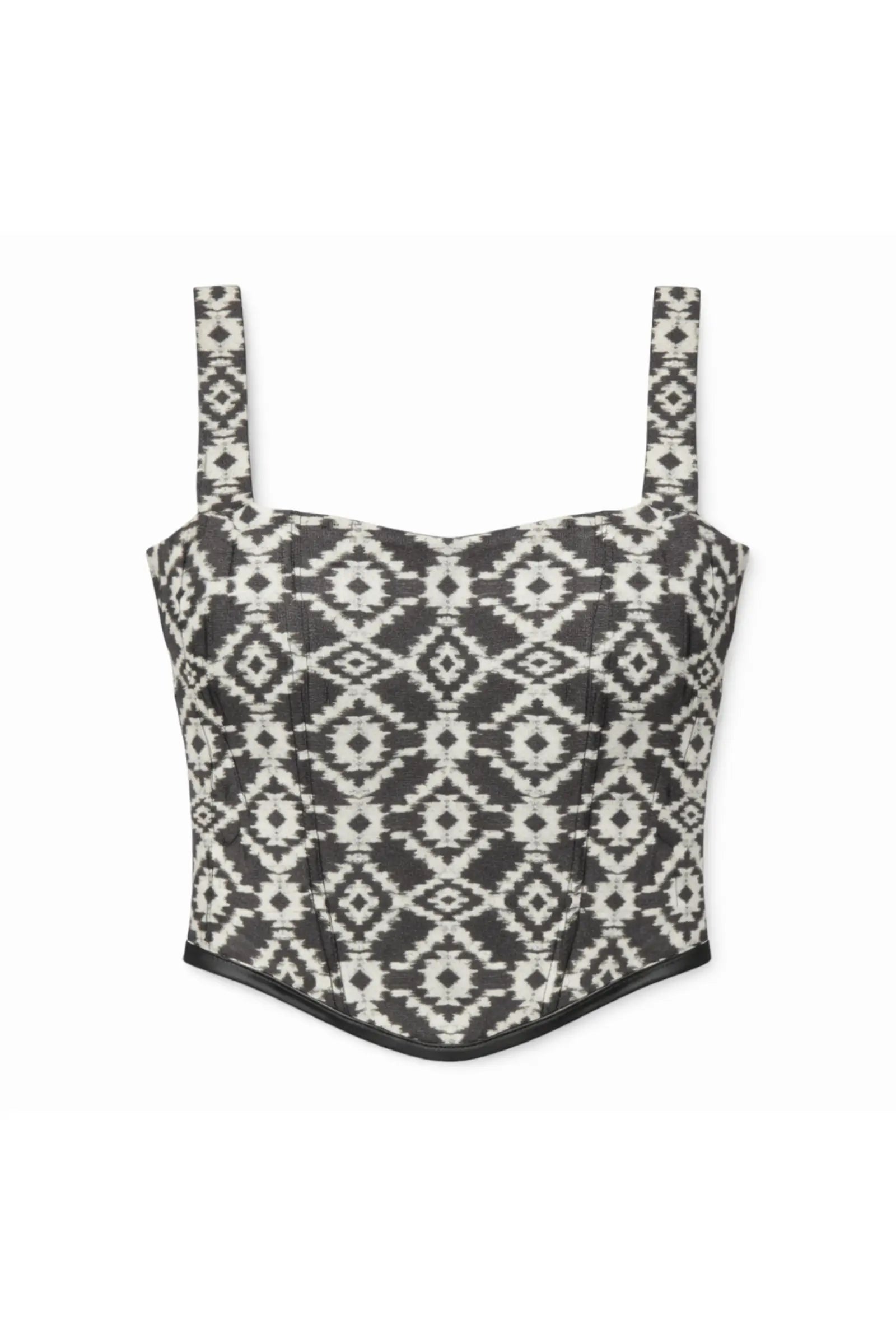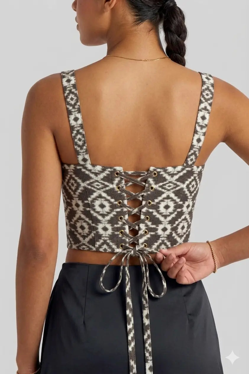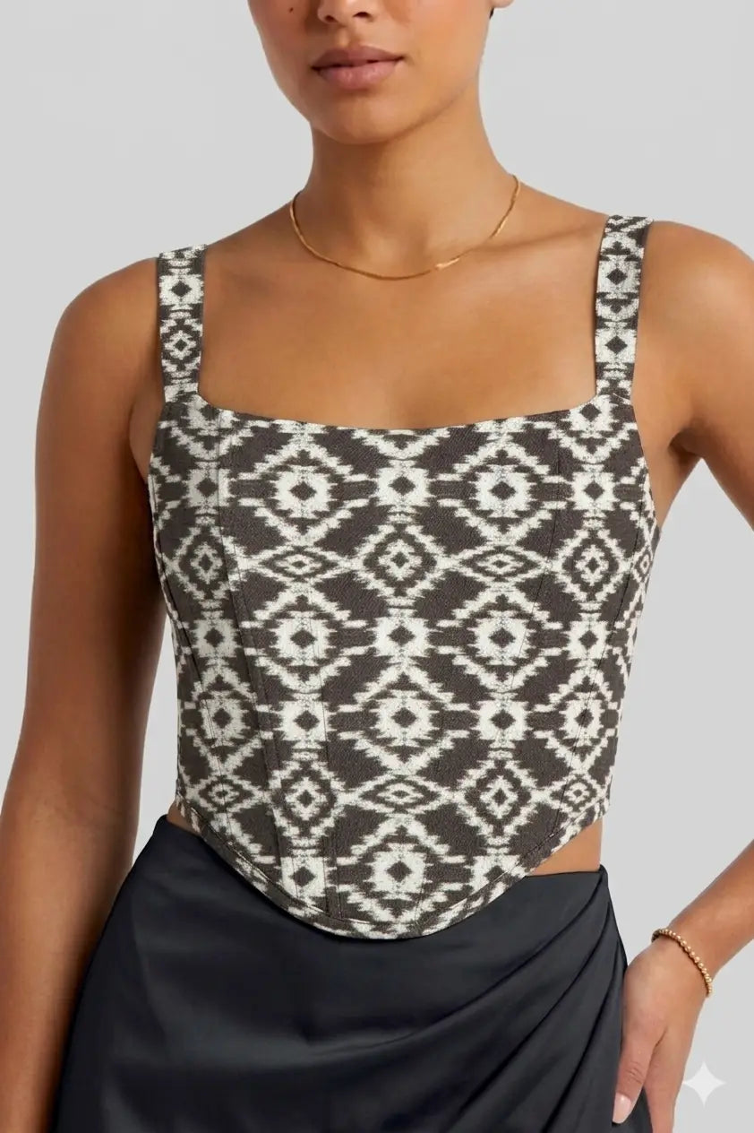 Grey Ikat Corset Top – Minimal Structured Bustier | XS to 5XL