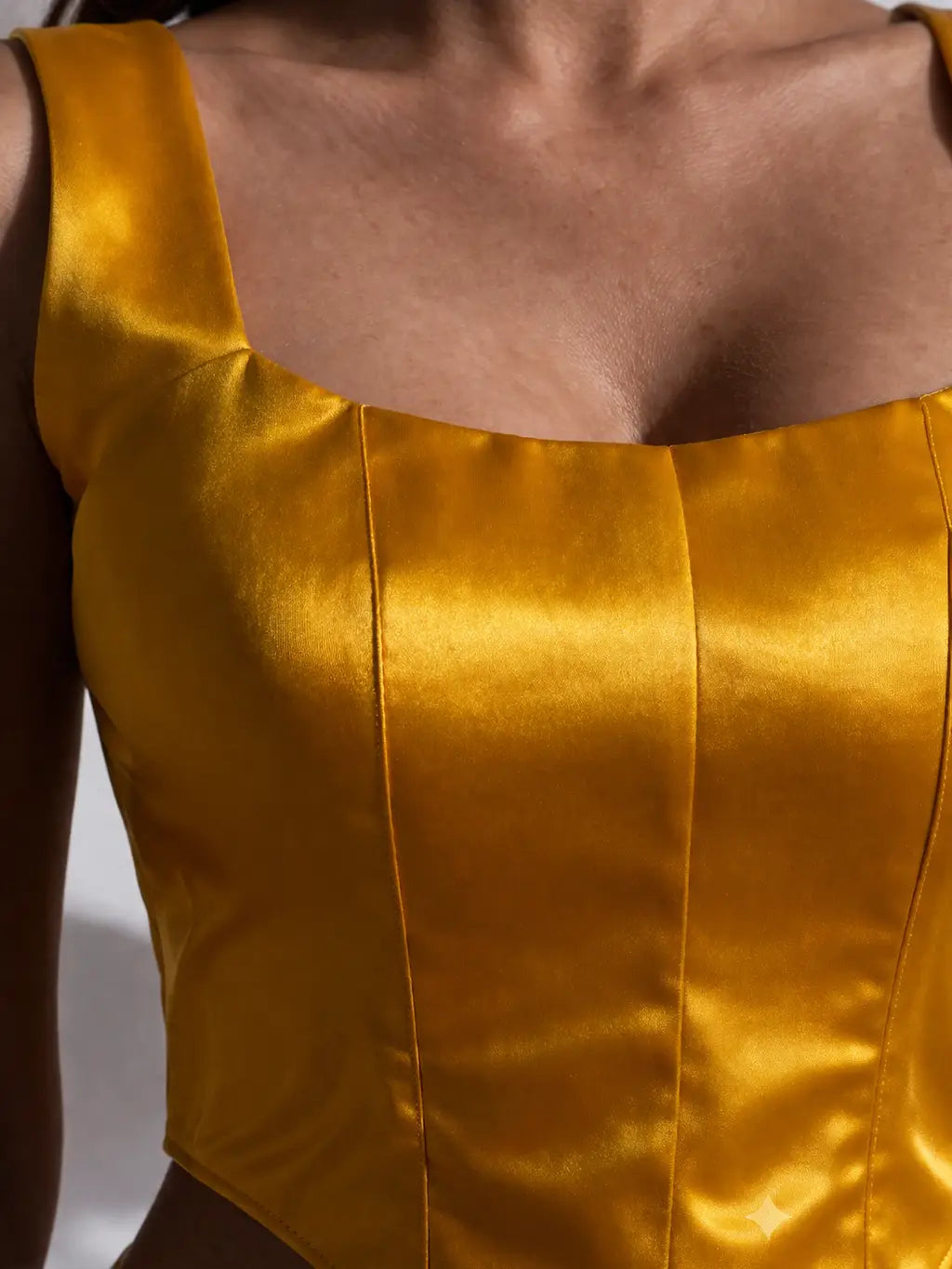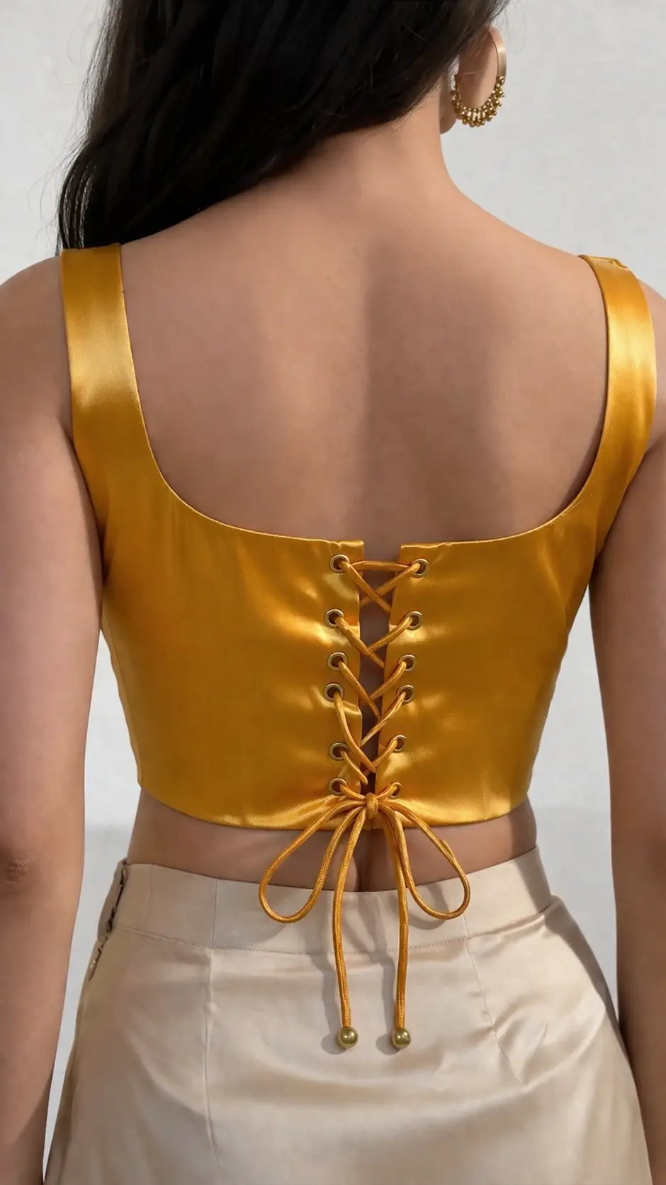 Rich Gold meets structured elegance in the Heritage corset top. Inspired by traditional Indian hues, this piece pairs beautifully with golden sarees, Banarasi drapes, and festive lehengas. A new addition to Glamwiz's corset range, available XS to 5XL.