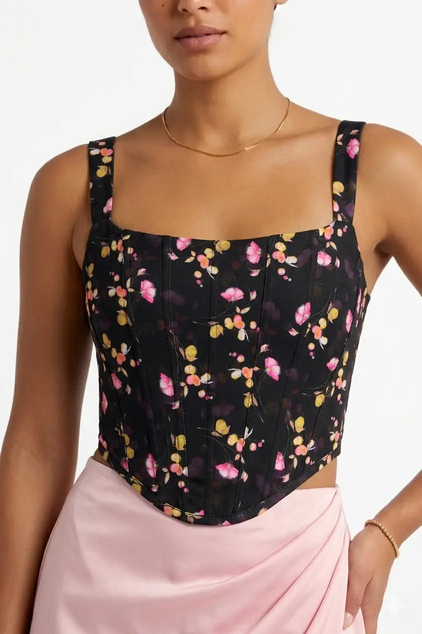 Midnight Floral Sculpt Corset Top | XS to 5XL